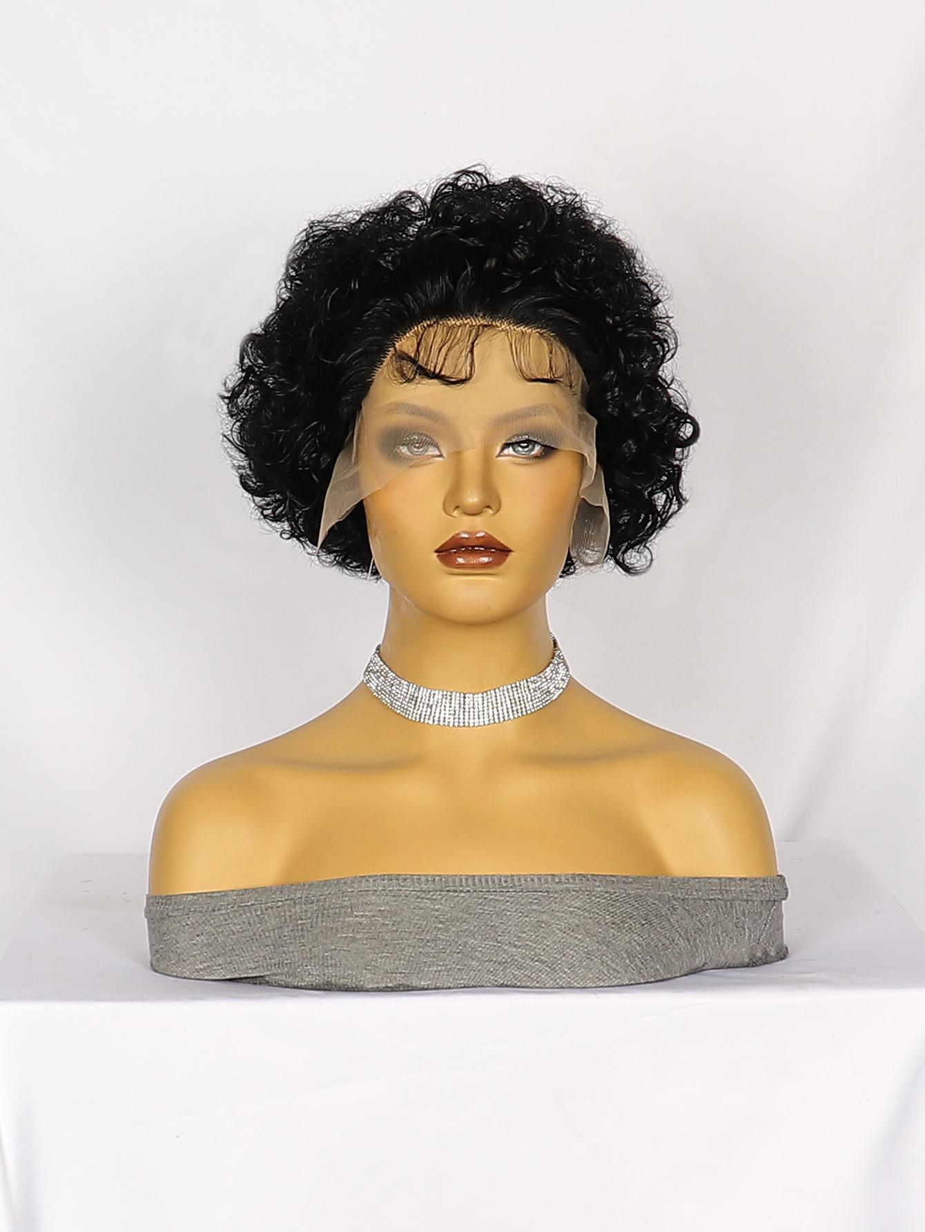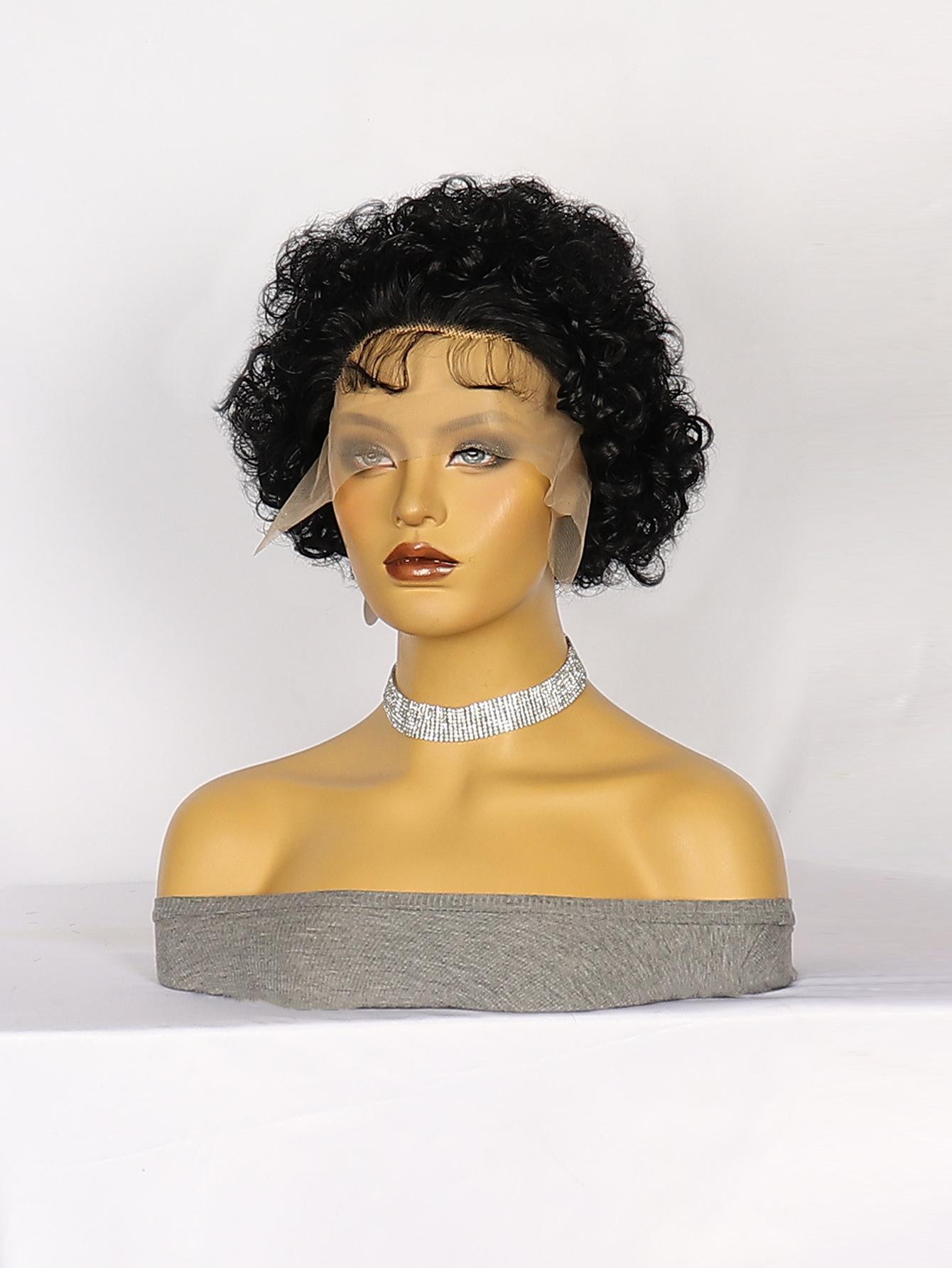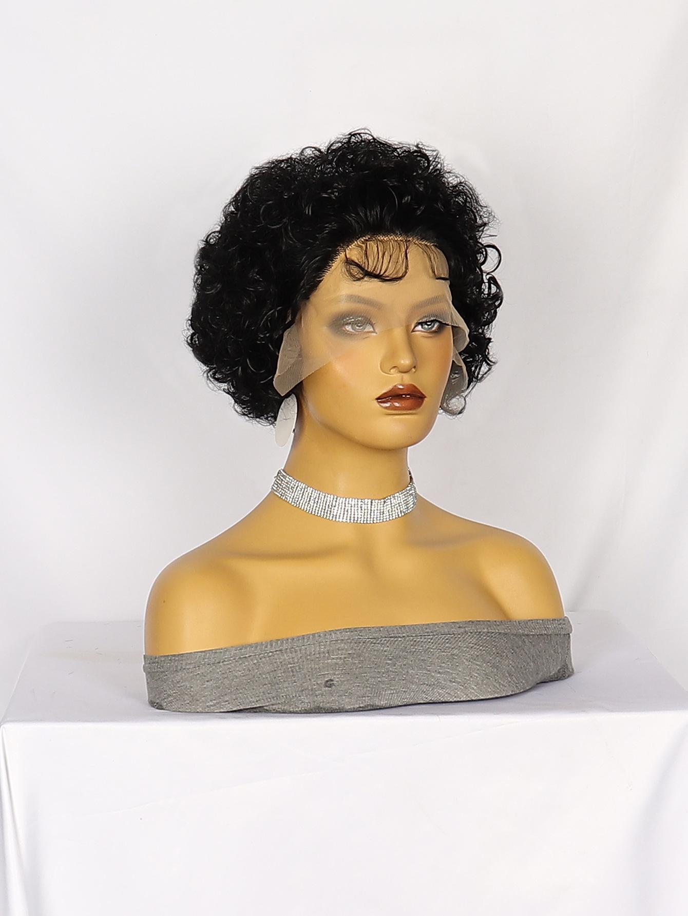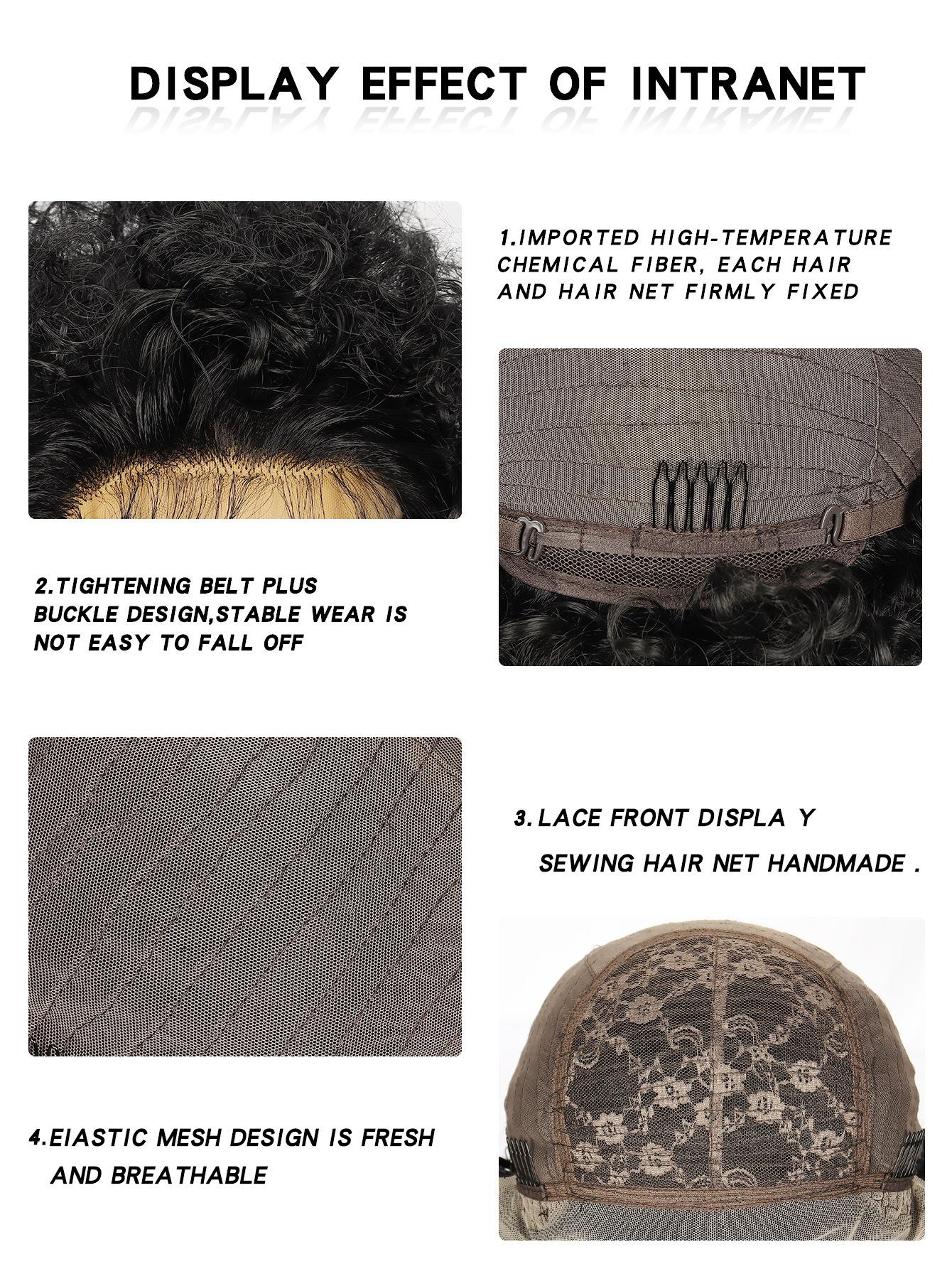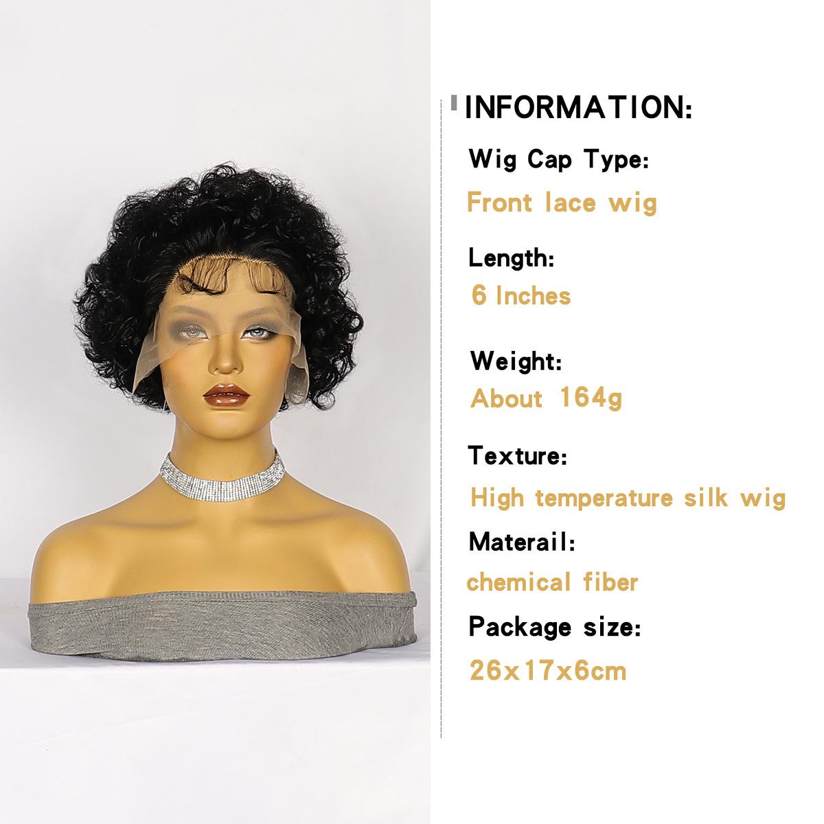 Peluca Transfronteriza Cabello Rizado Africano 13*1 Encaje Frontal Peluca Corta Fabricante de Fibra Sintética Dropshipping Cabello Corto Cabello Largo Rizado
