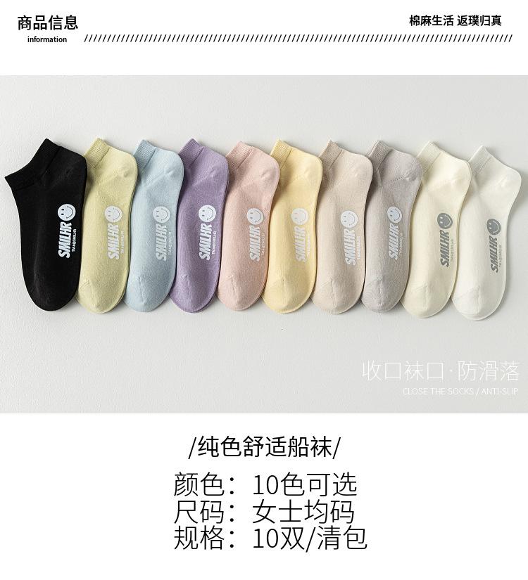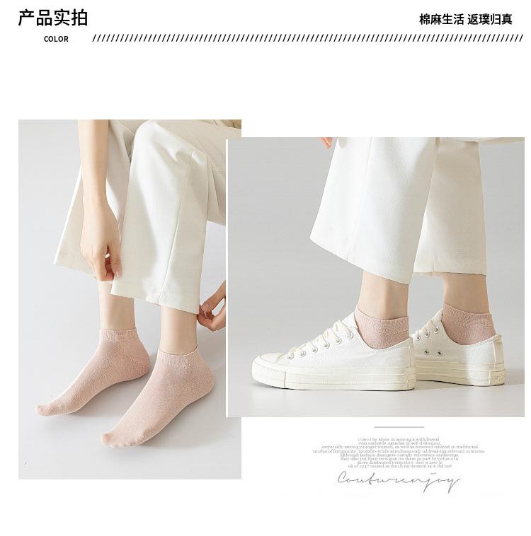 Calcetines Finos para Mujer, Calcetines de Algodón Absorbentes de Sudor y Transpirables, Calcetines Versátiles de Color Sólido para Mujer, Calcetines Casuales Tipo Barco, Estilo Sencillo de Verano