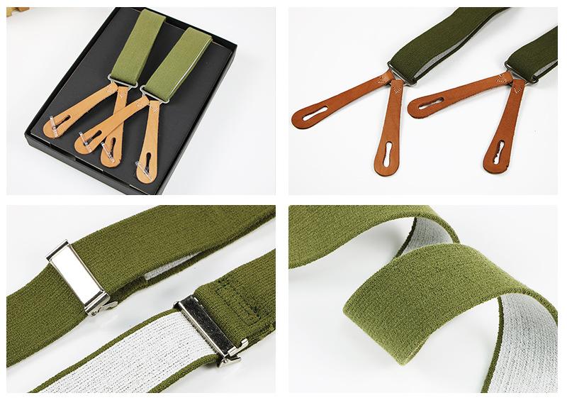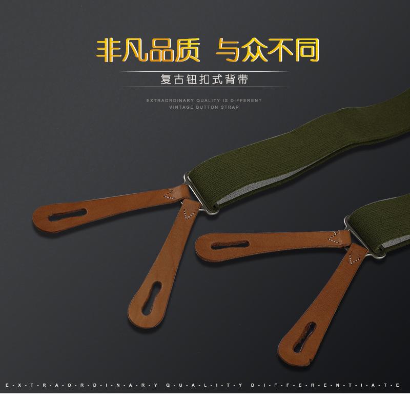 Tirantes de piel de vaca retro con botón de fabricante para hombre, informales de negocios, con cuatro clips