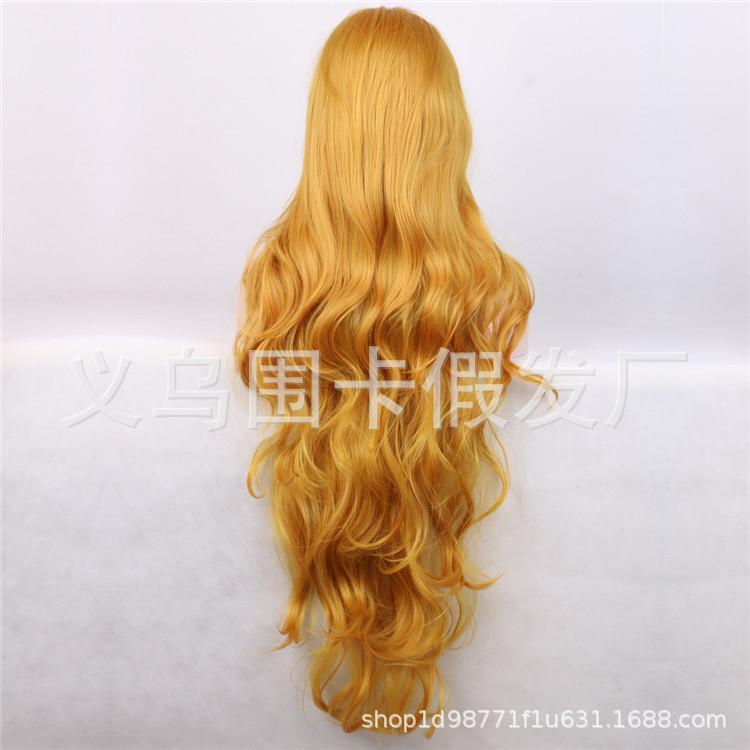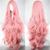 Peluca de pelo largo y rizado con ondas grandes de Europa y Estados Unidos, tocado rosa de 100 cm, flequillo de pelo rizado, fibra química, tocado de seda de alta temperatura