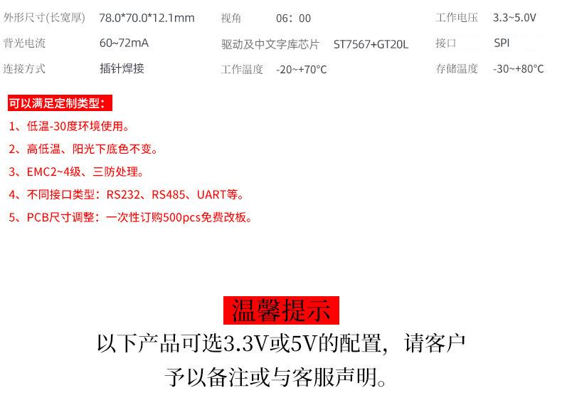 Módulo COG de pantalla LCD de 3,0 pulgadas, fondo blanco, pantalla de matriz de puntos 12864 negra, biblioteca de caracteres chinos, puerto serie SPI, pantalla