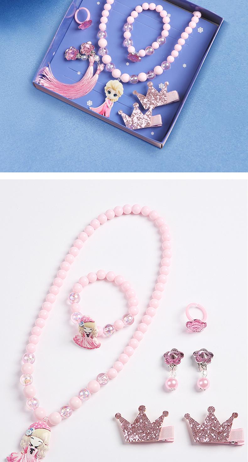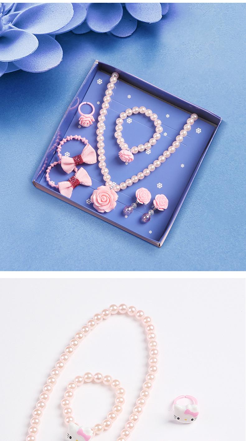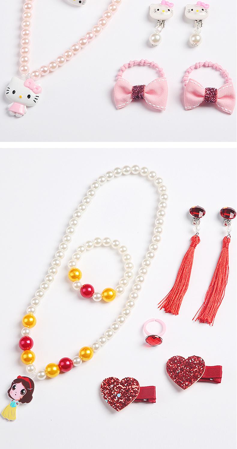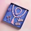 Collar para niña, Set de caja de regalo de joyería con horquilla, Pulsera de perlas de imitación para niños, Anillo, Aretes, Accesorios, Joyería para bebé