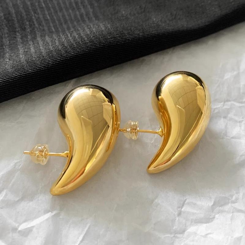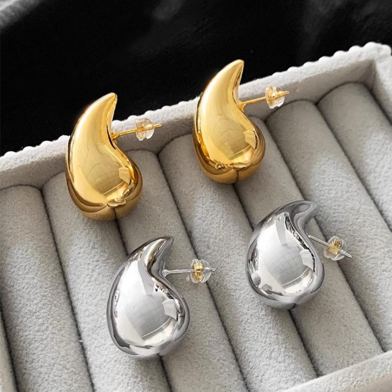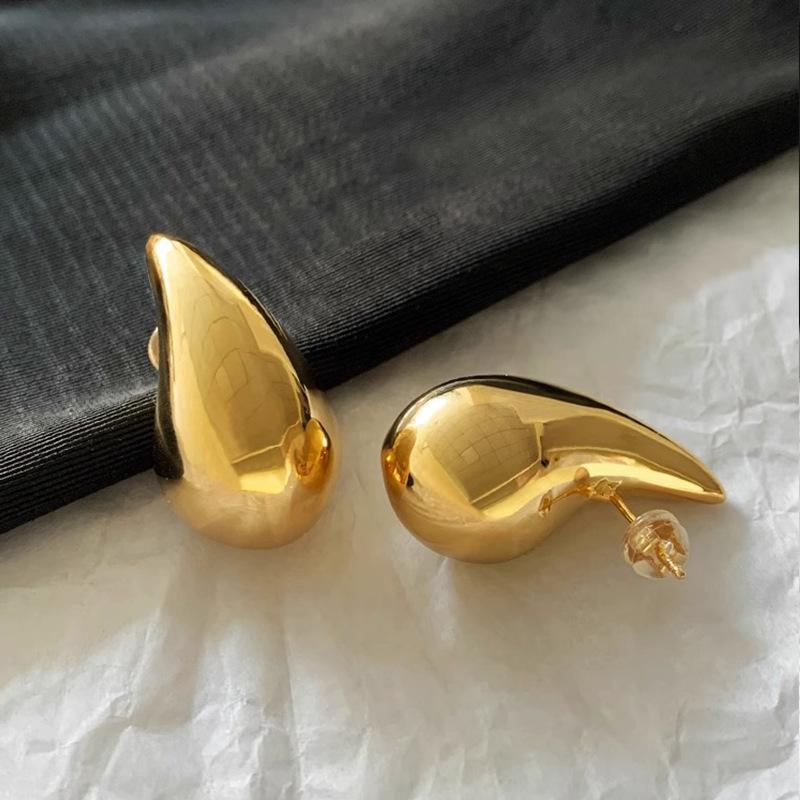 Aretes europeos y americanos de gota de agua de oro francés chapados en oro real para mujer, diseño de nicho, alto sentido, aretes de viento frío, temperamento único