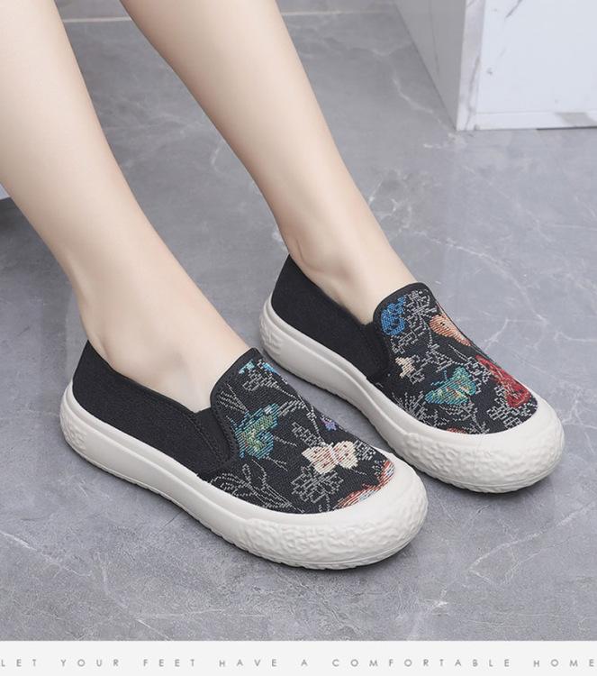 Zapatos de lona Lefu para mujer, de Beijing, de primavera y verano, con suela gruesa, sin cordones, informales, de pescador, de suela blanda.