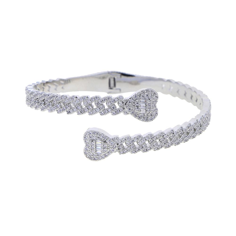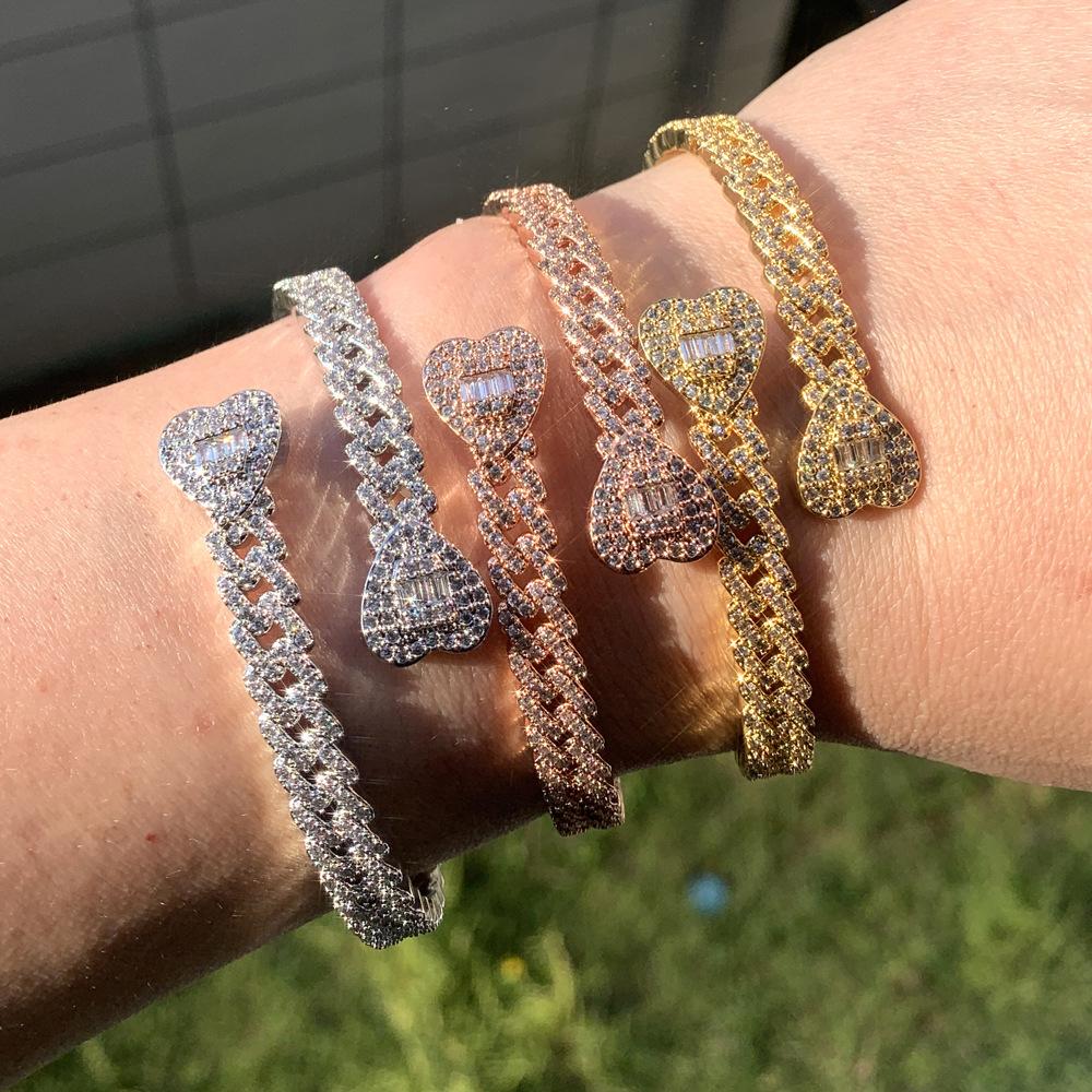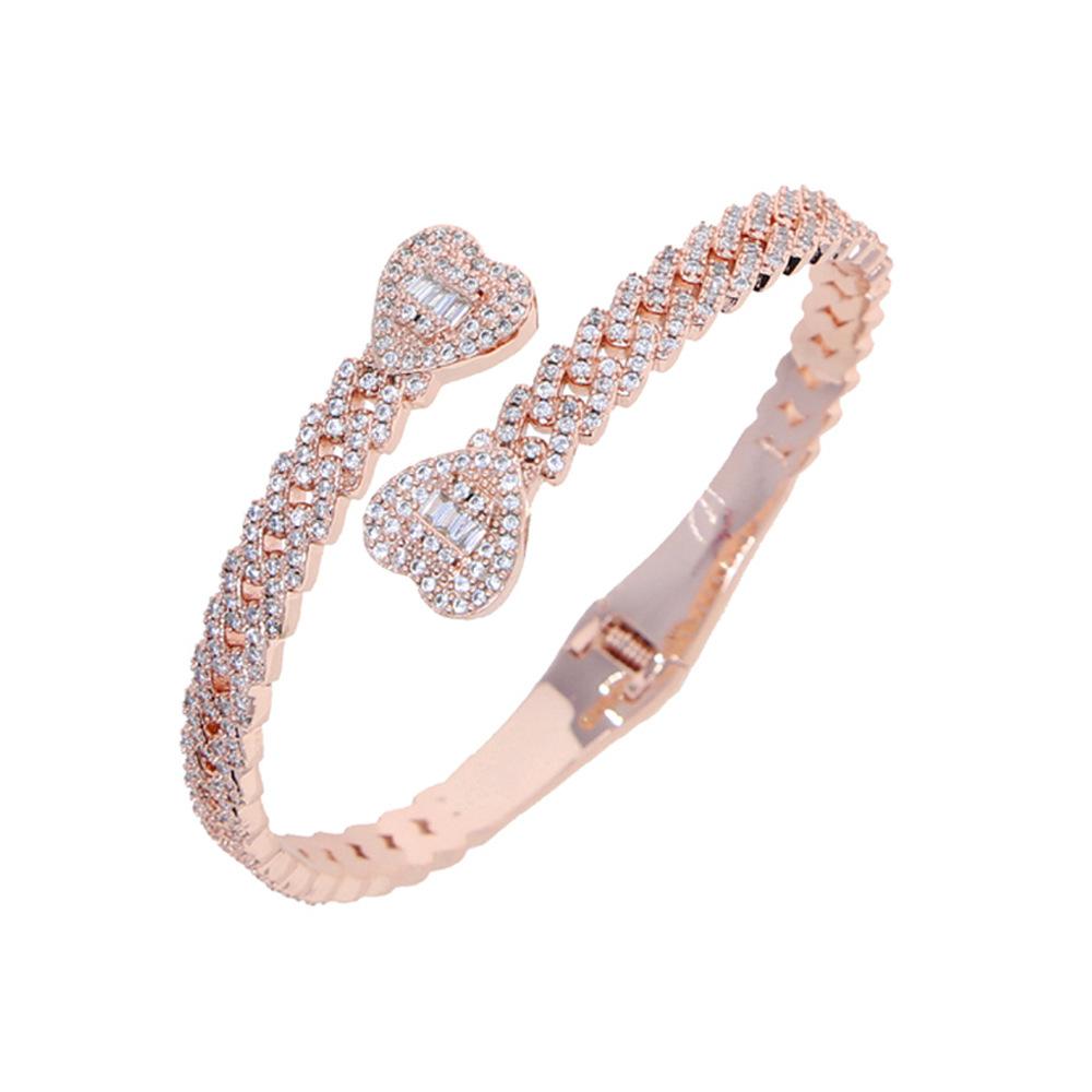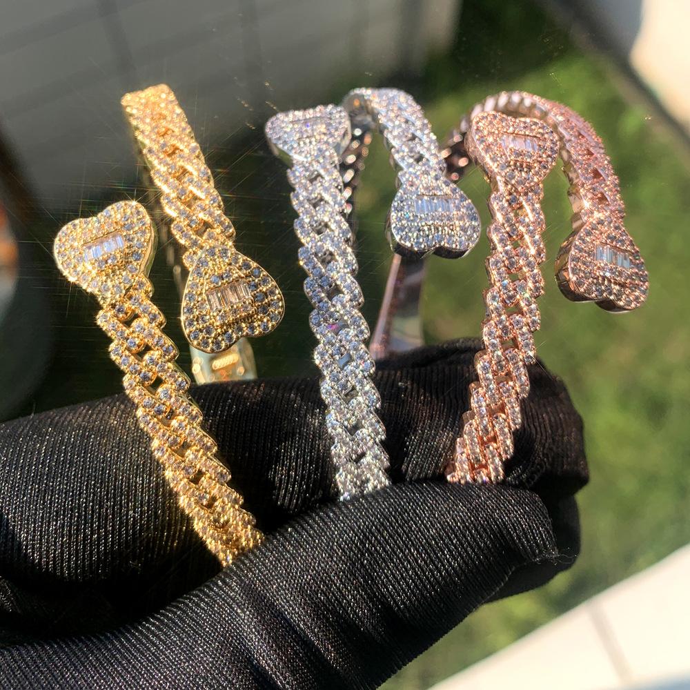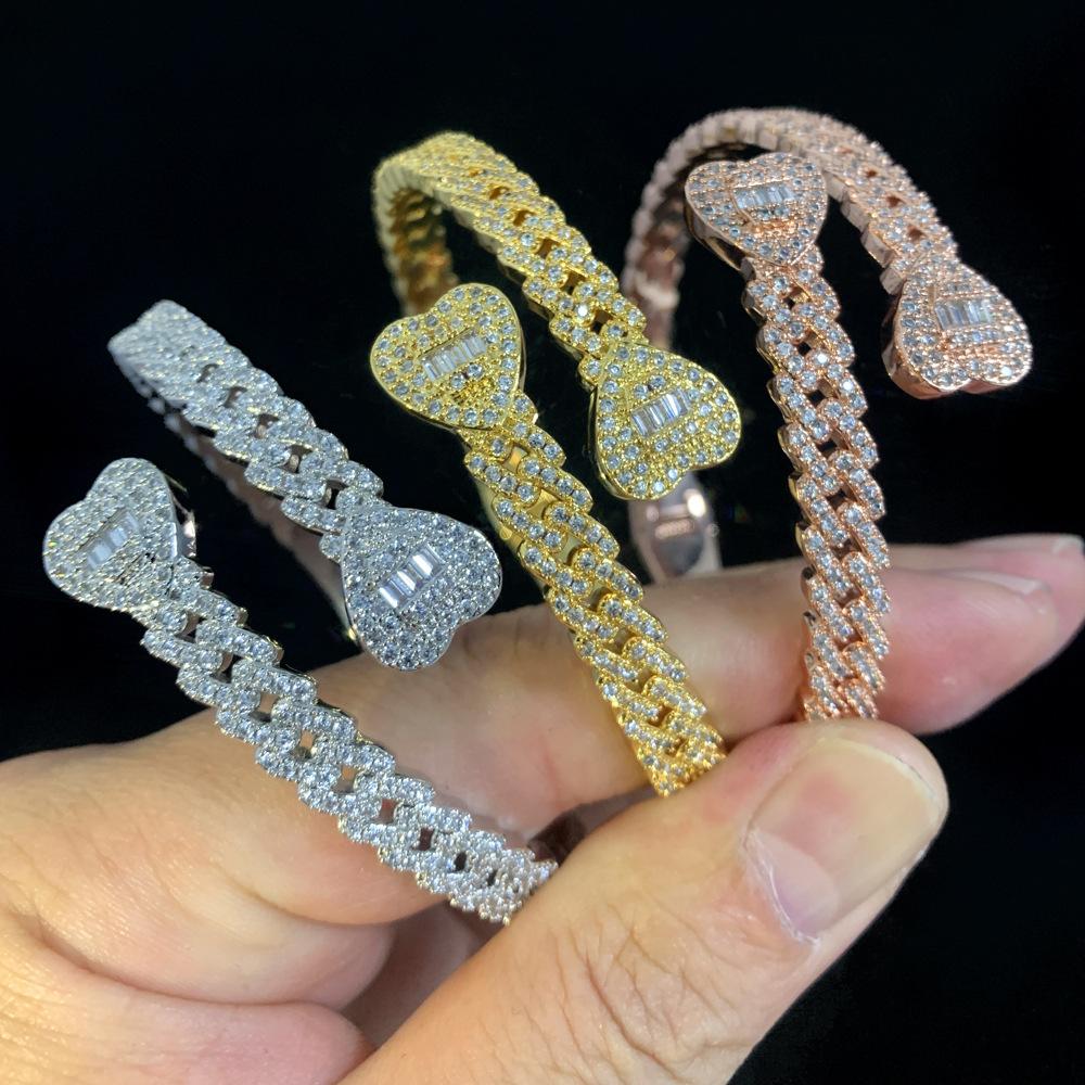 Pulsera abierta de circonita de nuevo amor transfronterizo de Europa y Estados Unidos, cadena cubana, pulsera en forma de corazón, joyería de moda al por mayor
