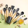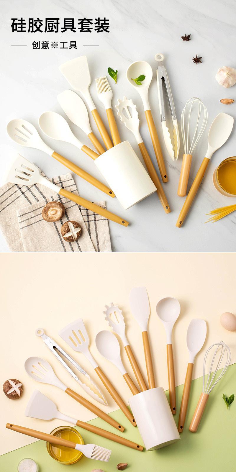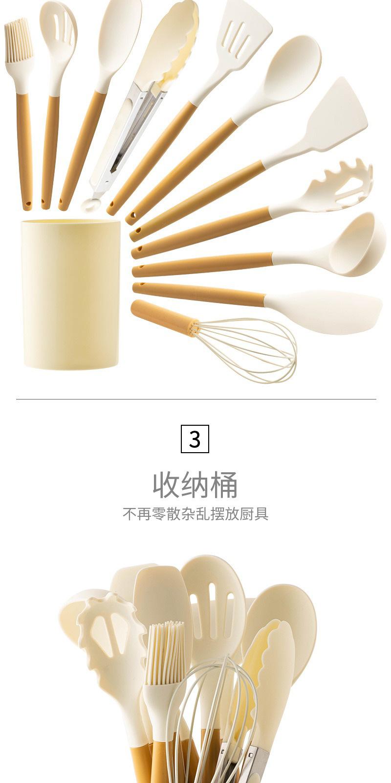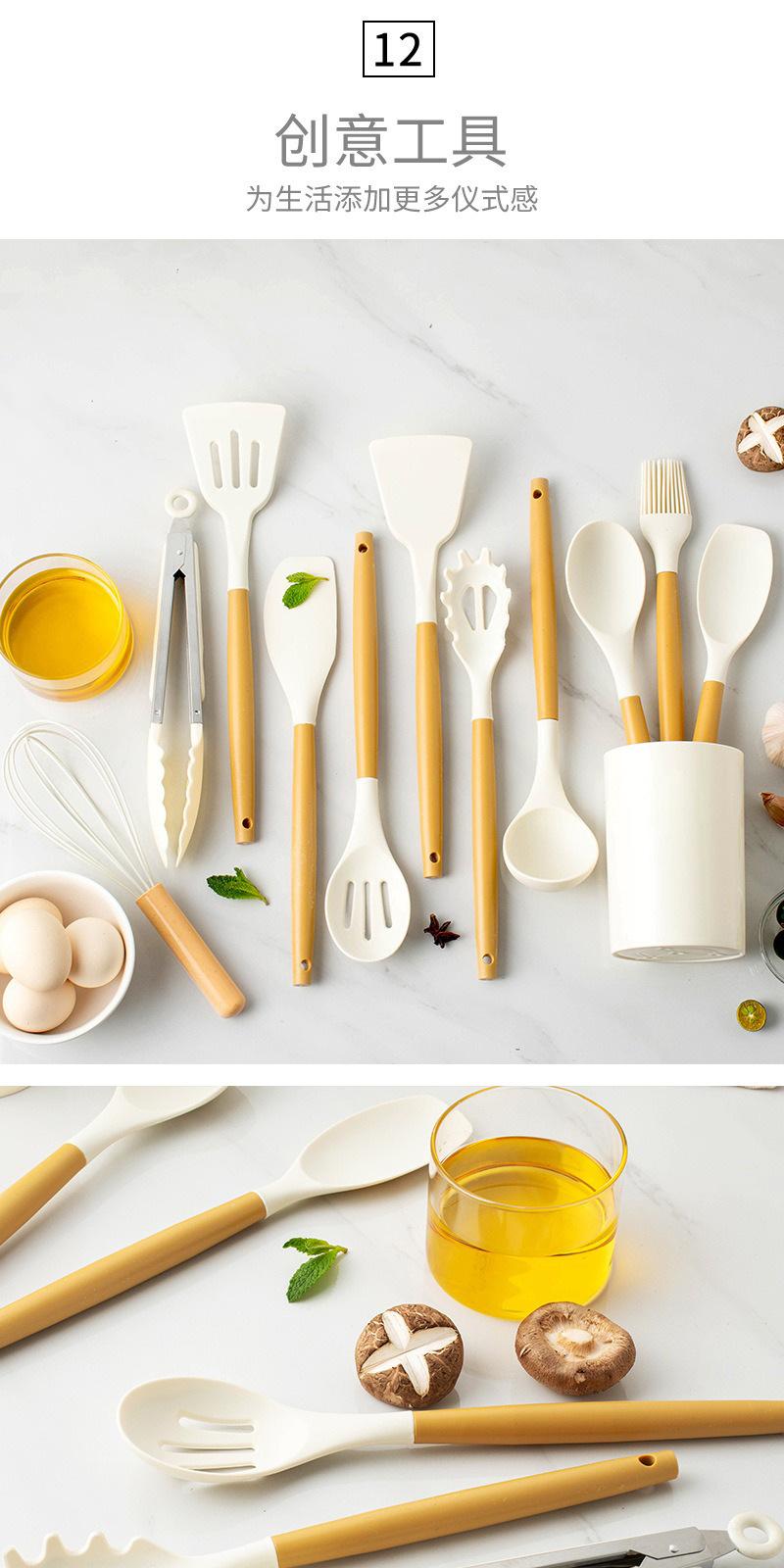 Espátula de silicona con mango de plástico transfronterizo, 12 piezas, cuchara para cocinar, cuchara sopera resistente a altas temperaturas con espátula tipo cubo.