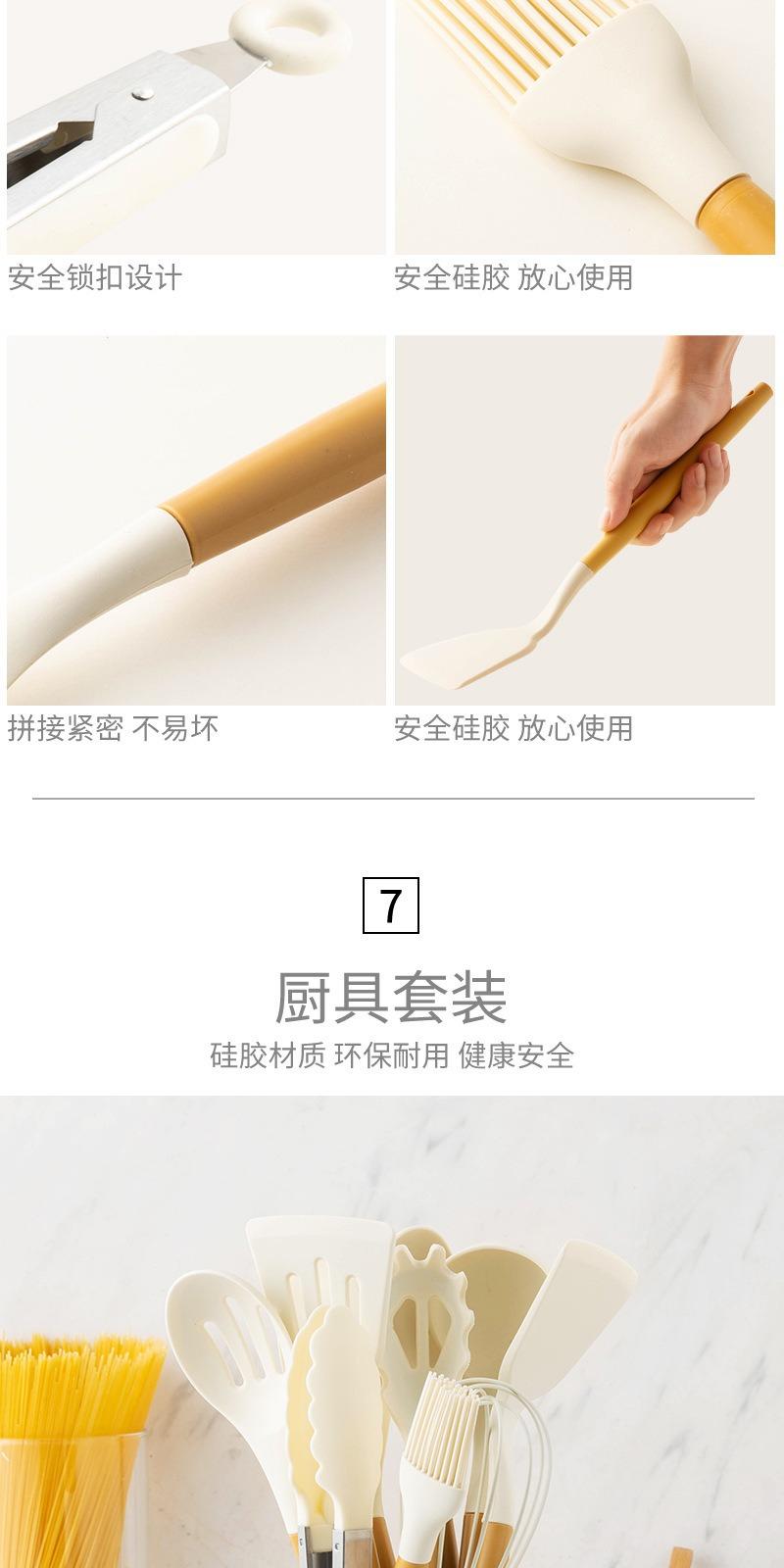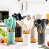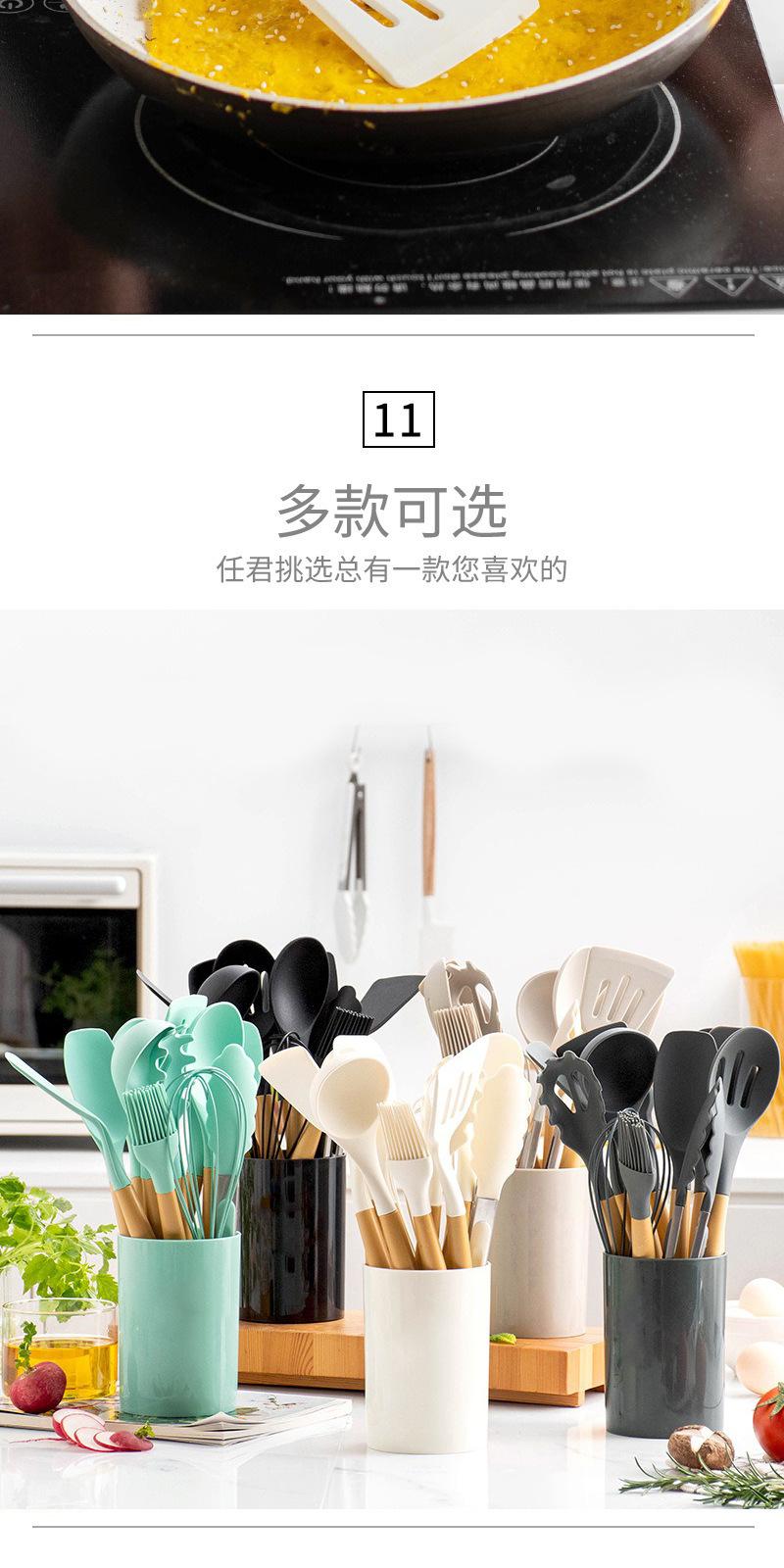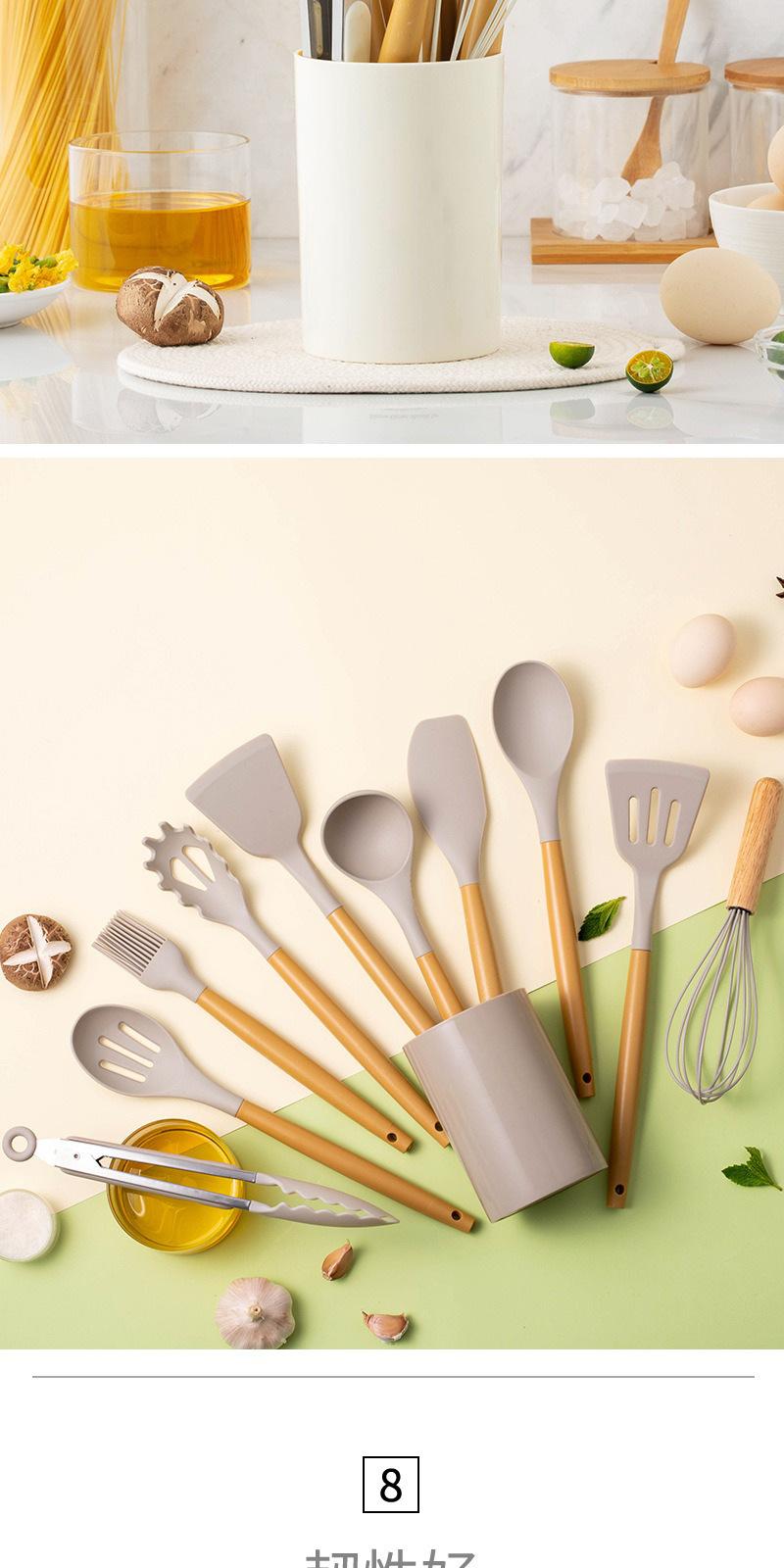 Espátula de silicona con mango de plástico transfronterizo, 12 piezas, cuchara para cocinar, cuchara sopera resistente a altas temperaturas con espátula tipo cubo.