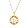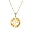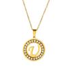 Comercio Exterior Acero Inoxidable Redondo Diamante Letra Inglesa Collar Joyería Cadena Colgante Moda Simple Collar Dorado Acero de Titanio
