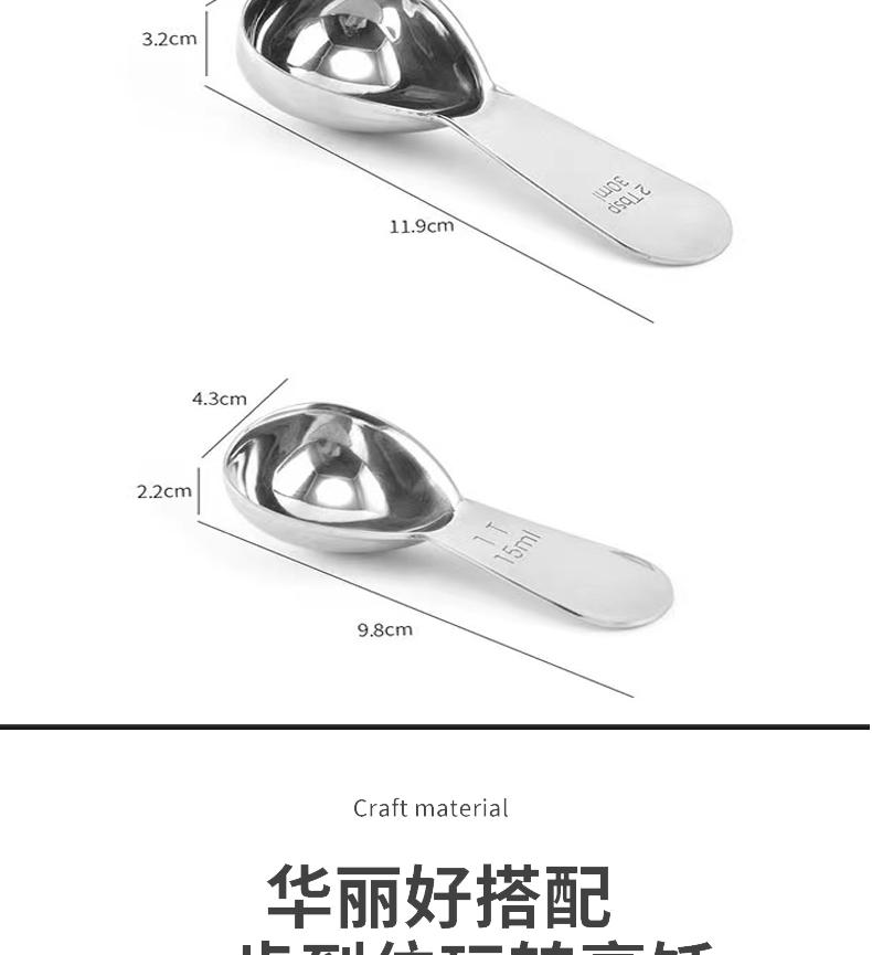 Cuchara medidora de café de acero inoxidable Spot 304 con juego de escala Cuchara medidora de café de acero inoxidable de 15 ml y 30 ml