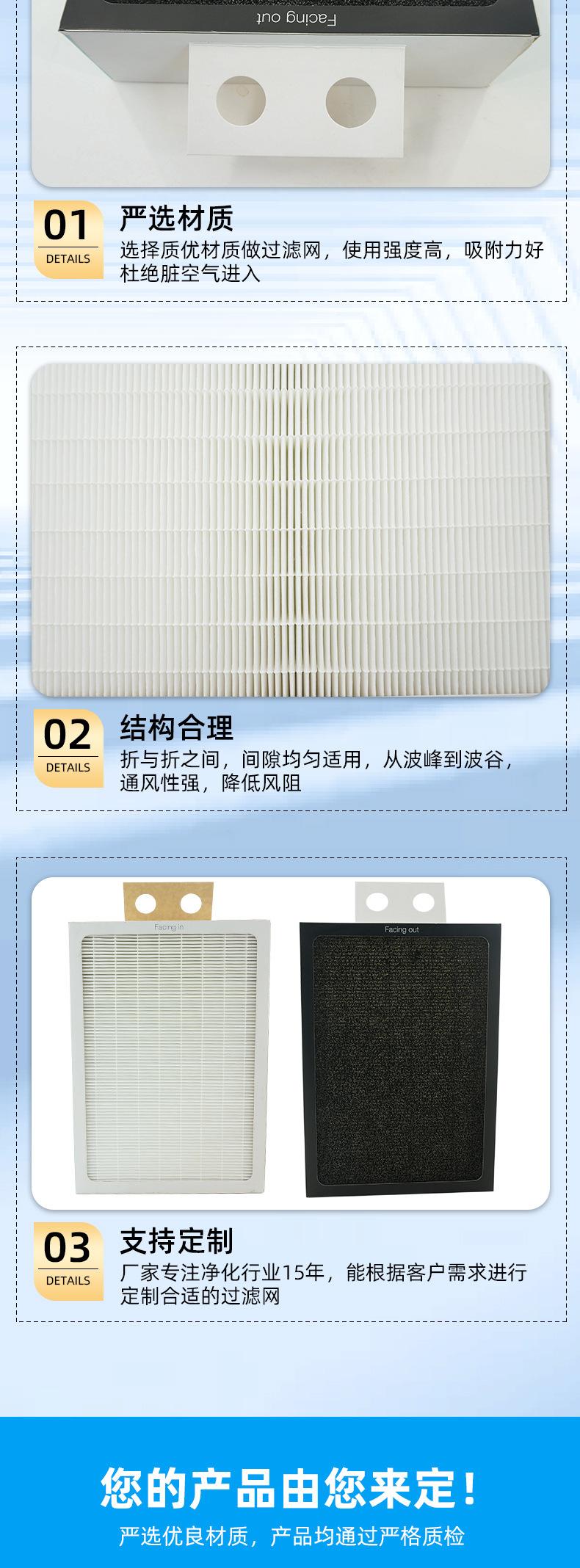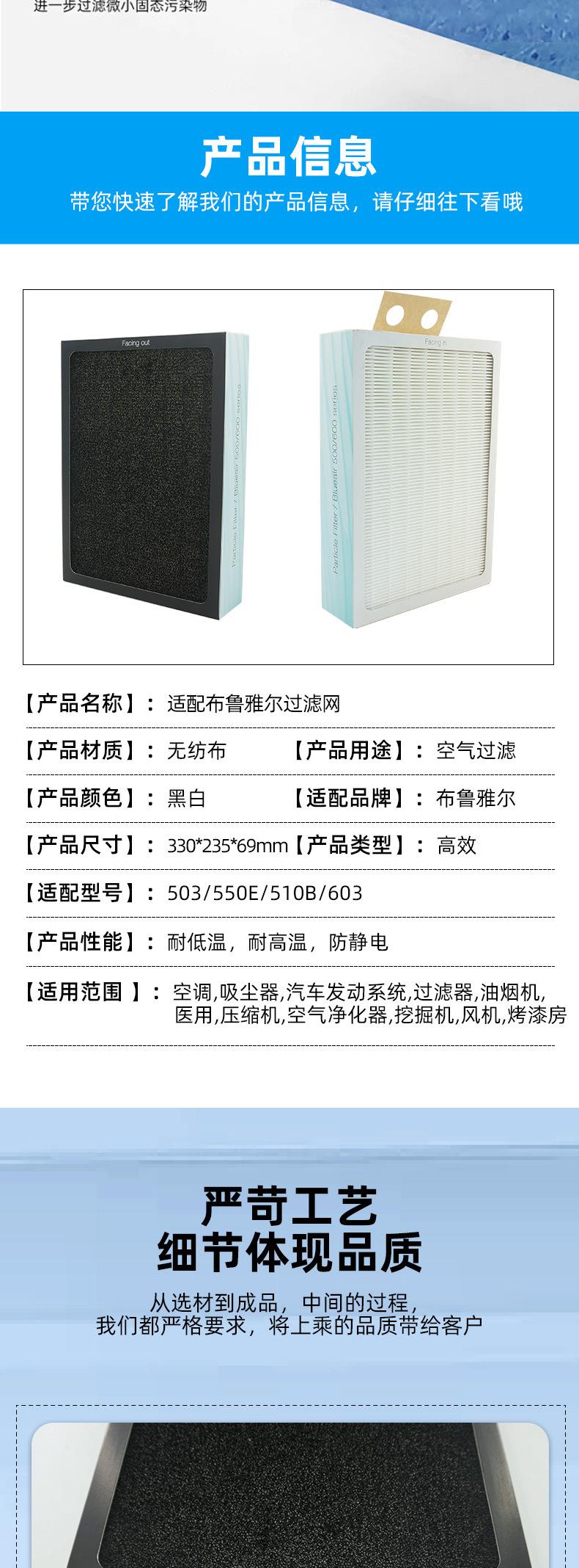 Adecuado para filtro de pantalla purificador de aire Bruyale 500/550E/510B603, elemento de filtro HEPA compuesto de carbón activado