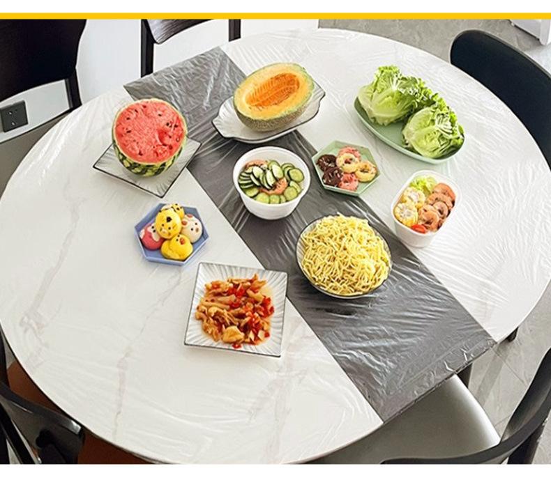 Mantel elástico desechable de polietileno transparente grueso, impermeable, resistente al aceite y no lavable.