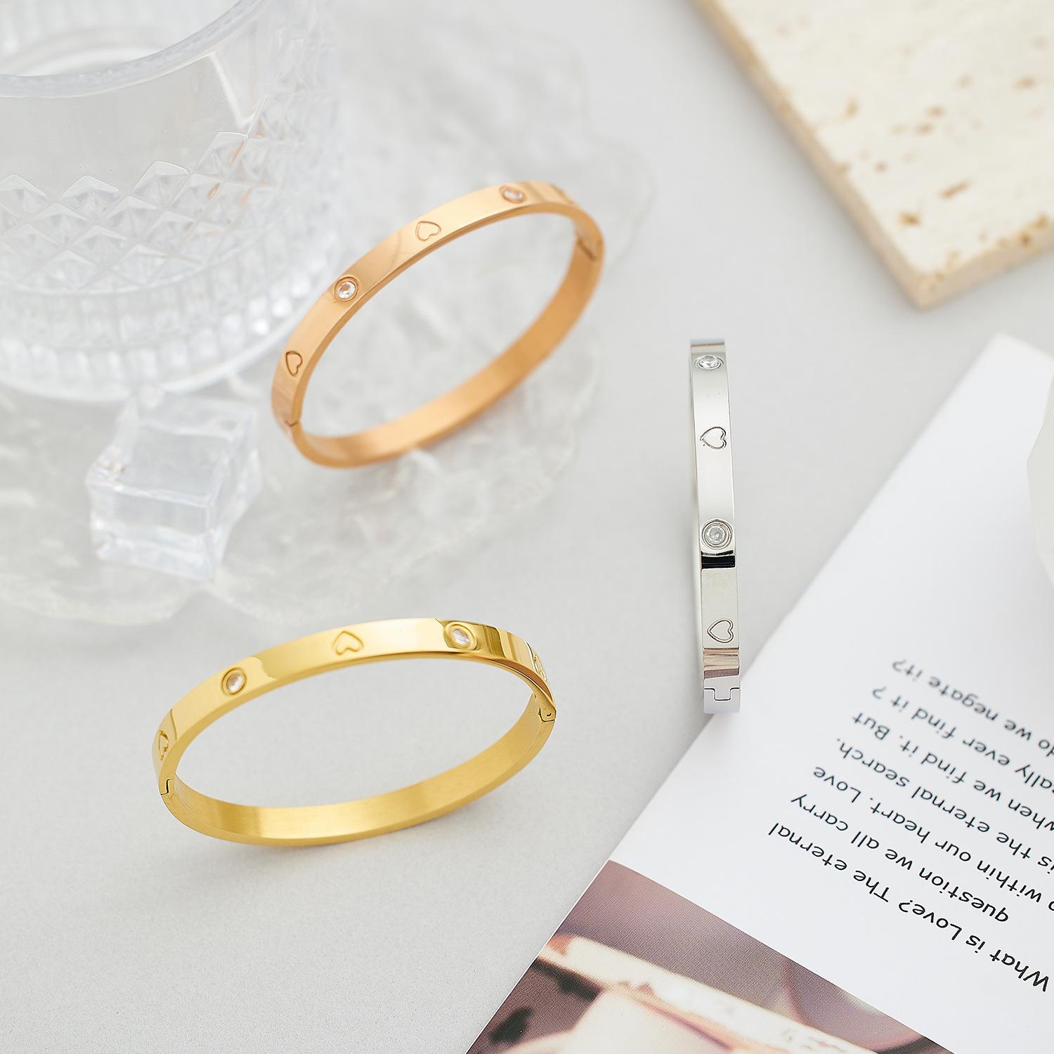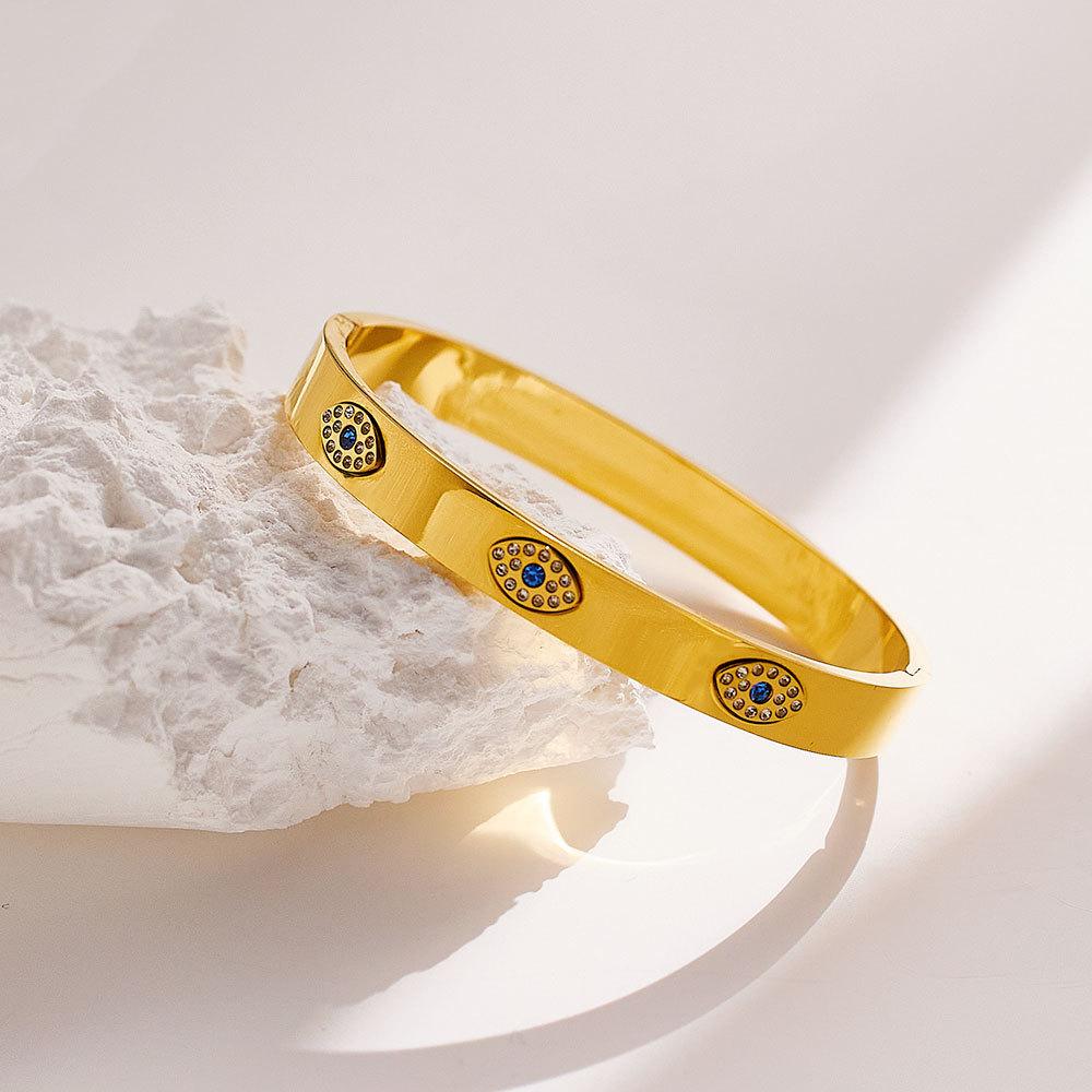 Pulsera Europea y Americana de Acero Inoxidable Estilo Hot Ins Chapada en Oro de 18K Pulsera de Diamantes Pulsera Dorada Retro Apilada de Acero de Titanio para Mujer