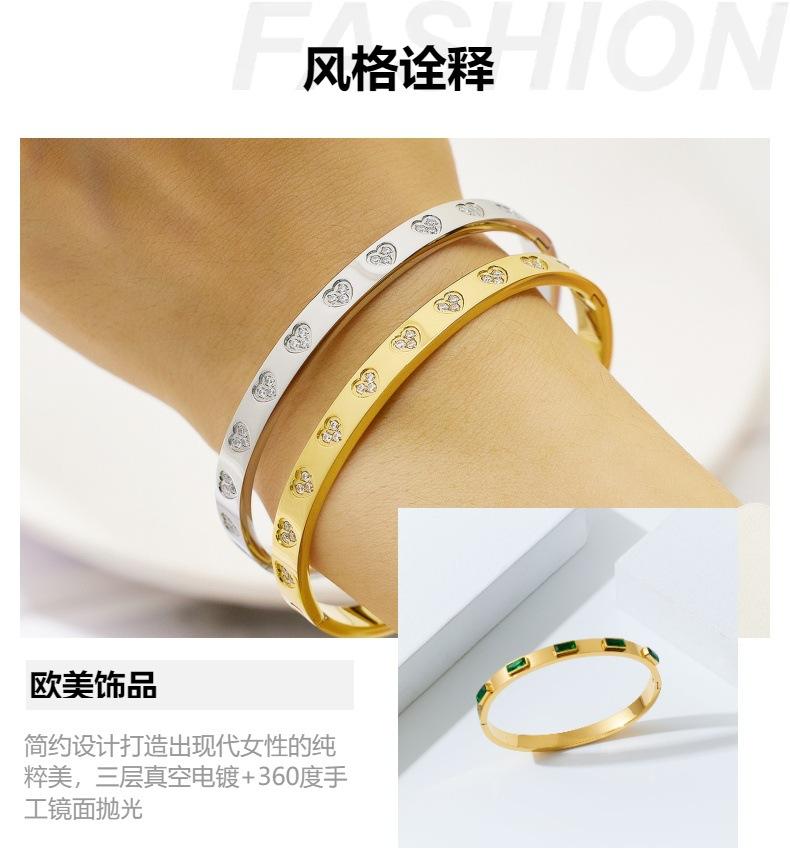 European and American retro French high-end sense gold emerald stainless steel bracelet women wholesale custom