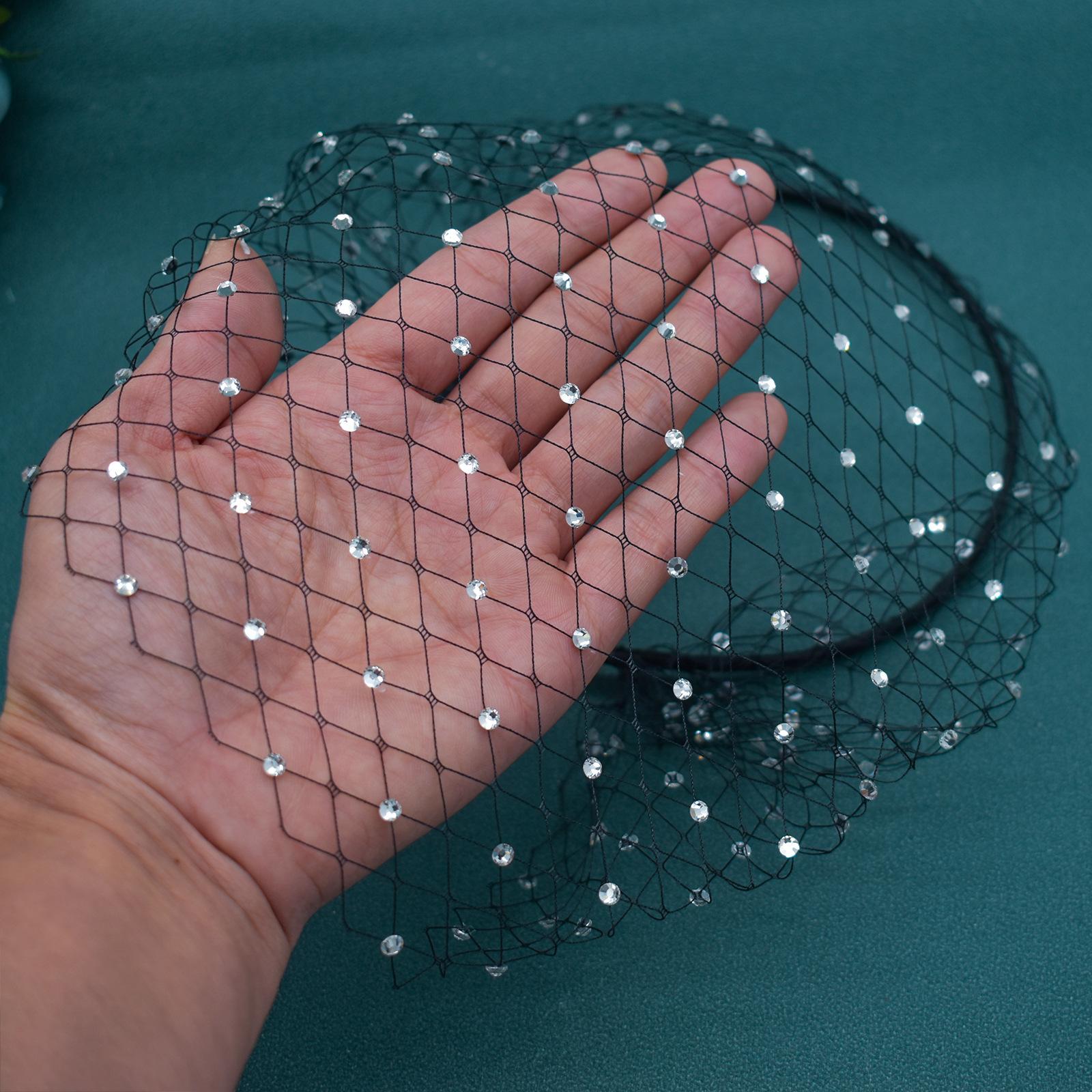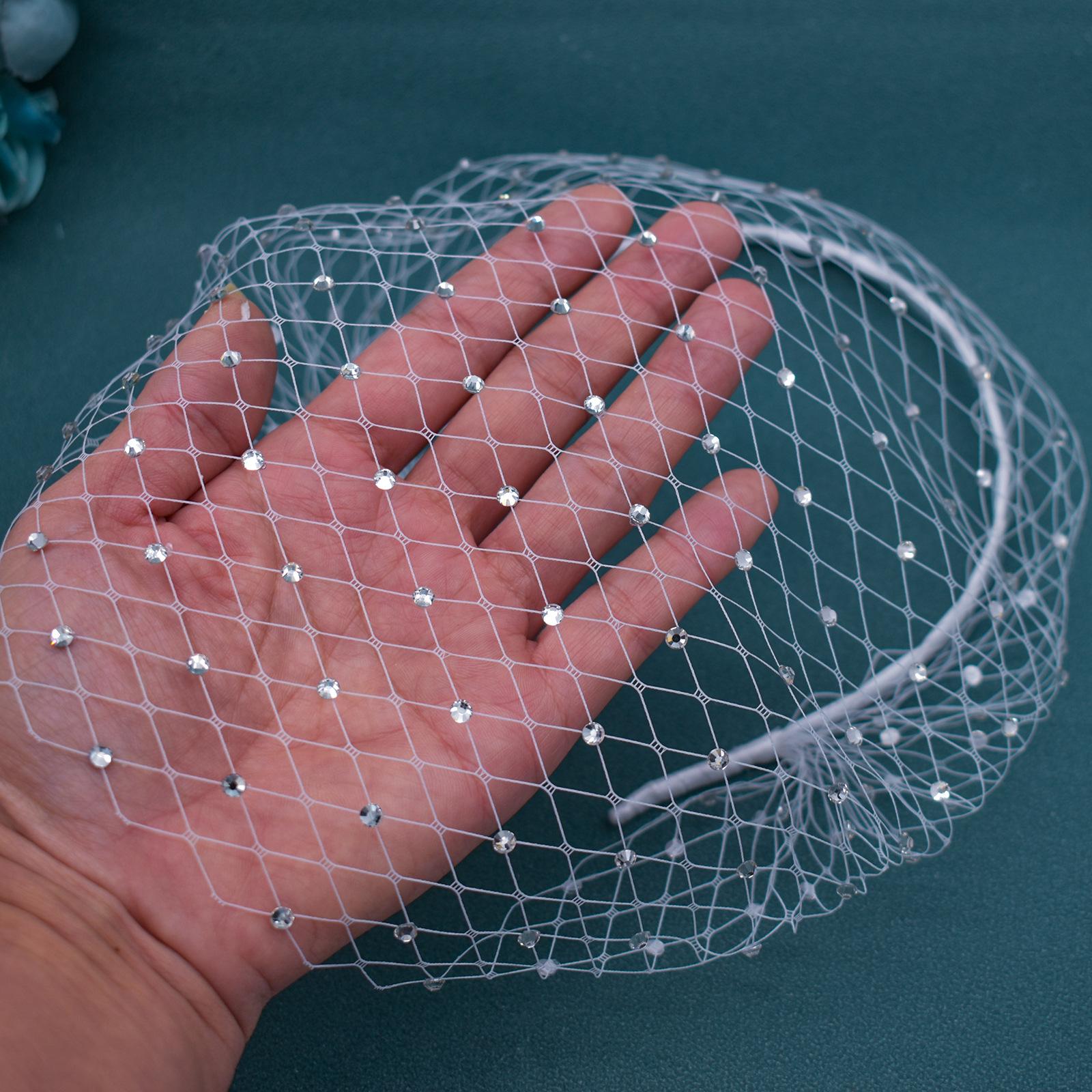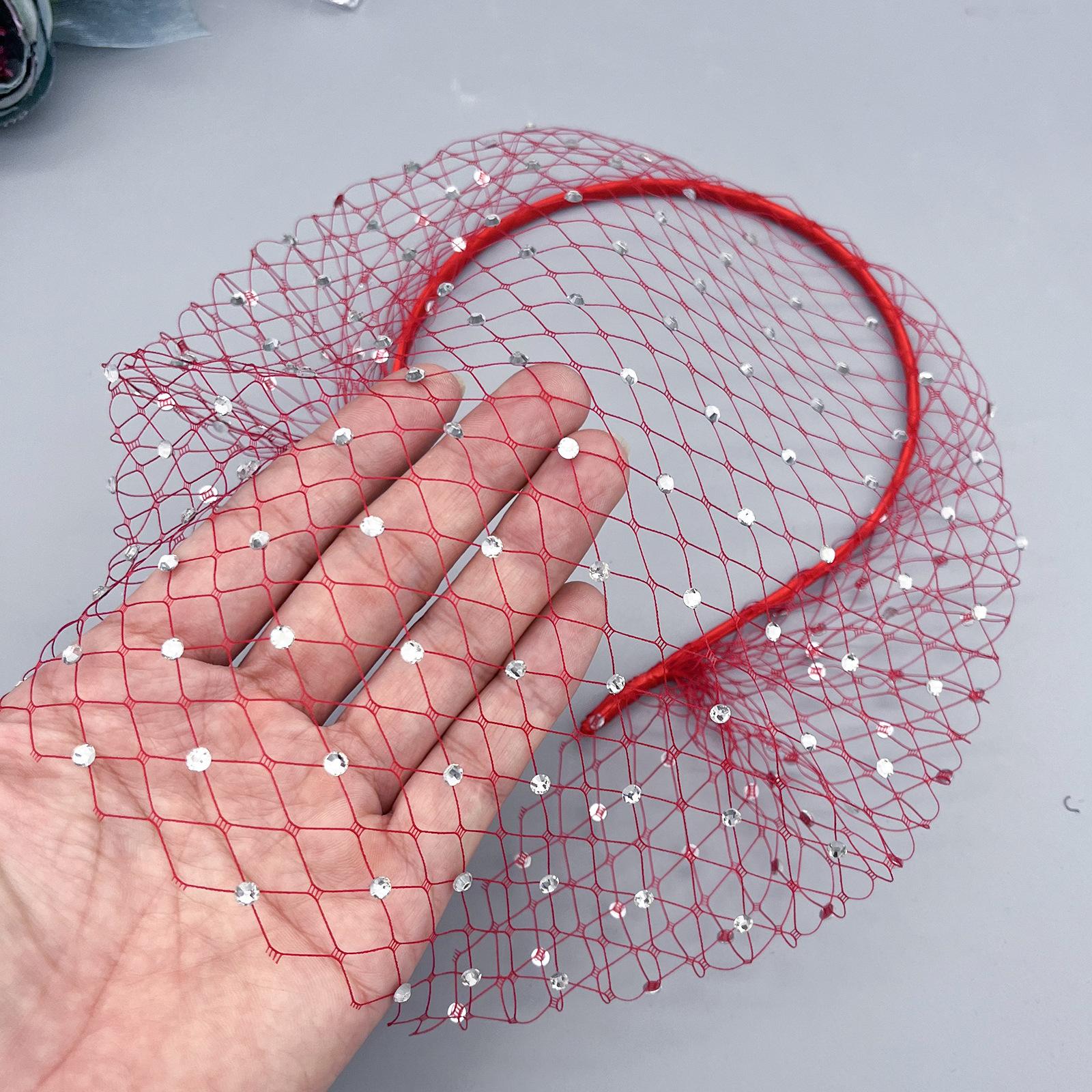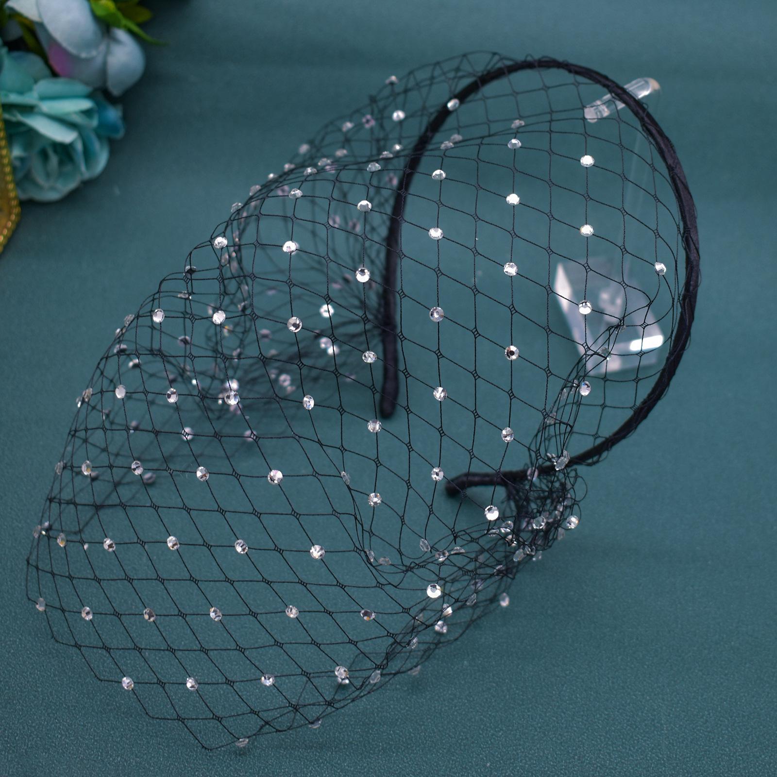 Diadema de velo de diamantes de imitación europea y americana accesorios creativos de malla para el cabello tocado accesorios para vestido de novia cara JM06