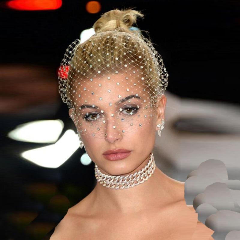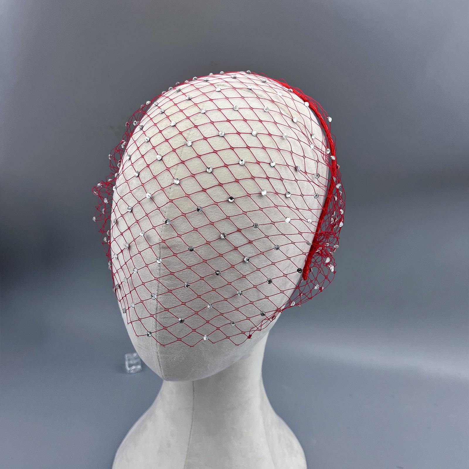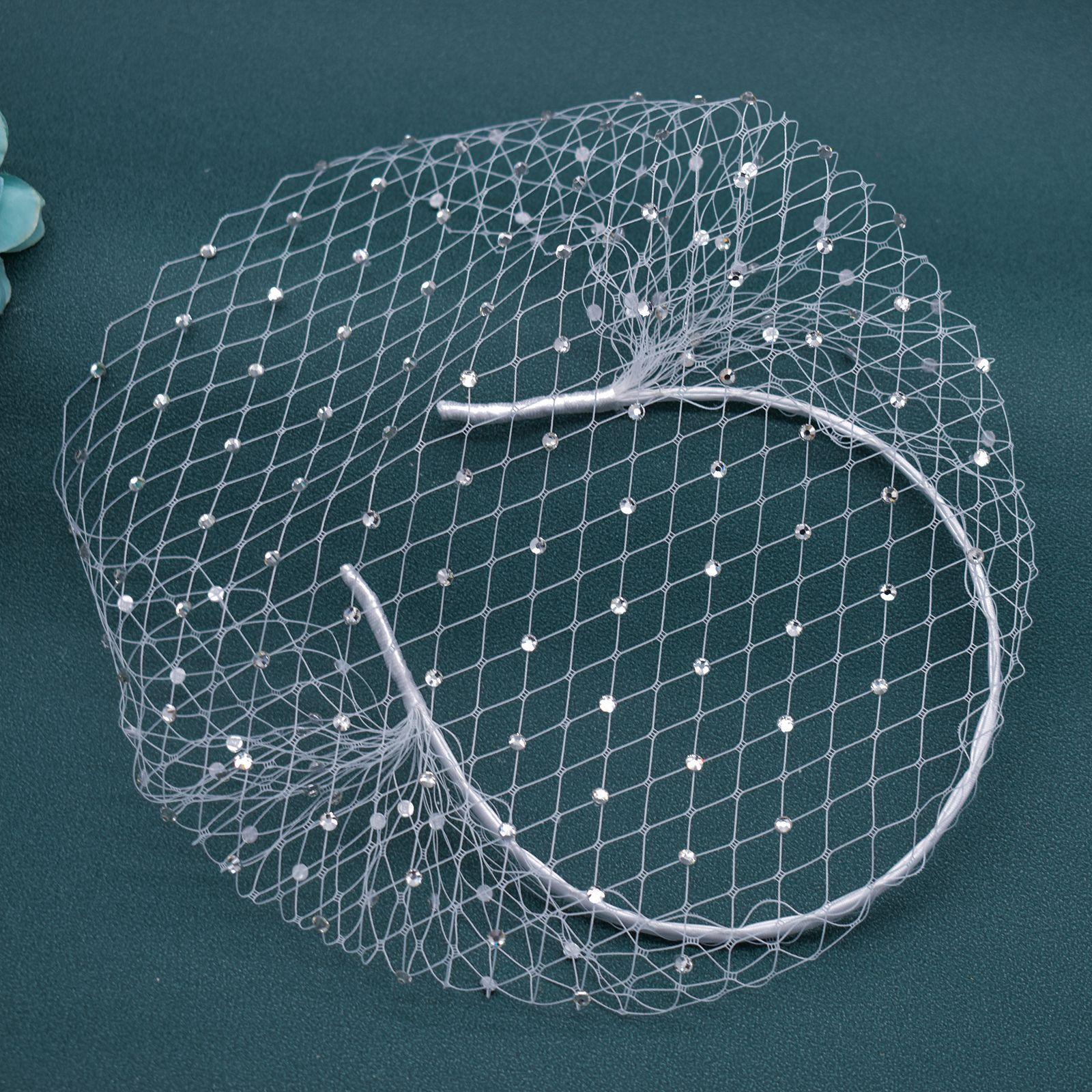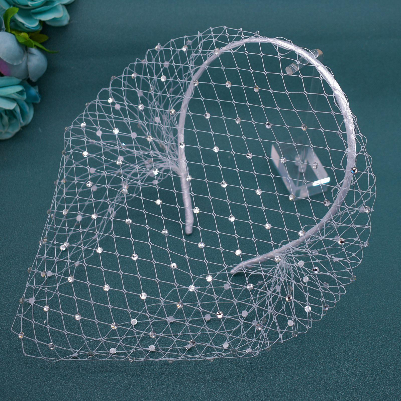 Diadema de velo de diamantes de imitación europea y americana accesorios creativos de malla para el cabello tocado accesorios para vestido de novia cara JM06