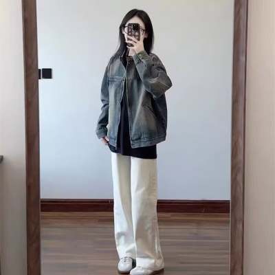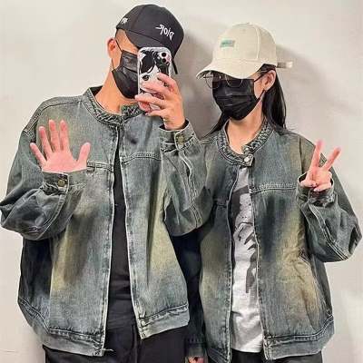 Chaqueta vaquera vintage de marca de moda para hombre y mujer, primavera y otoño, americana, holgada, informal, con cremallera