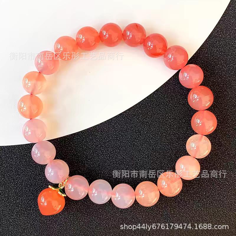 Pulsera de Ágata Yanyuan Color Caramelo Degradado Colgante de Durazno Pequeño Pulsera de una Sola Vuelta Joyería de Cristal Natural para Mujer