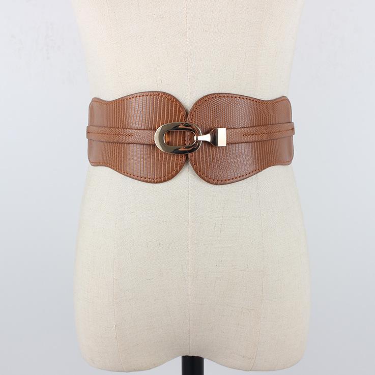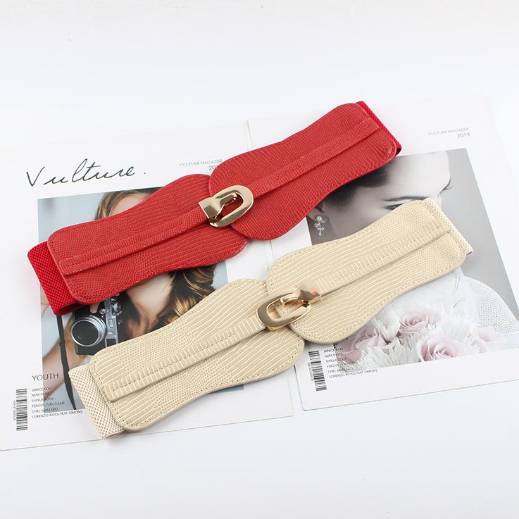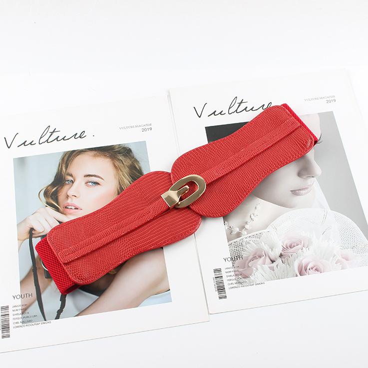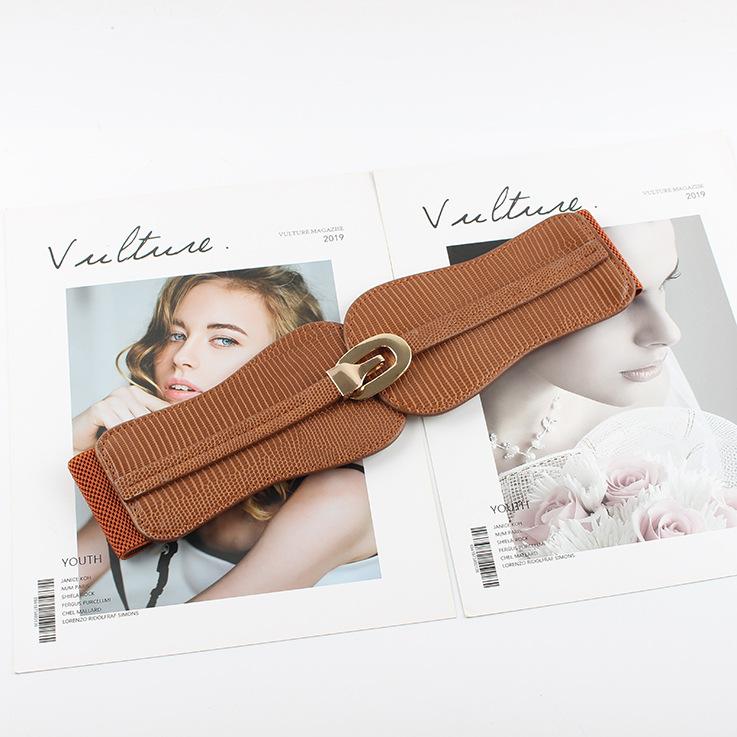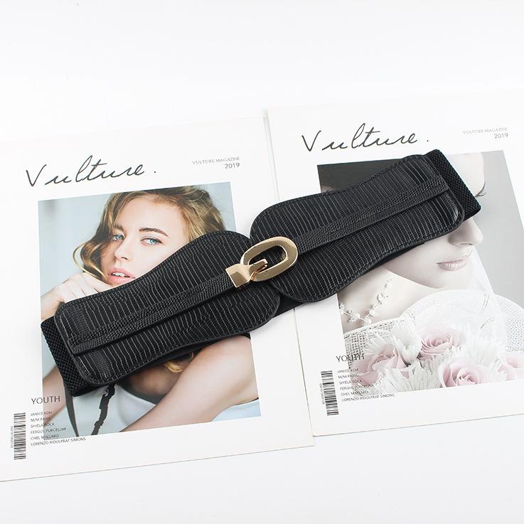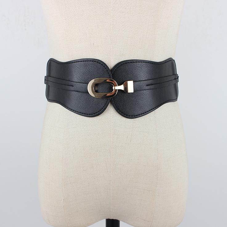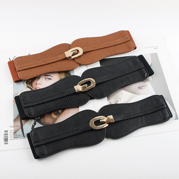 Compra Cinturón elástico con sello de cintura elástica para mujer, decorativo, ancho, sencillo, combinable con traje, falda, camisa, cinturón de moda. al por mayor en Joom.pro