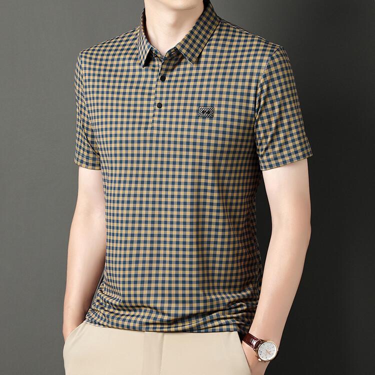 Camiseta de manga corta de verano para hombre, nueva camiseta polo de seda de hielo Lel para negocios, informal, a cuadros, de moda
