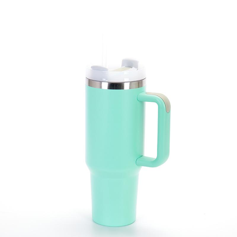 Amazon Transfronterizo 40oz Vaso para Coche con Asa Pajita Fría Vaso para Hielo Acero Inoxidable 304 Termo de Gran Capacidad