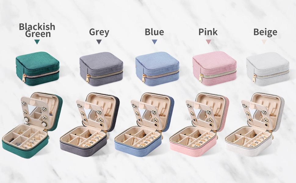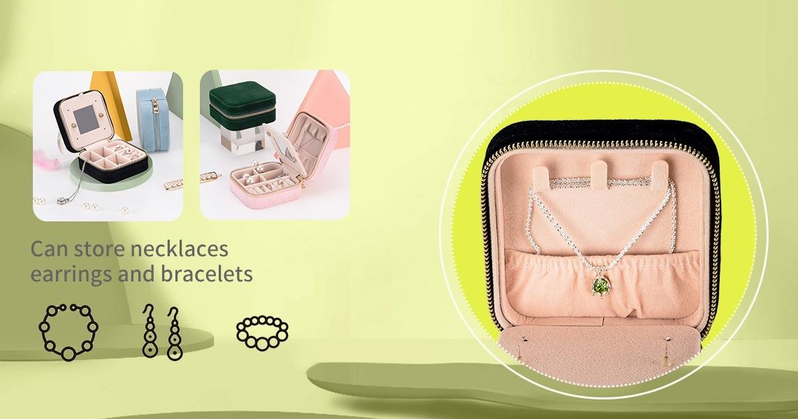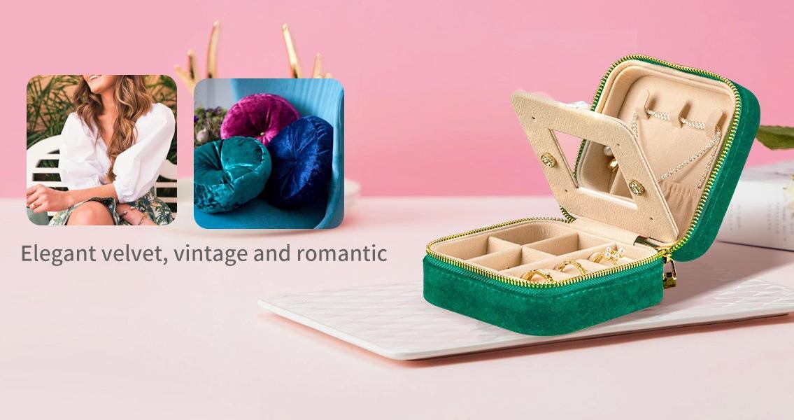 Caja de almacenamiento de joyas de viaje para mujer, bolsa de almacenamiento de joyas, mini caja de viaje para anillos, pendientes, collares y pulseras con espejo