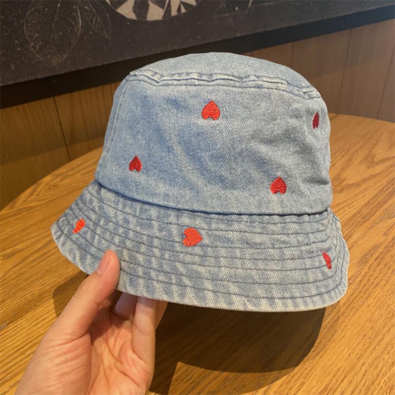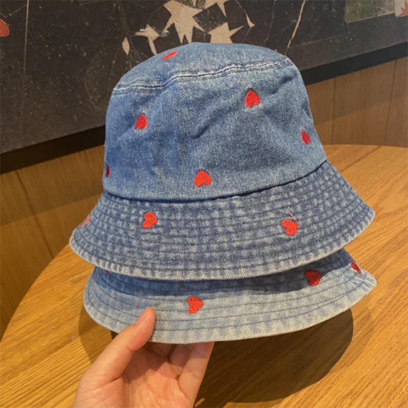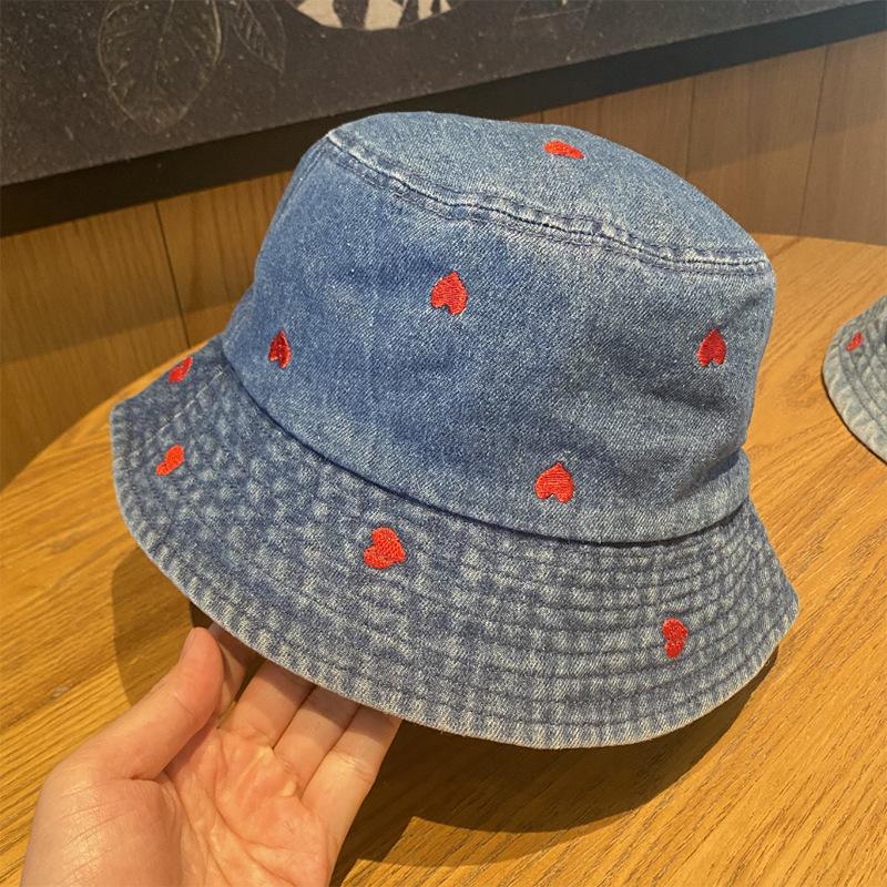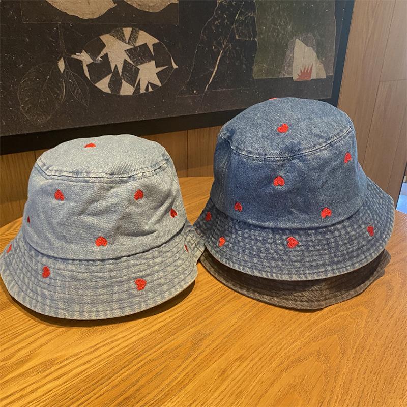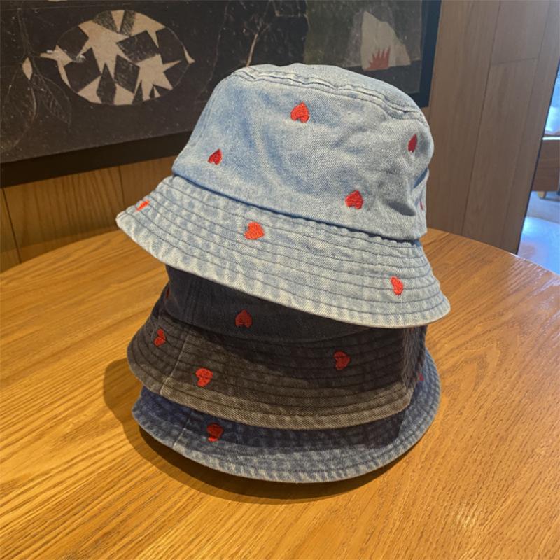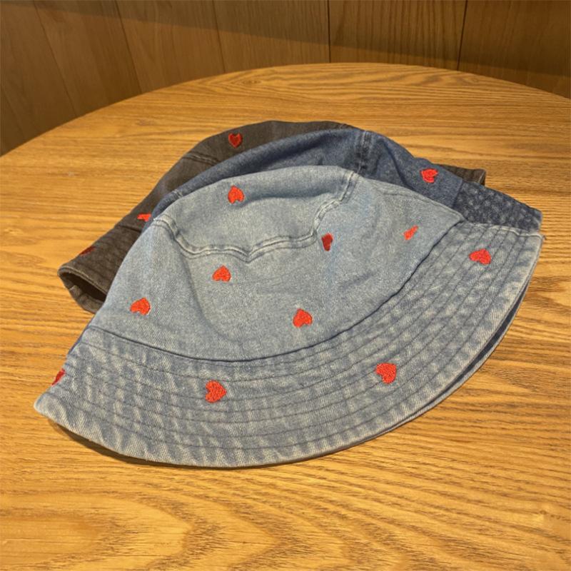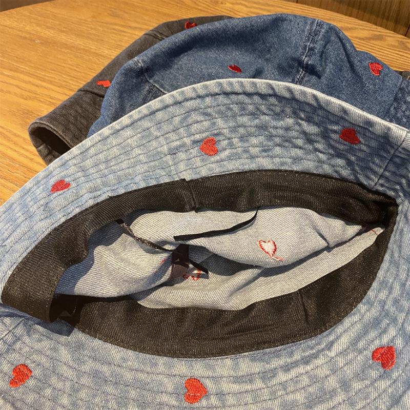 Heart Denim fisherman hat-Black, Love Denim fisherman hat-light blue, Love Denim fisherman hat-dark blue