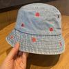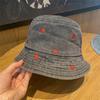 Sombrero de pescador de mezclilla bordado retro de estilo japonés para mujer, sombrero de pescador pequeño, resistente al sol, de estilo coreano, versátil y de moda para primavera y otoño.