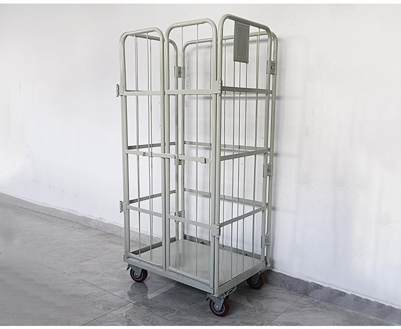 Camión logístico con jaula metálica, camión de clasificación exprés, carro logístico plegable con volteo, carro logístico de empuje