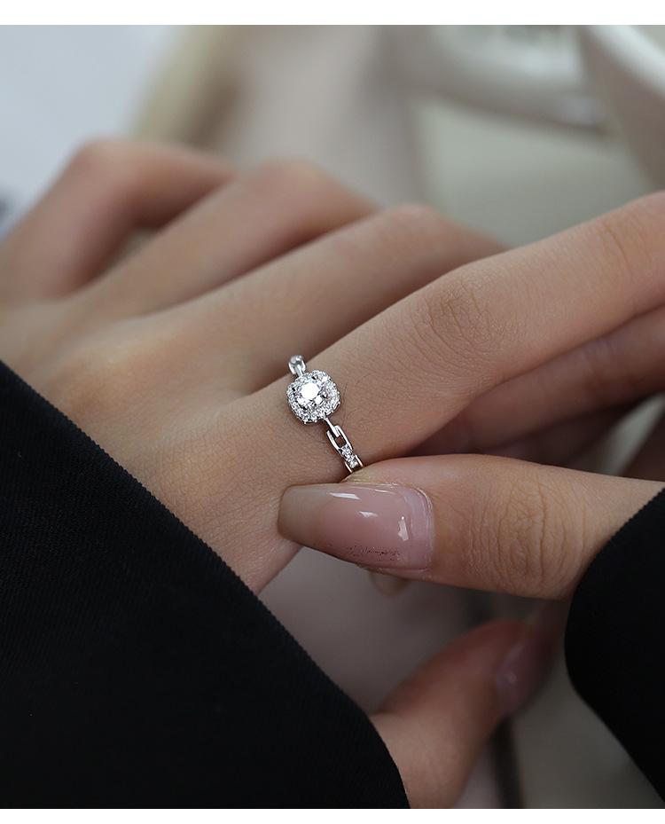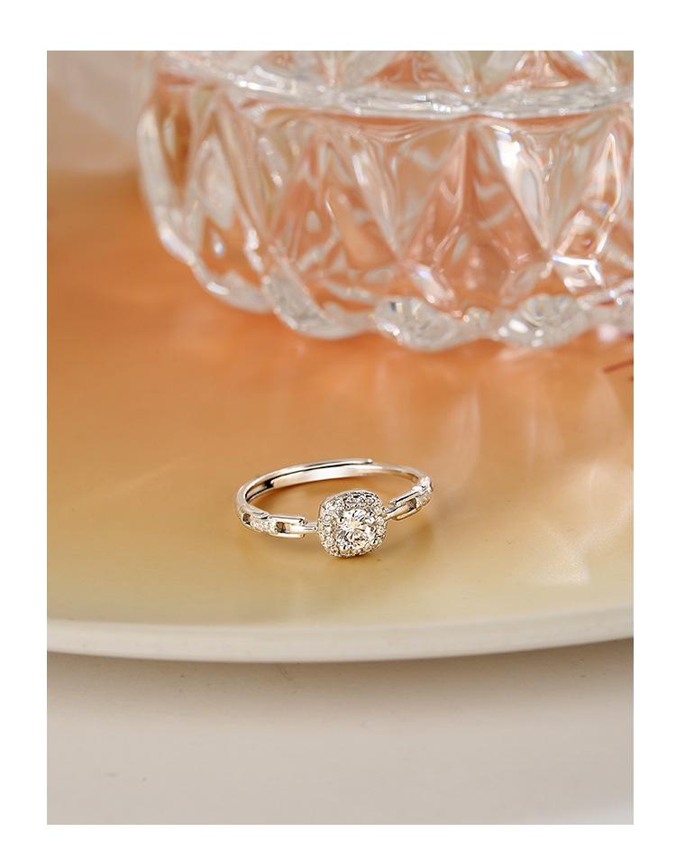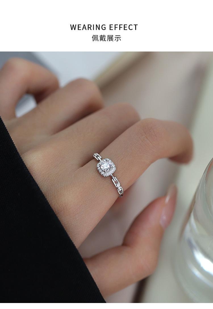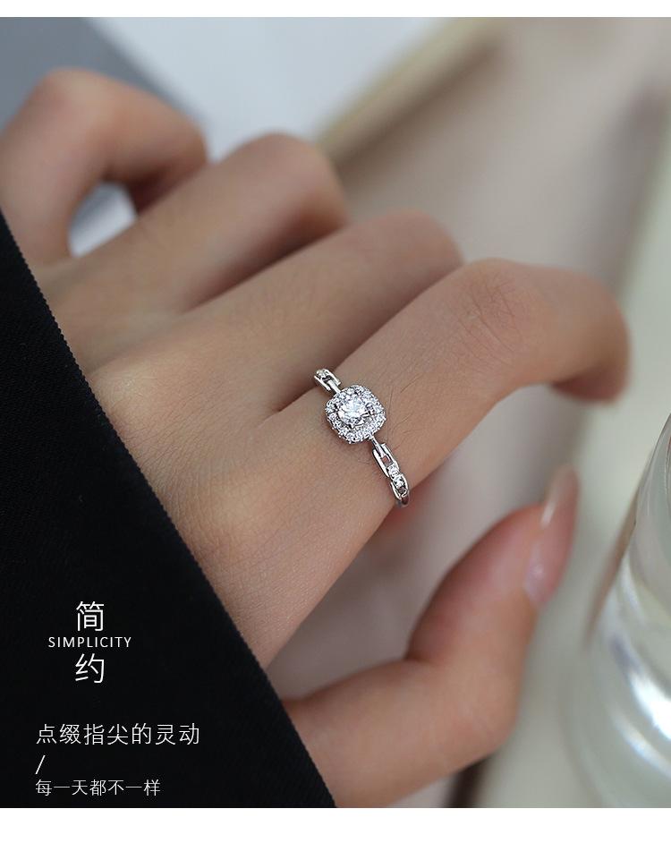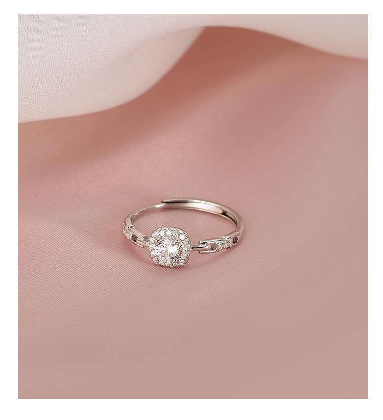 Anillo de Azúcar Anillo de Diamante de Simulación de Sentido Avanzado de Nicho de Lujo Ligero para Mujer Cadena de Diamantes Cuadrados Abertura Ajustable para el Dedo Índice