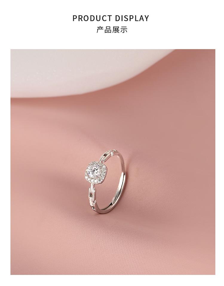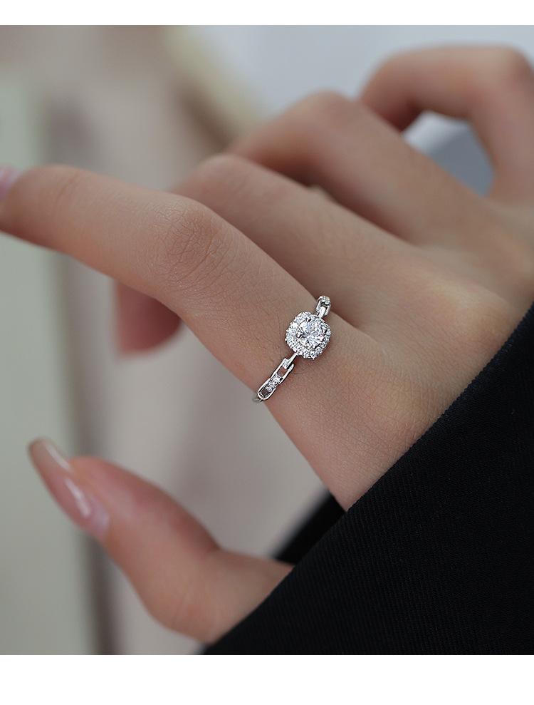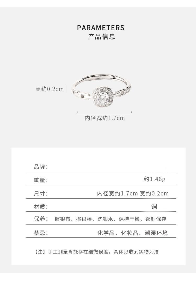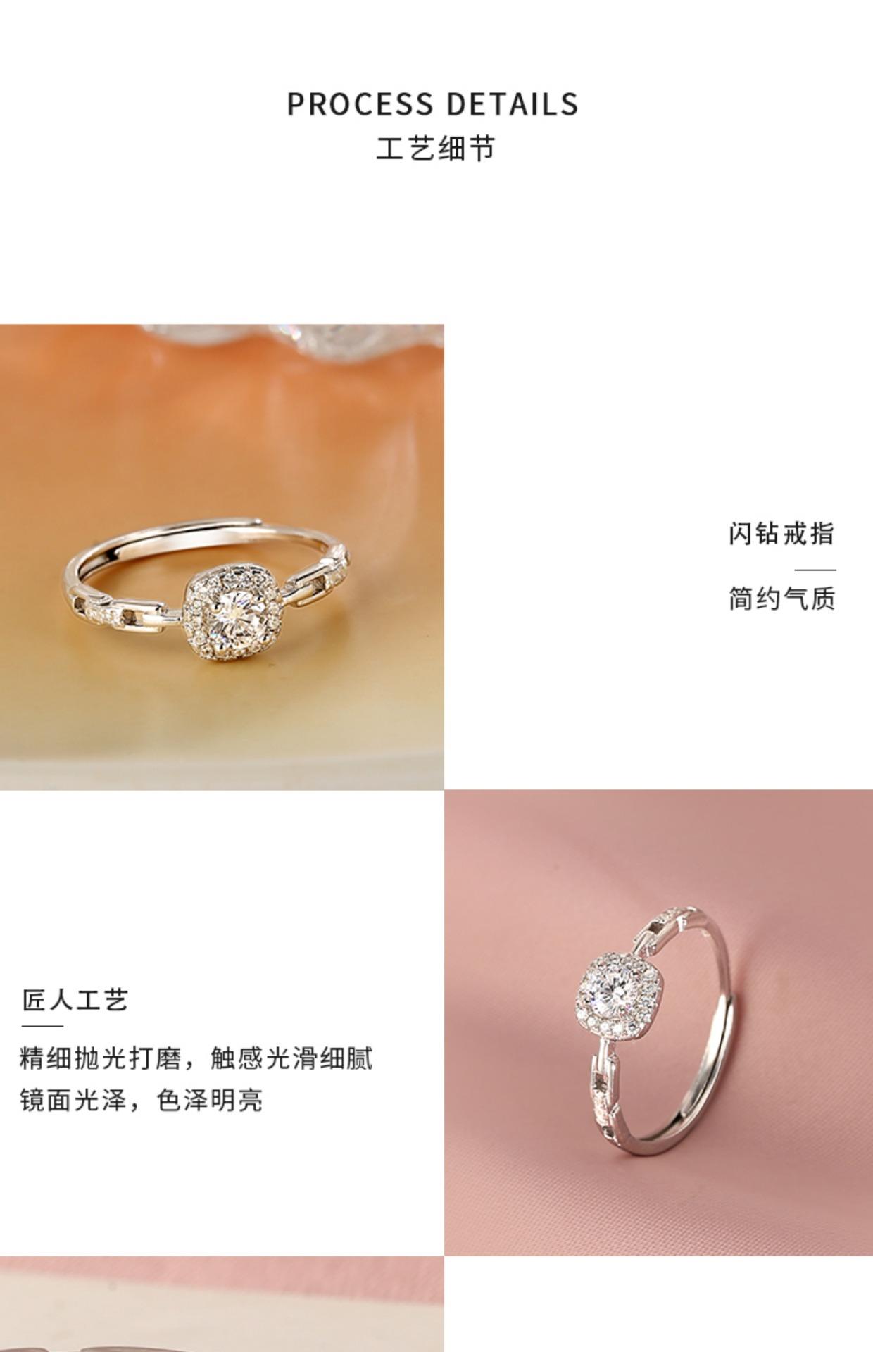 Anillo de Azúcar Anillo de Diamante de Simulación de Sentido Avanzado de Nicho de Lujo Ligero para Mujer Cadena de Diamantes Cuadrados Abertura Ajustable para el Dedo Índice