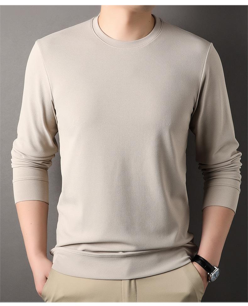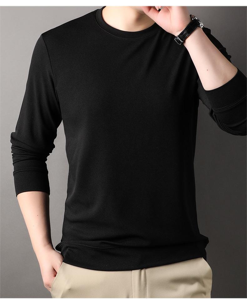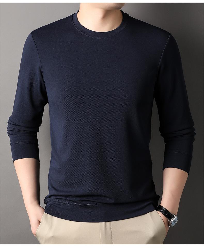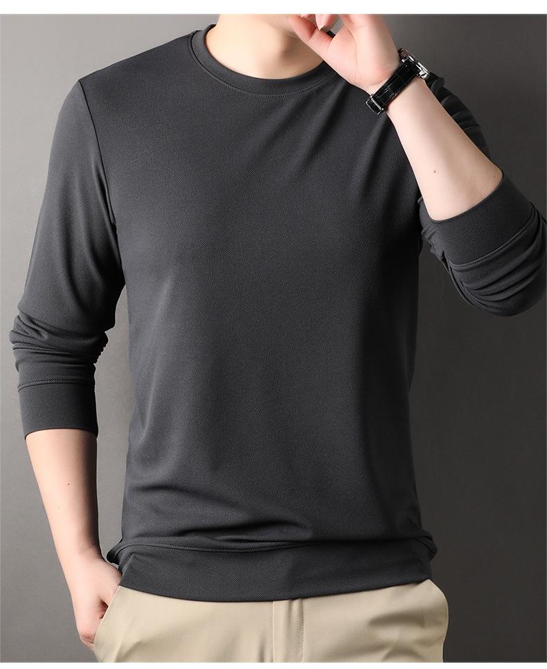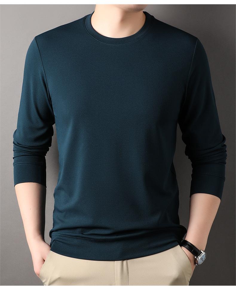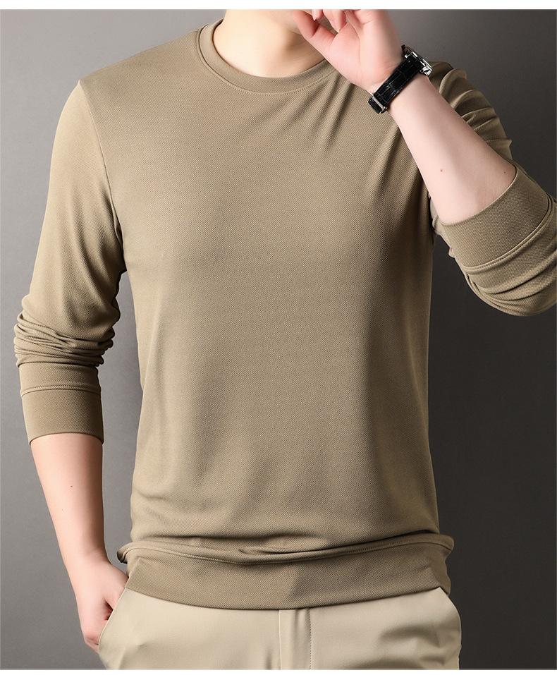 Suéter de manga larga para hombre, camiseta de primavera y otoño, cuello redondo ajustado, color liso, informal, transpirable