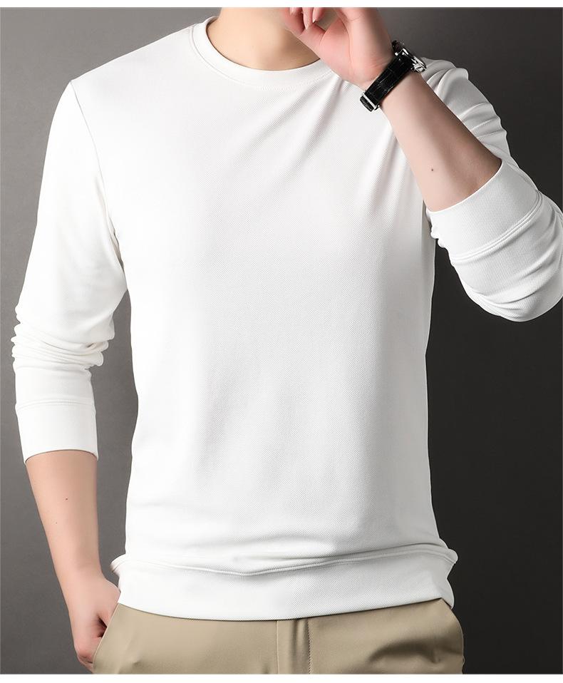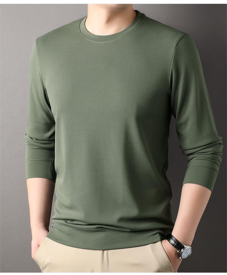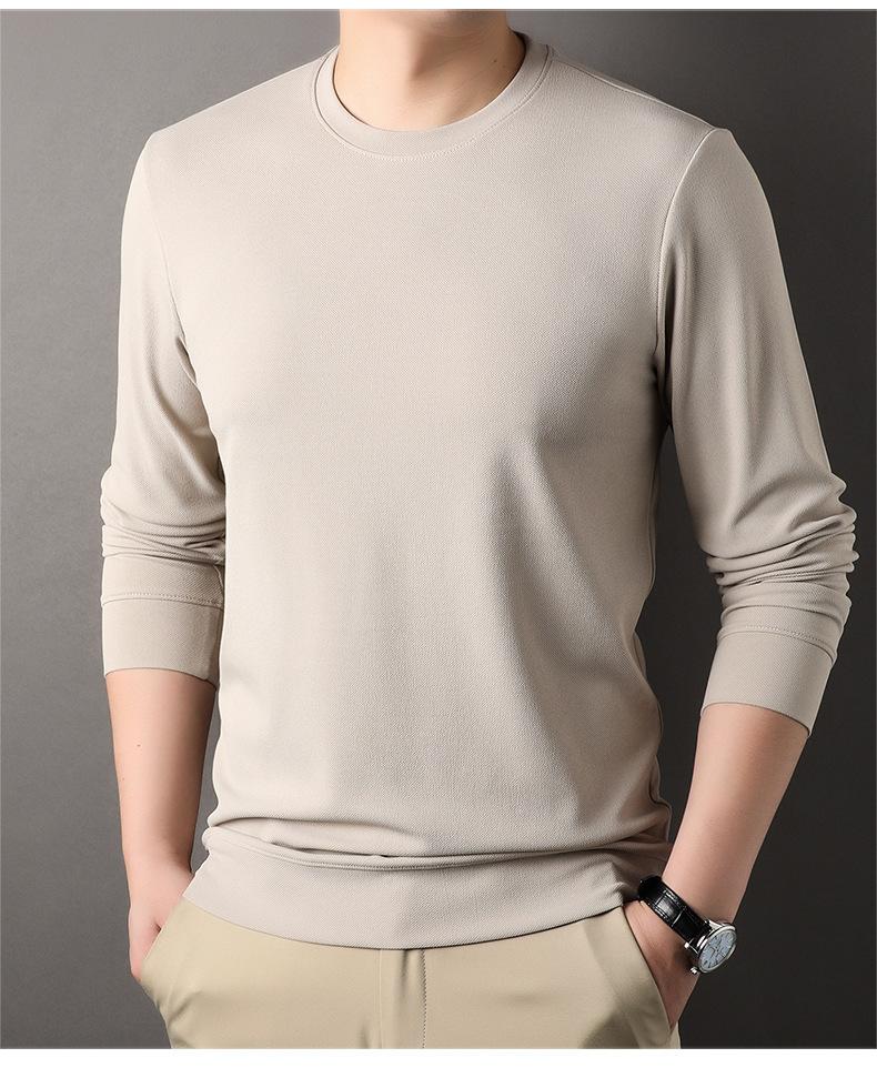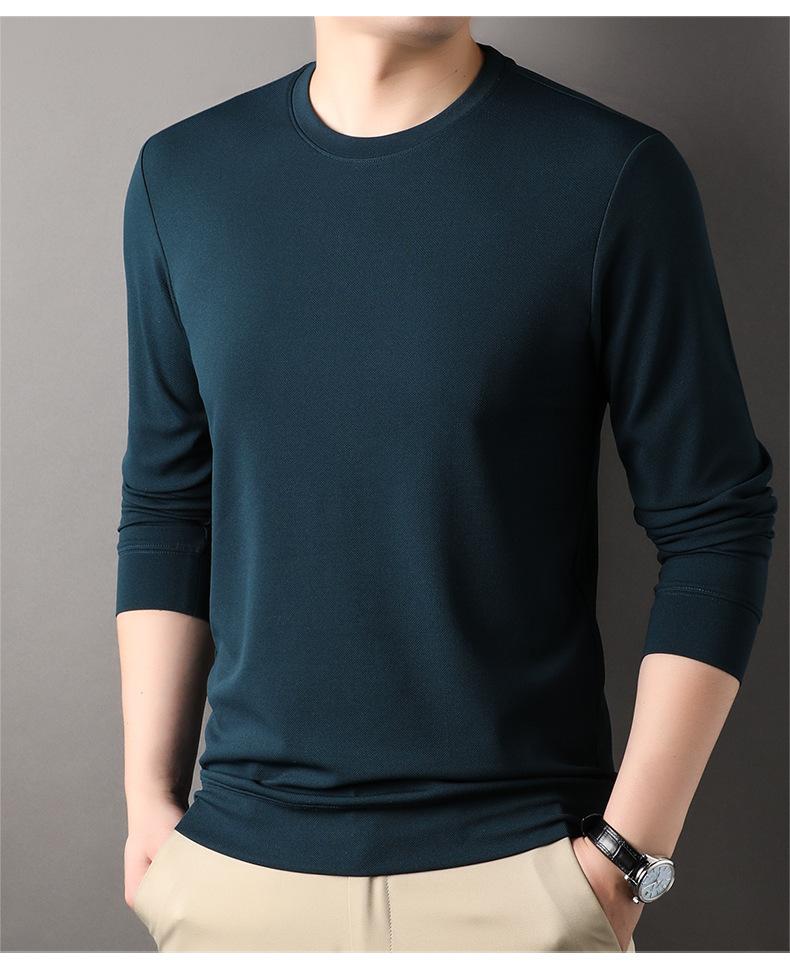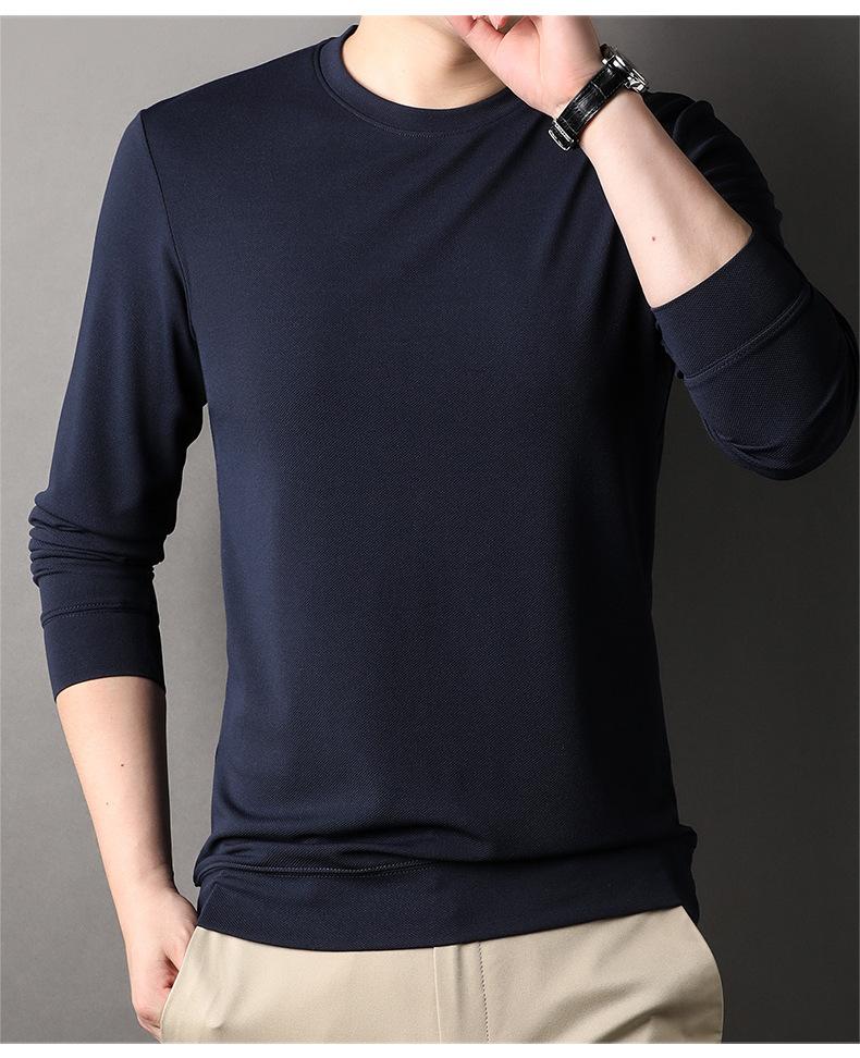 Suéter de manga larga para hombre, camiseta de primavera y otoño, cuello redondo ajustado, color liso, informal, transpirable