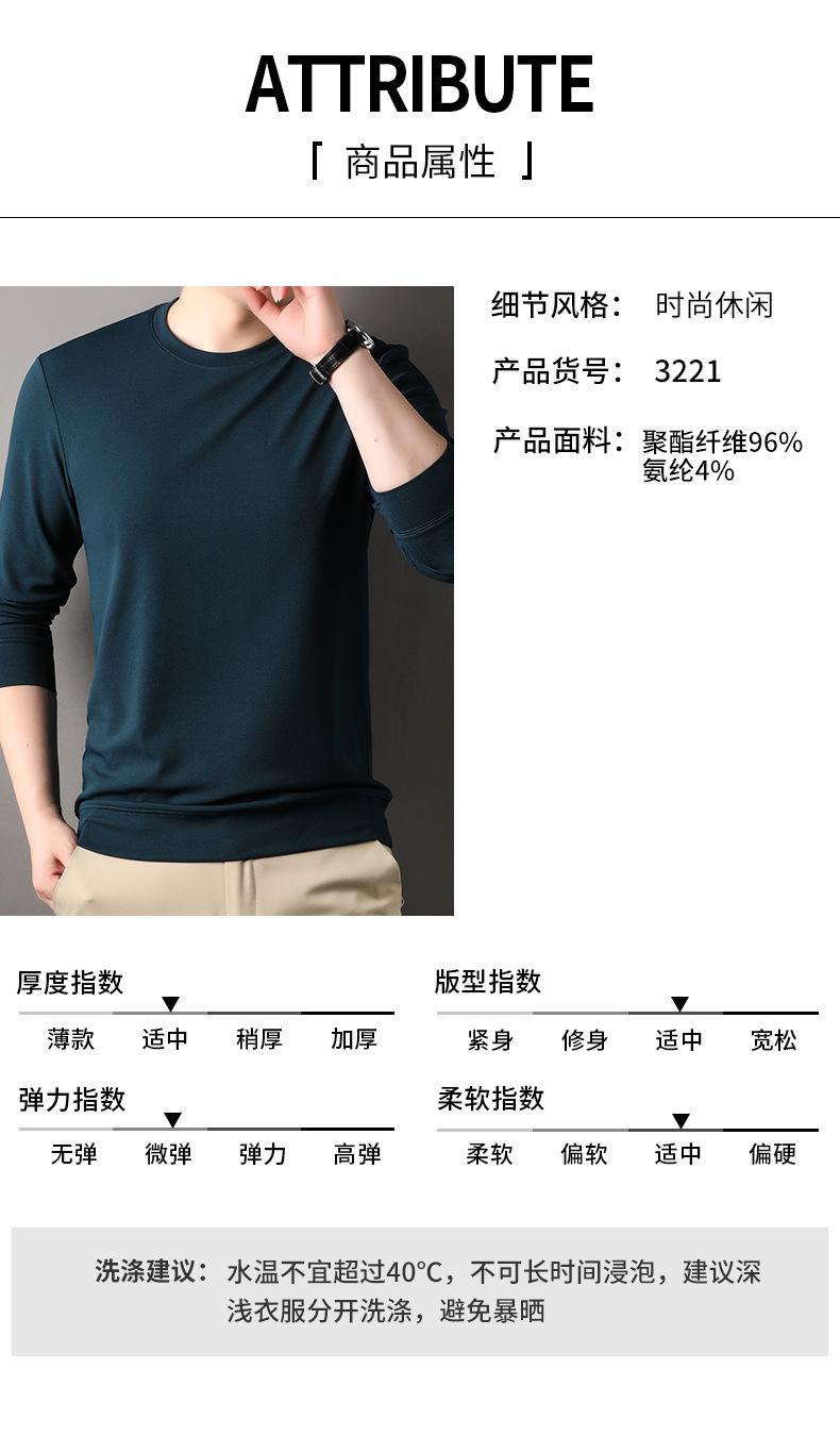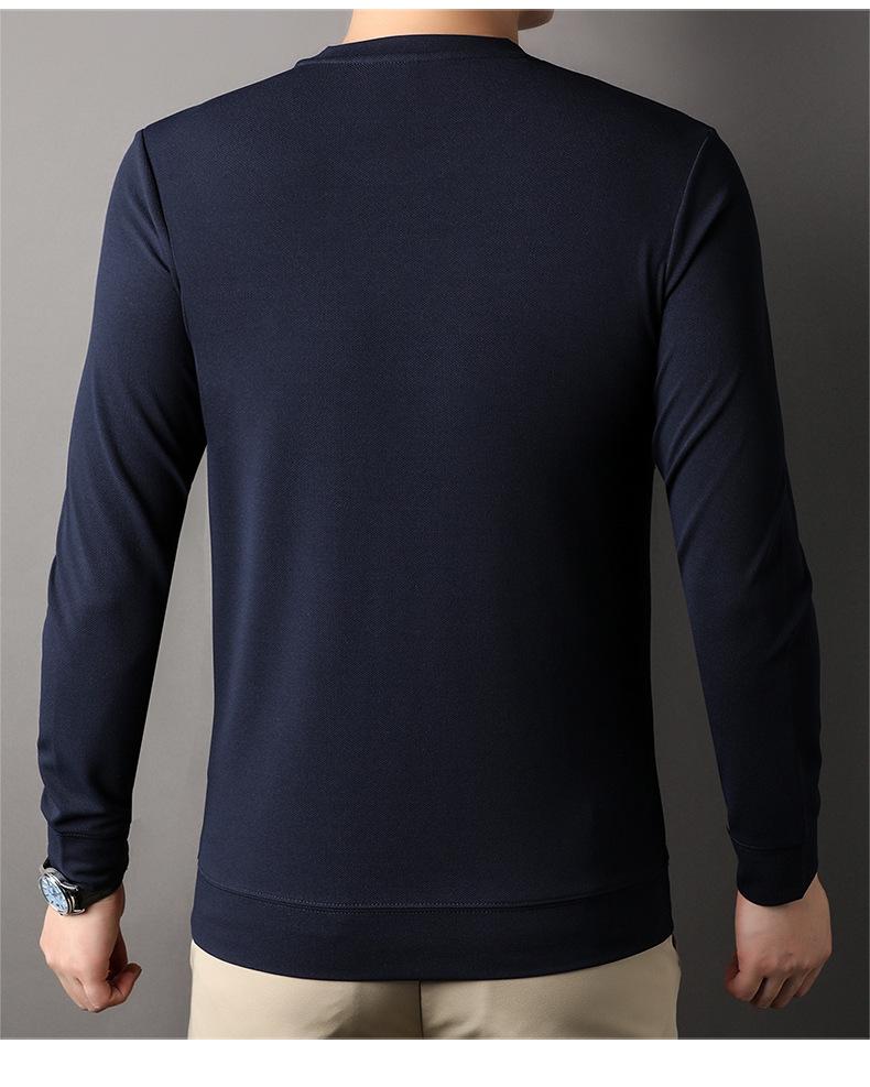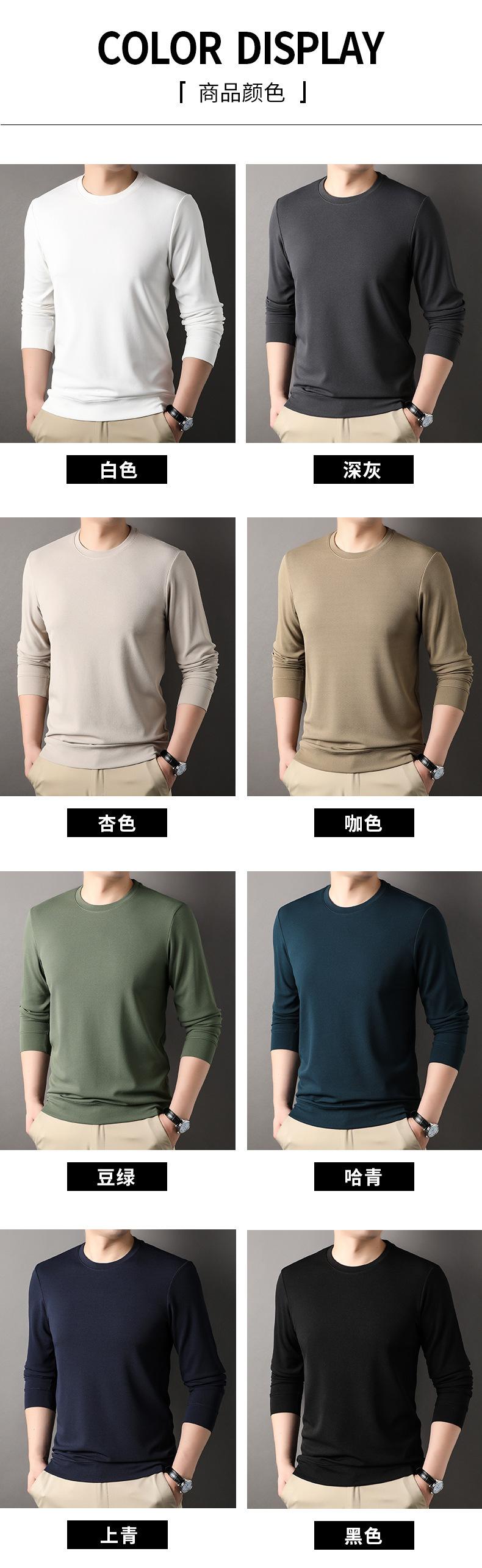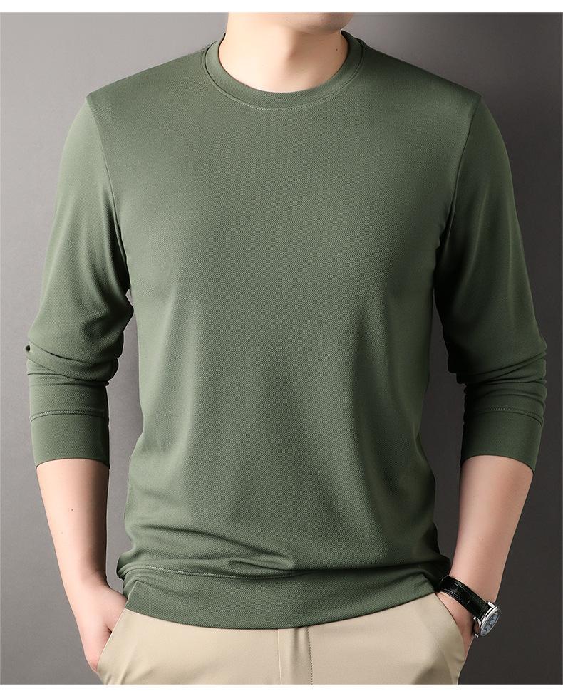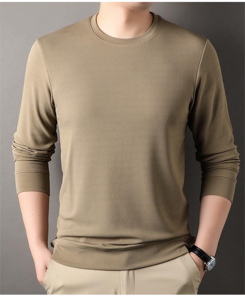 Suéter de manga larga para hombre, camiseta de primavera y otoño, cuello redondo ajustado, color liso, informal, transpirable