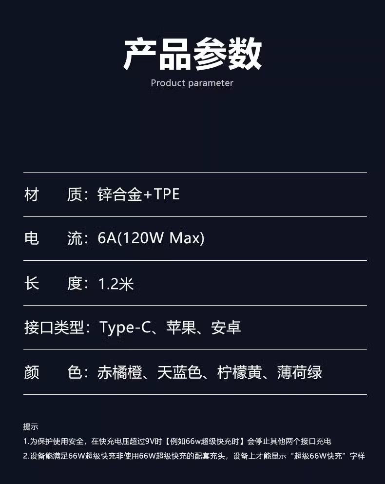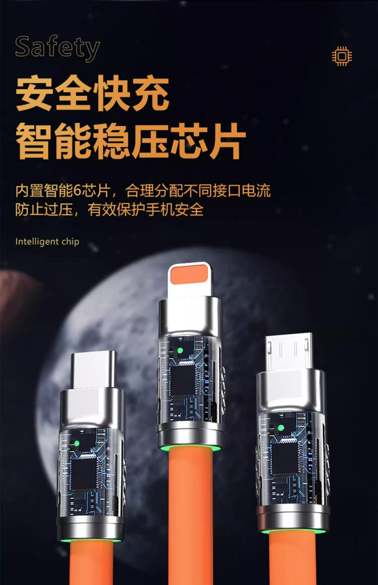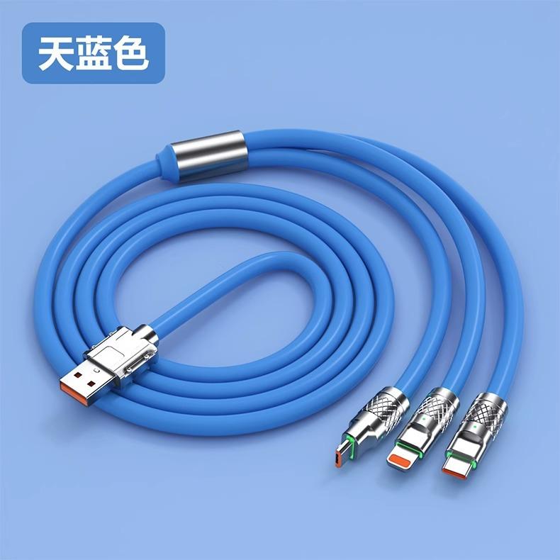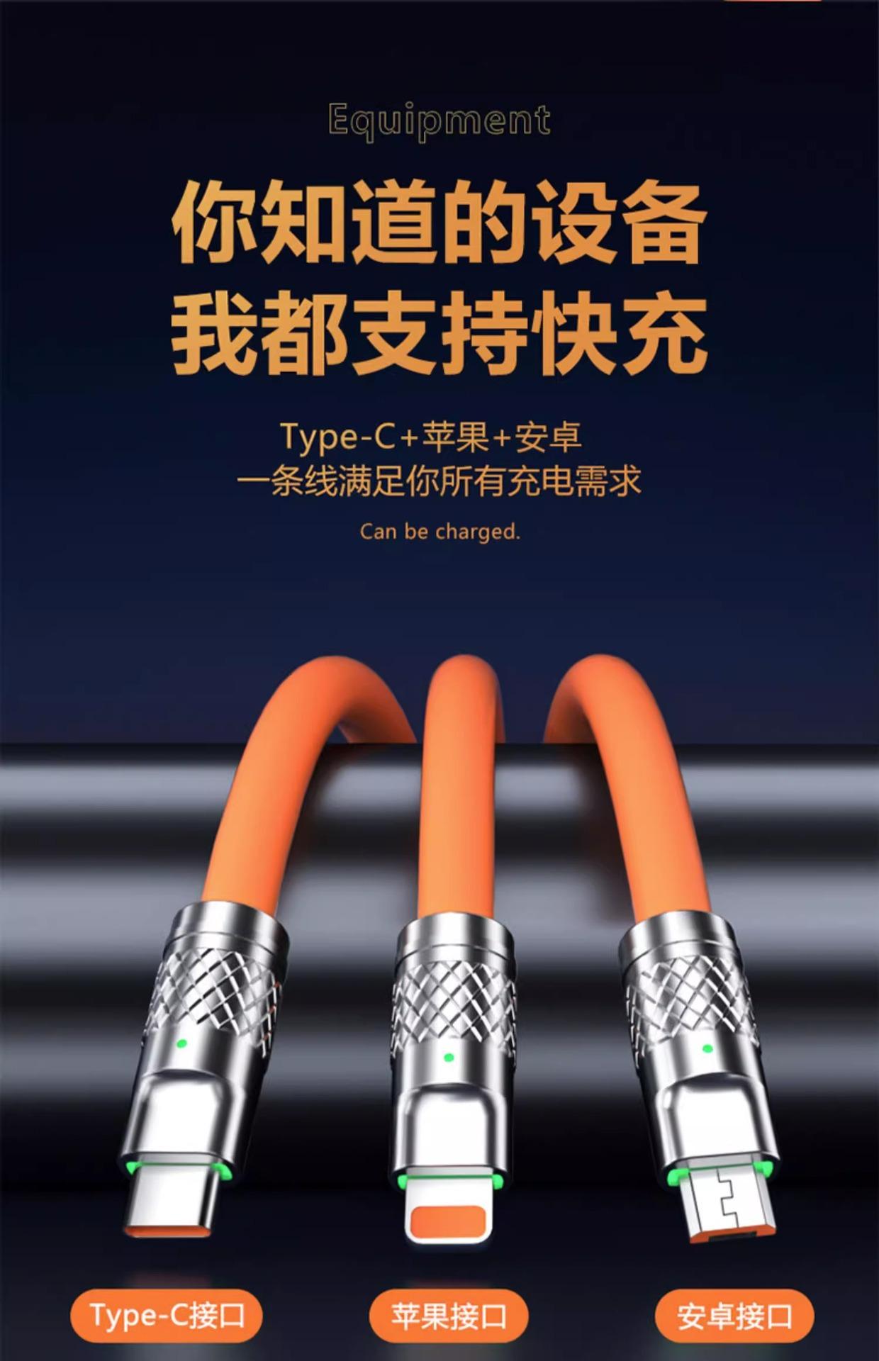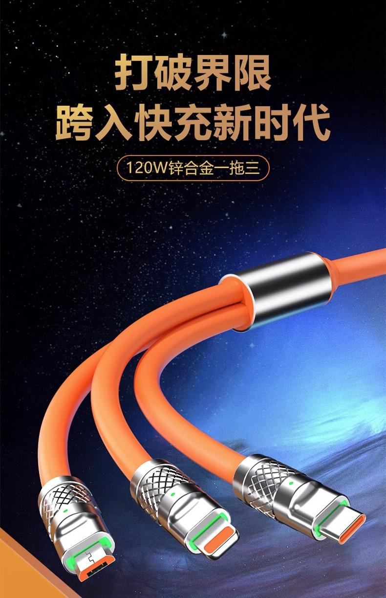 Cable de datos uno a tres de carga súper rápida de 120 W es adecuado para la línea de carga tres en uno Android tipo C de Apple Huawei