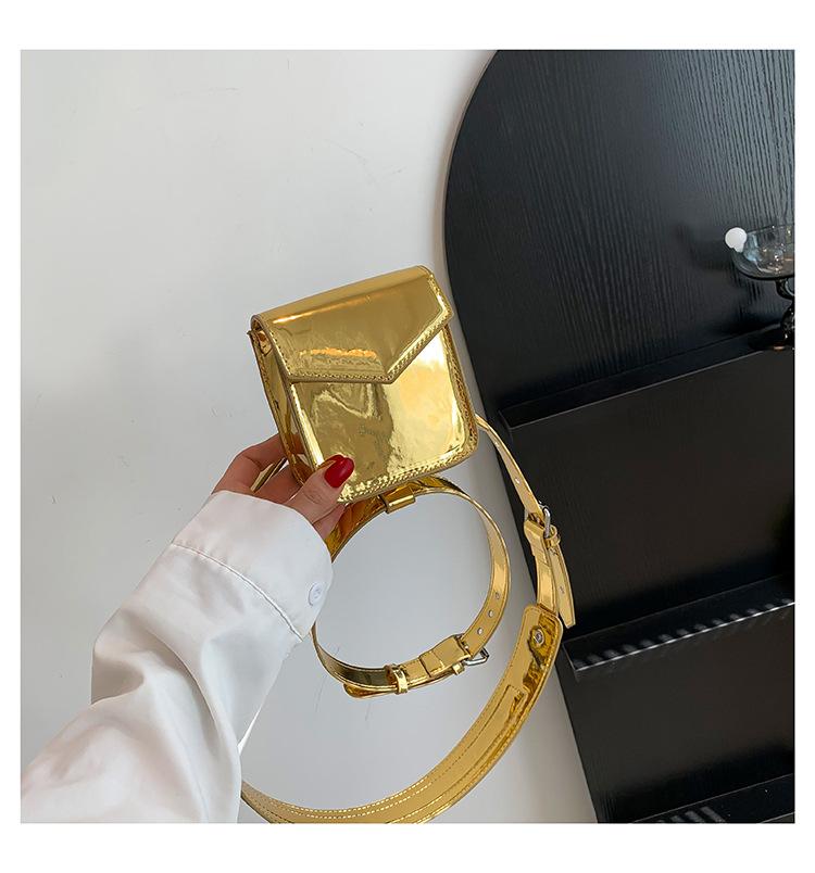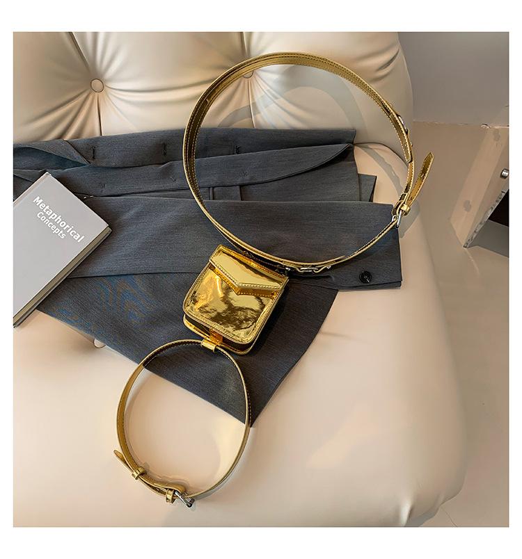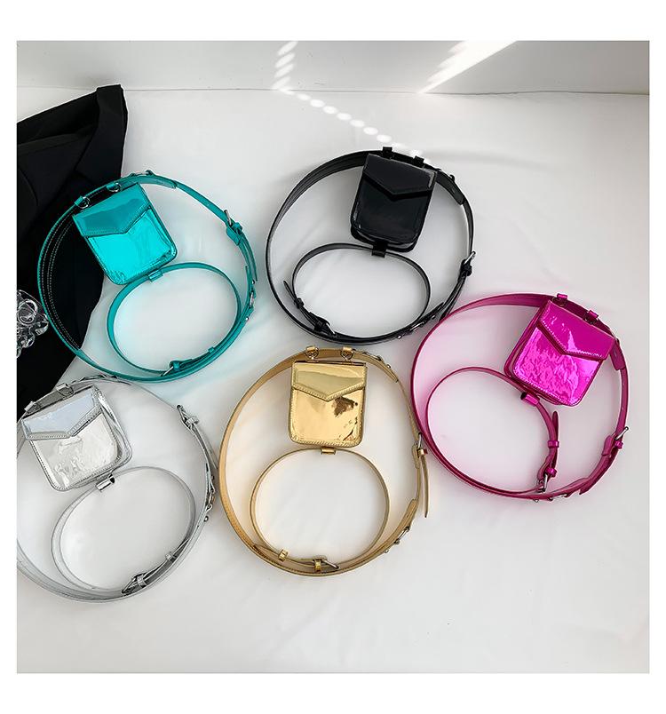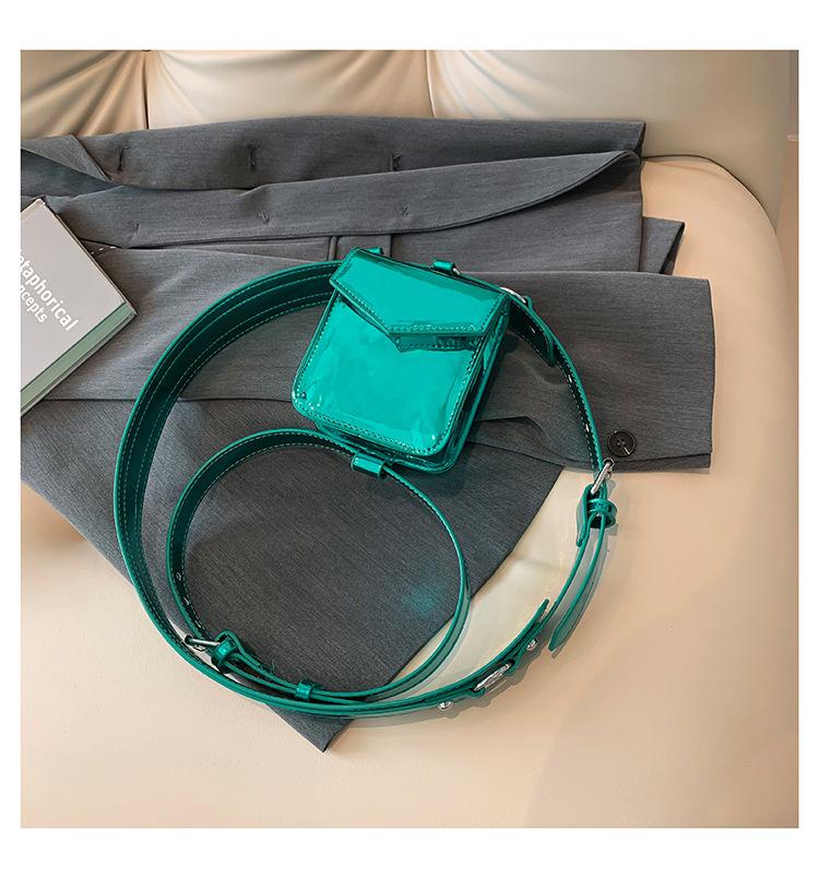 Diseño Nicho Riñonera de Cuero Brillante para Mujer Nueva Mini Moda Combinable Bolso para Leggings de Mujer Cinturón Ancho Bolso Cuadrado Pequeño