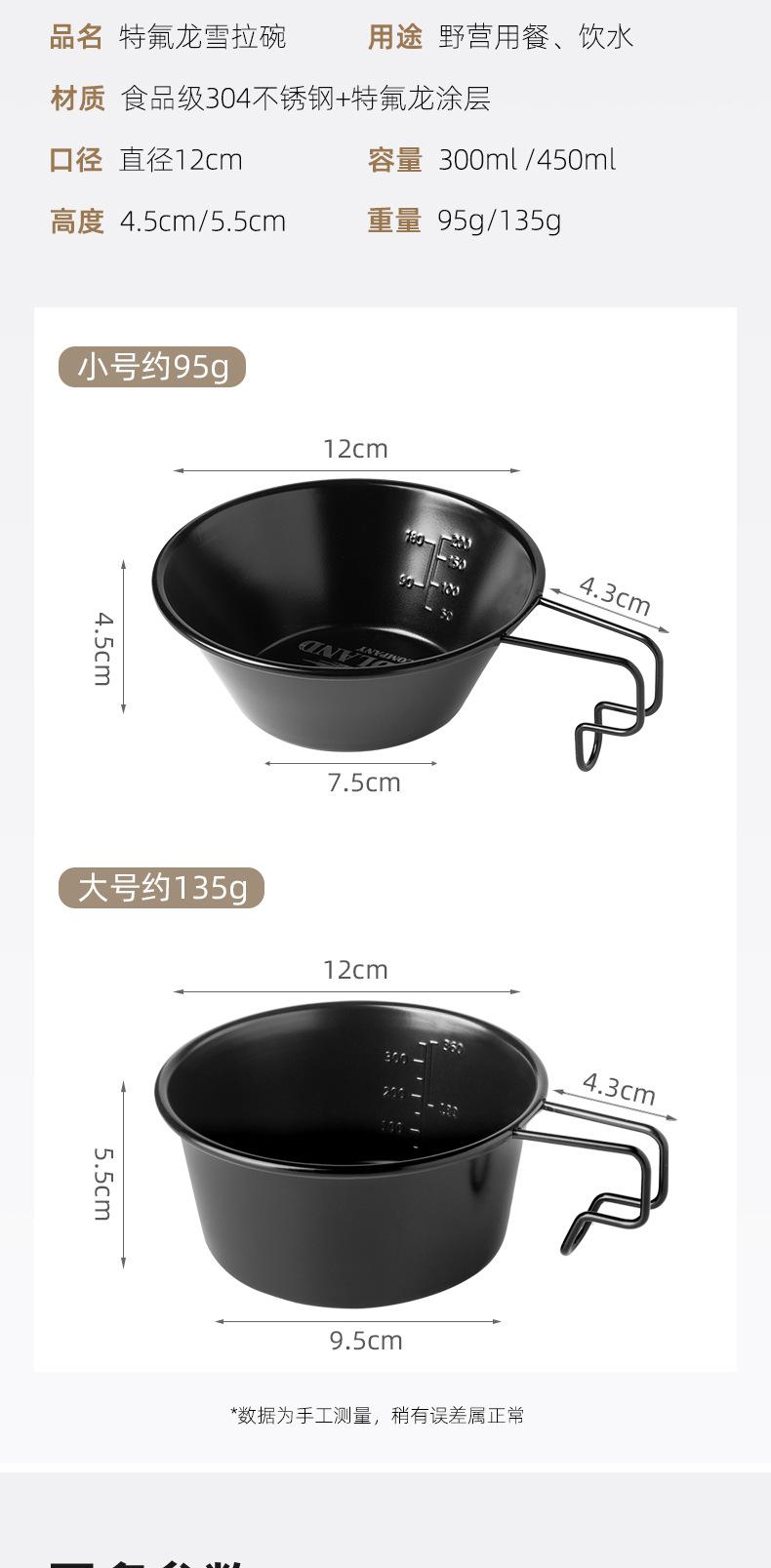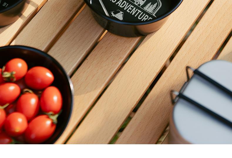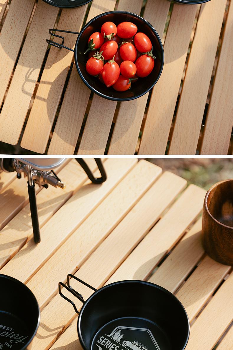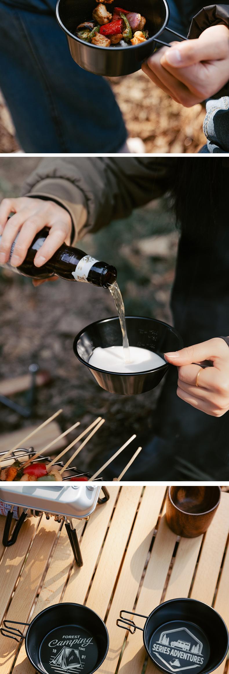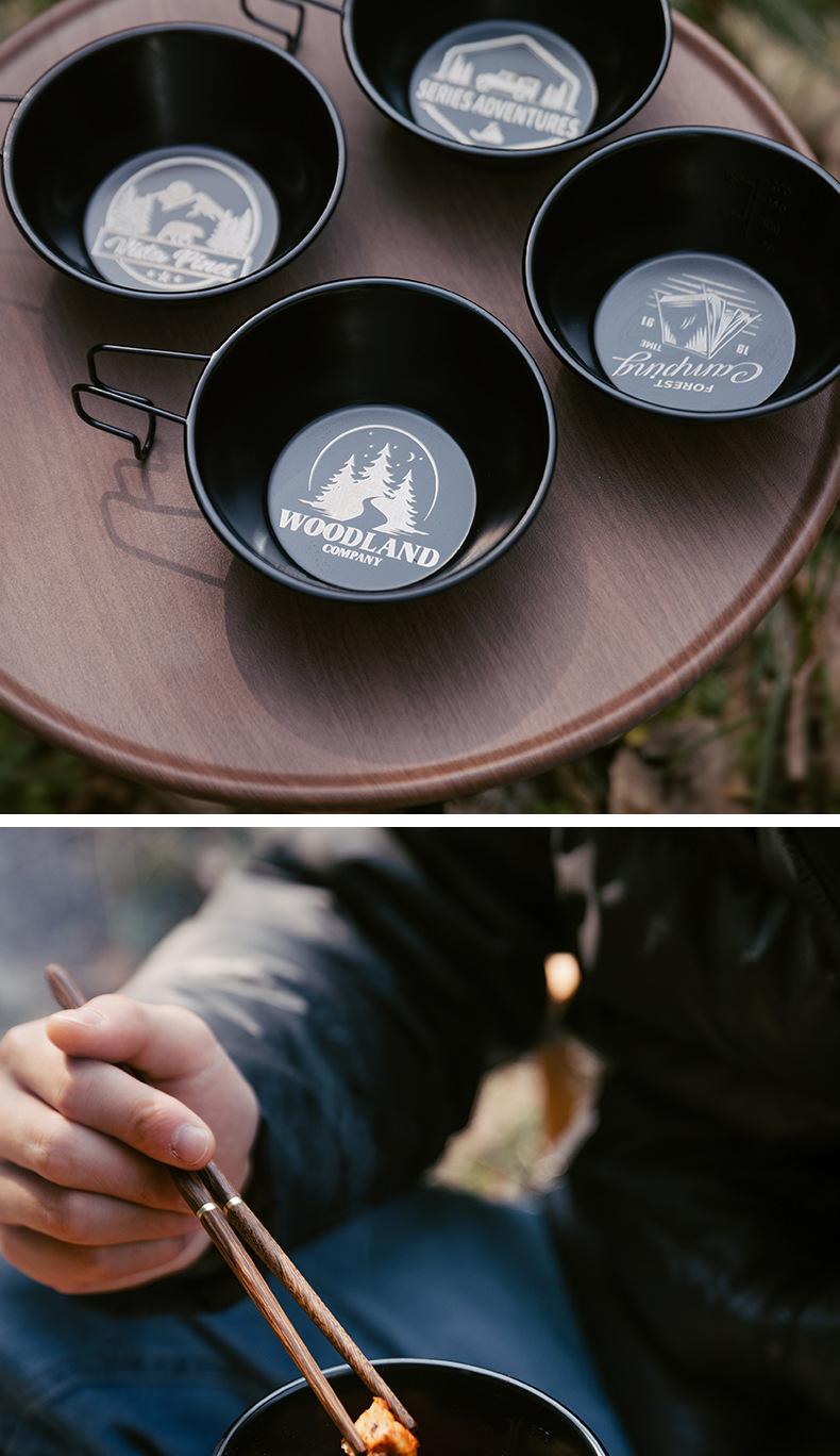 Cuenco de nieve para acampar al aire libre, picnic, vajilla de acero inoxidable 304, taza de agua portátil calentable, juego de equipo ennegrecido