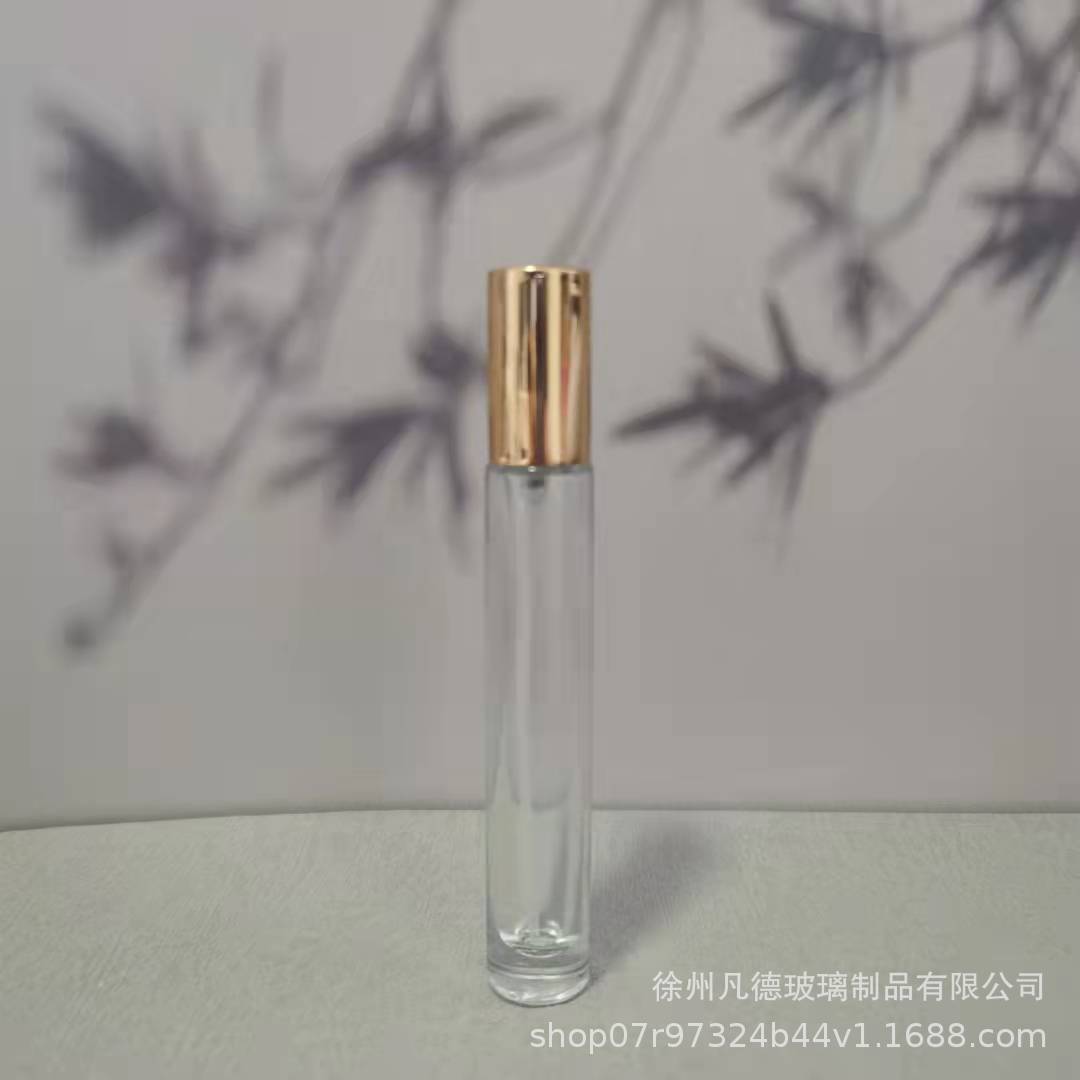 10ml; round transparent steel ball gold cover; glass
