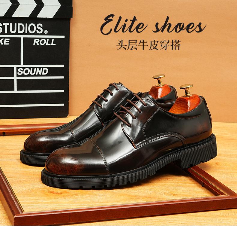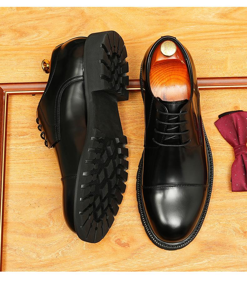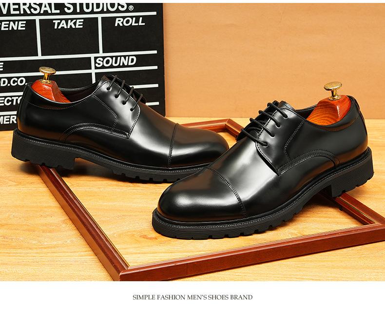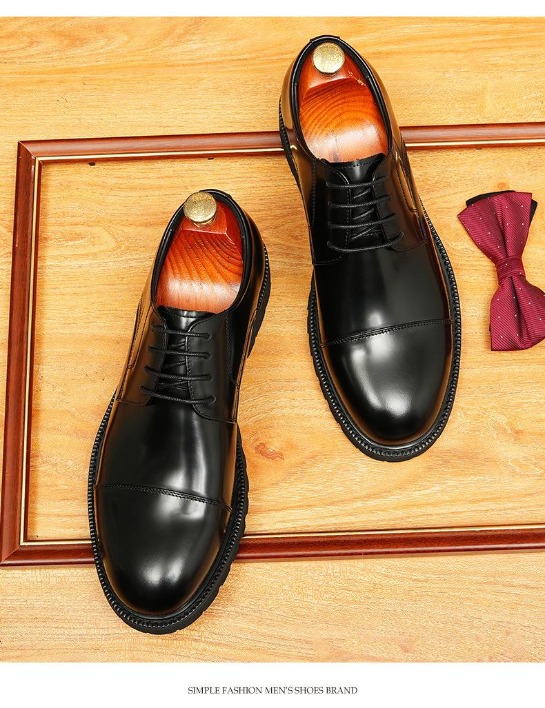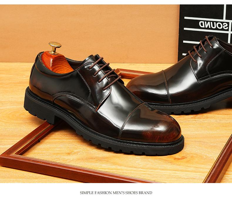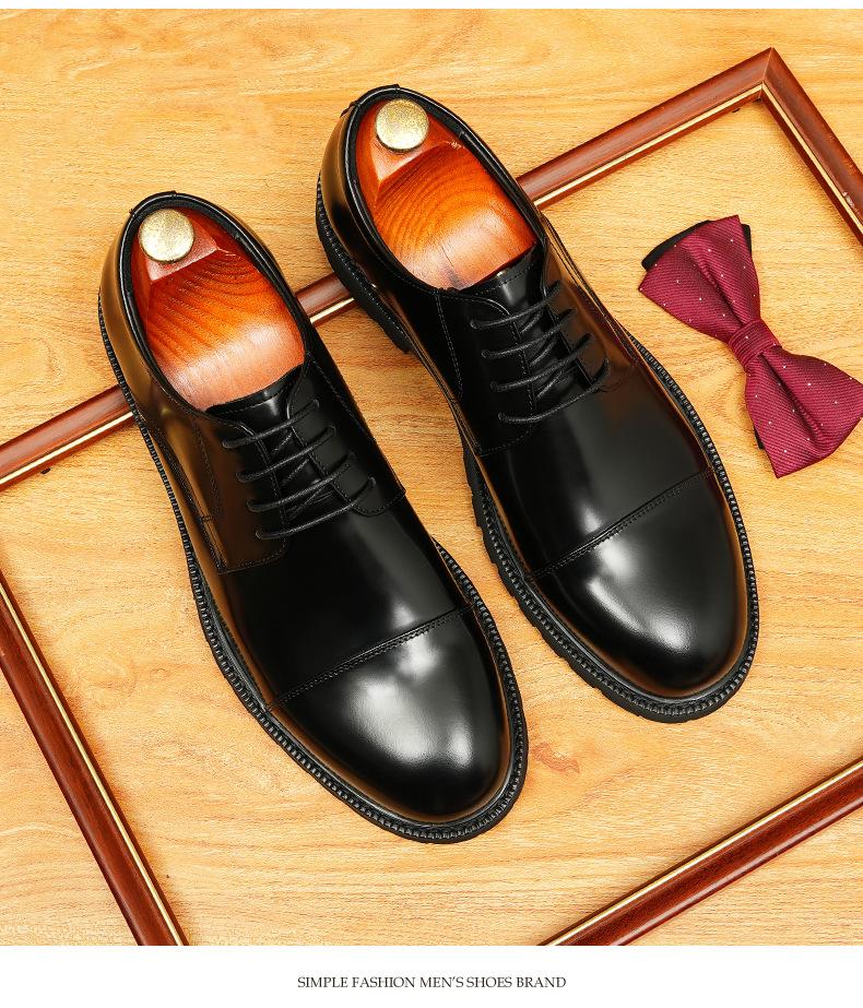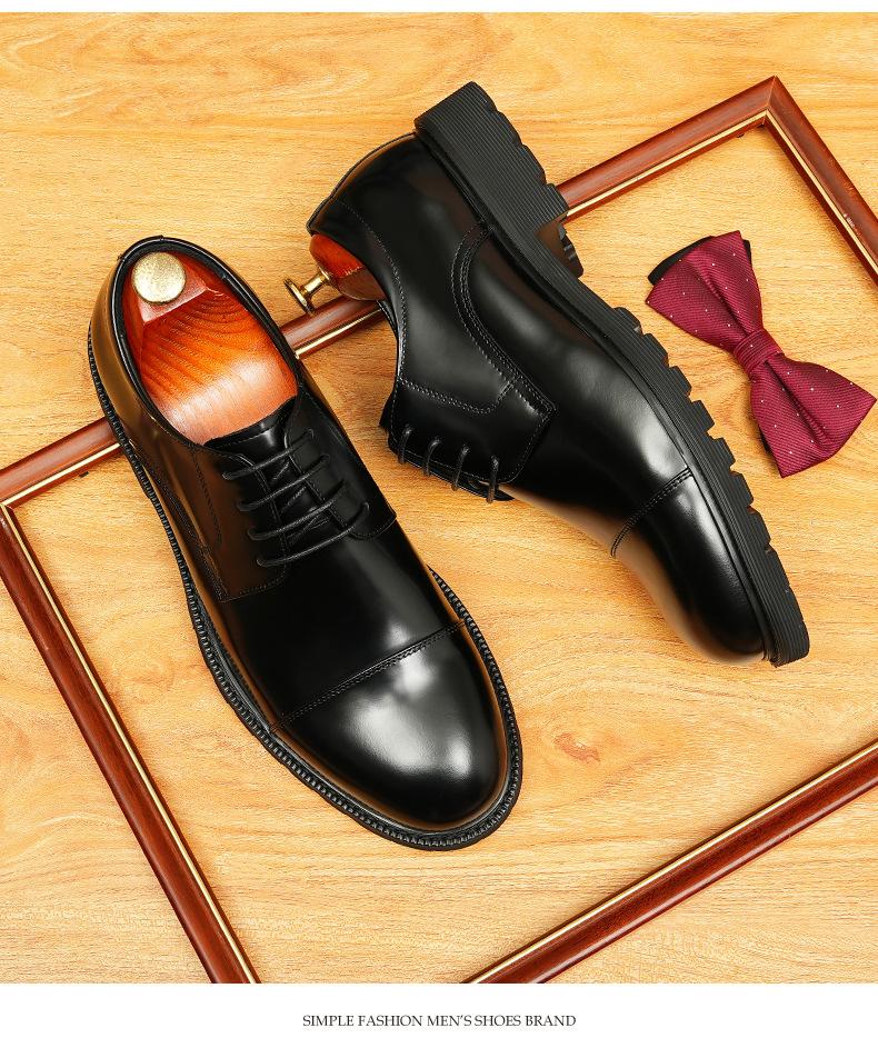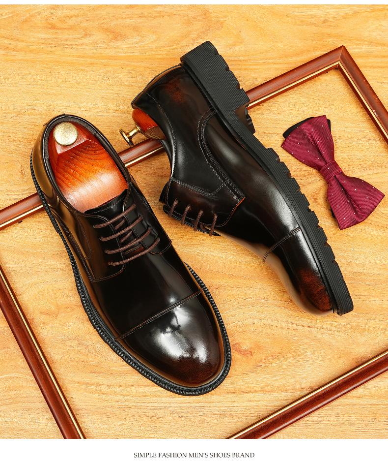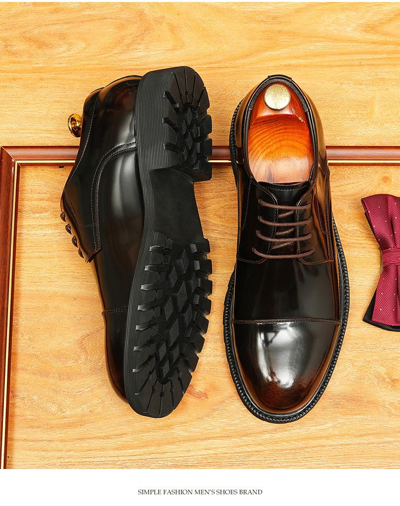 Zapatos de cuero informales de negocios para hombre, con forro de cuero genuino de tres articulaciones, estilo británico, zapatos Derby de punta redonda, suela gruesa, de charol para hombre.