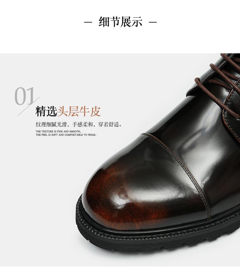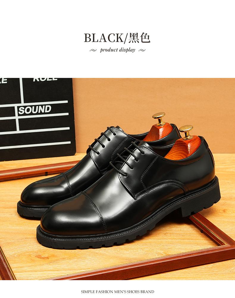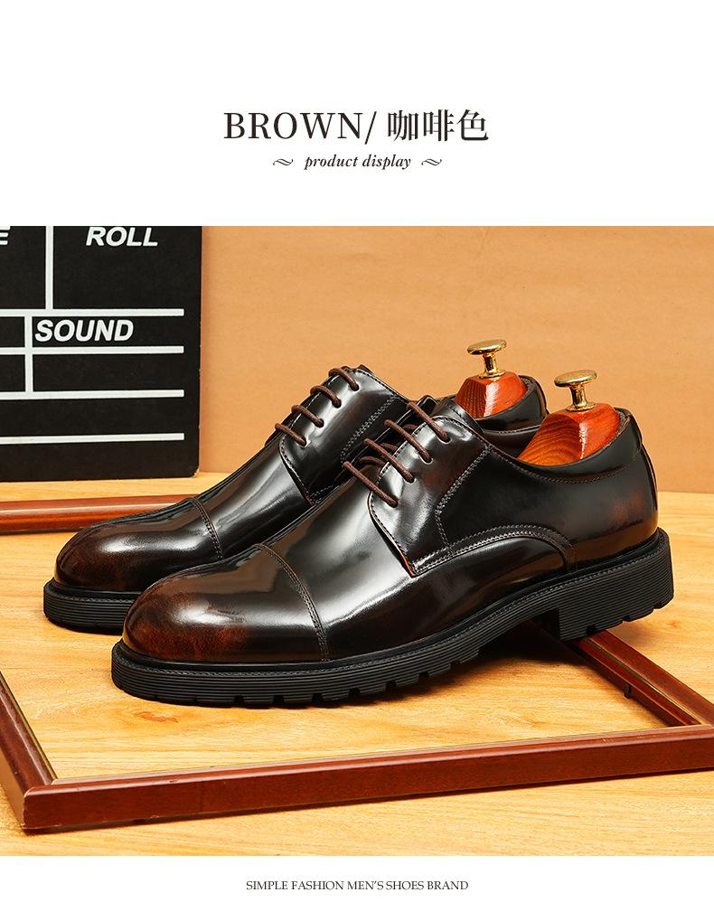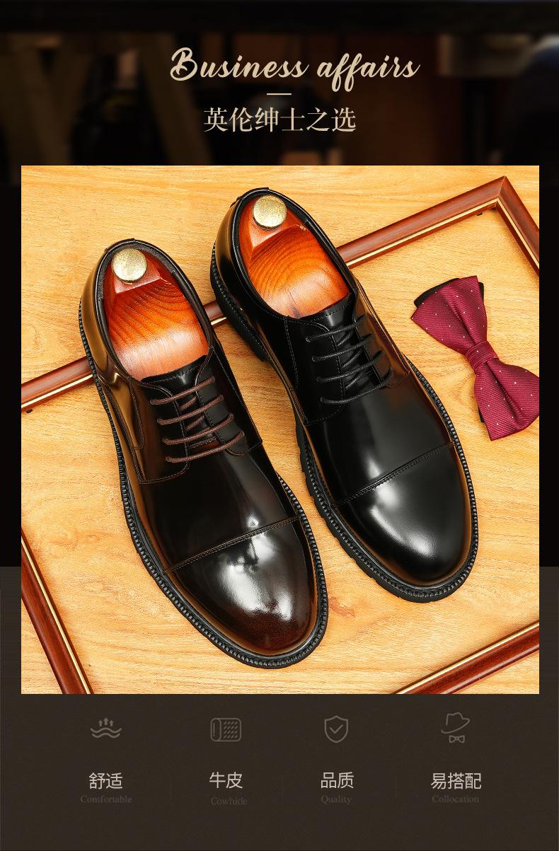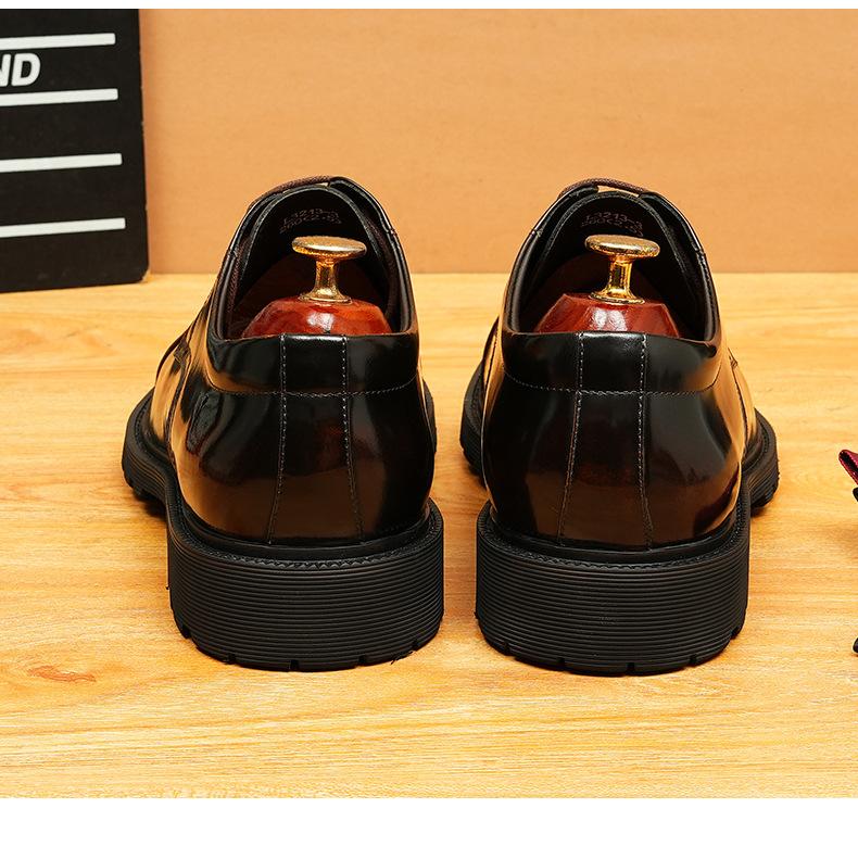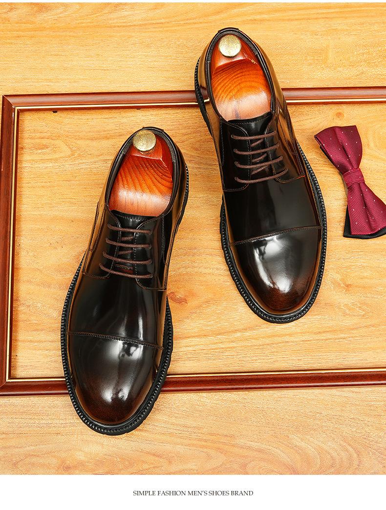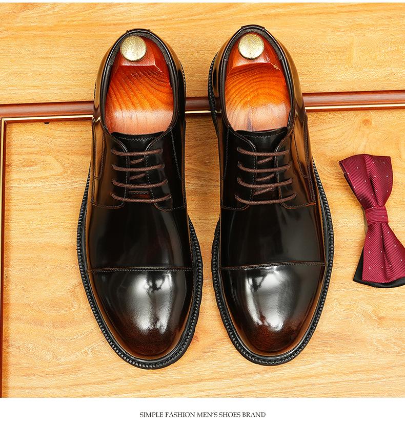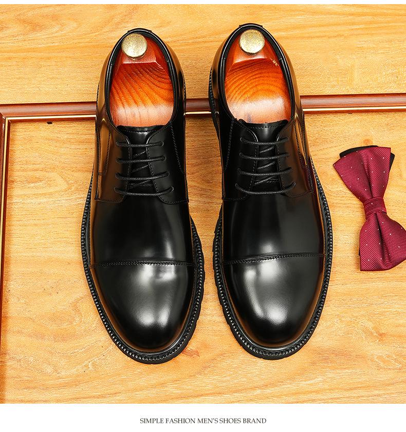 Zapatos de cuero informales de negocios para hombre, con forro de cuero genuino de tres articulaciones, estilo británico, zapatos Derby de punta redonda, suela gruesa, de charol para hombre.