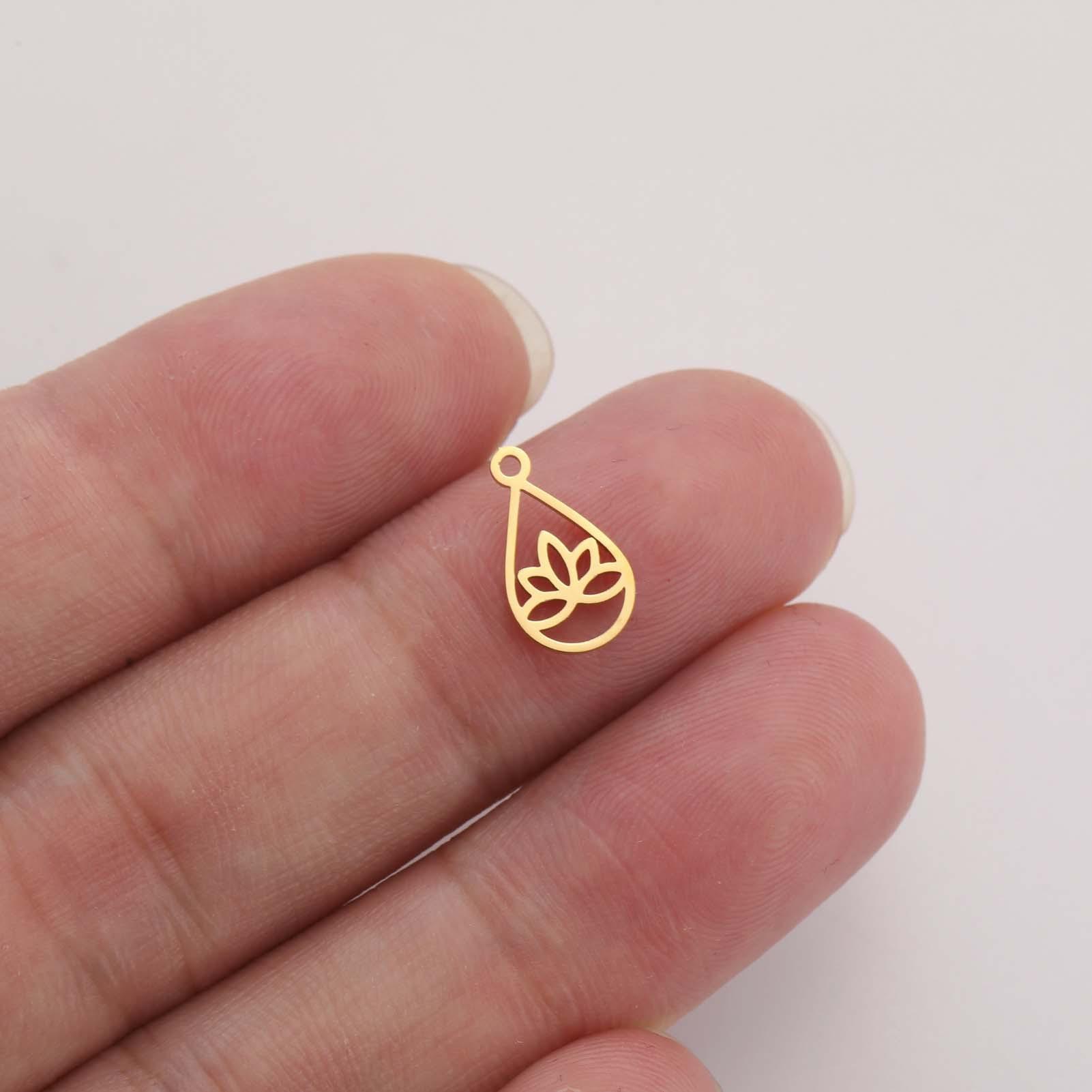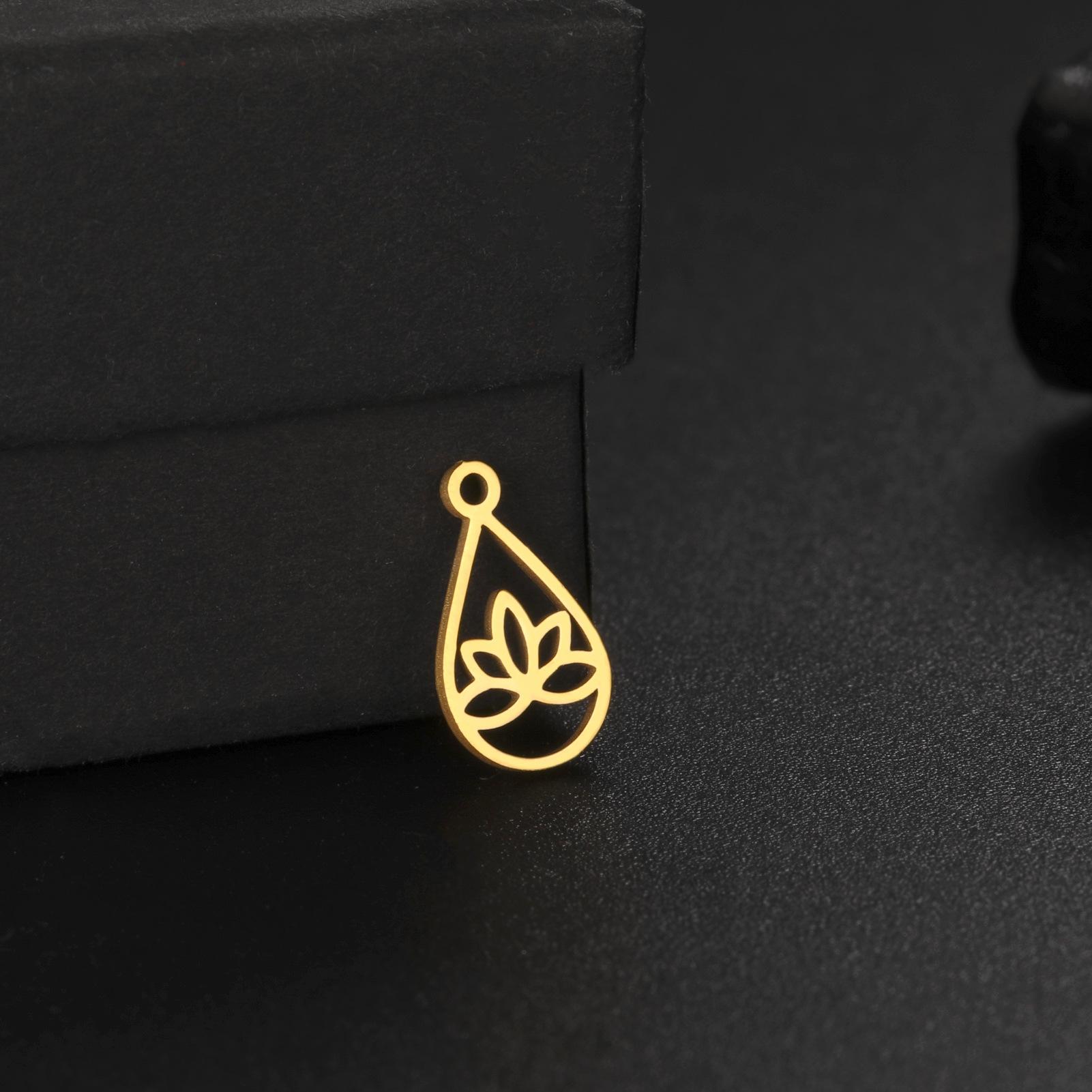 Collar, pendientes, pulsera y colgante de loto con forma de gota hueca de acero y titanio de oro de 18 quilates, ¡un éxito transfronterizo!