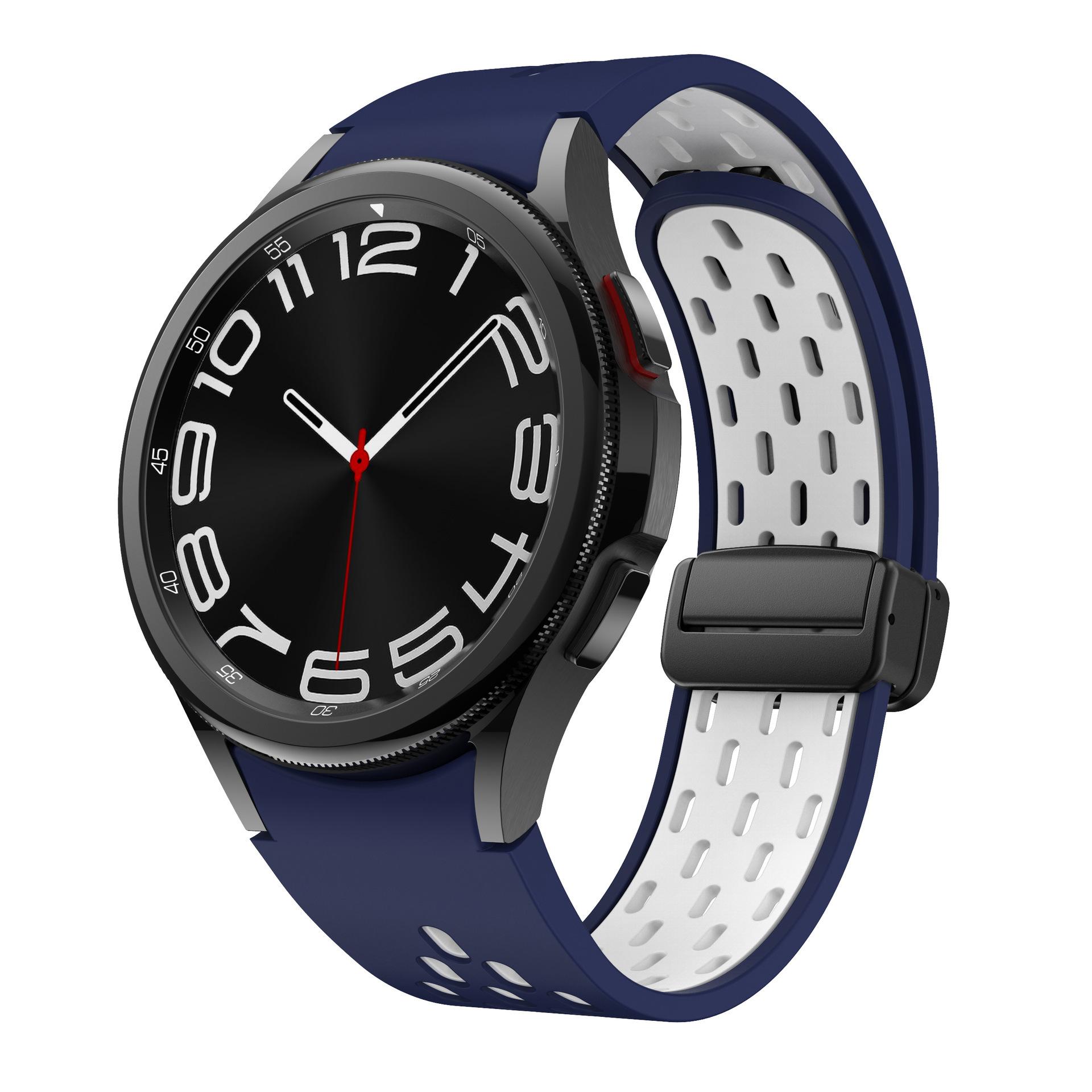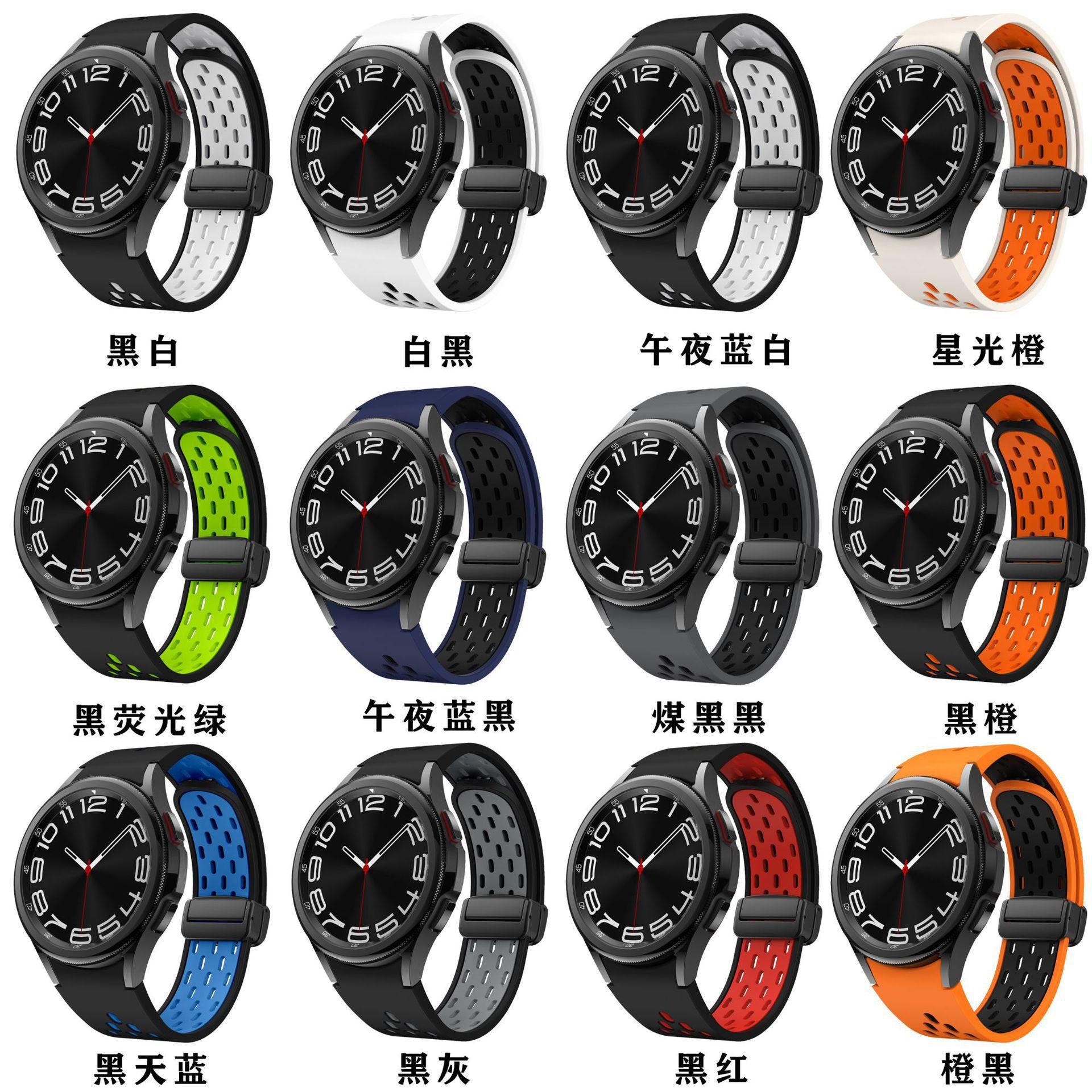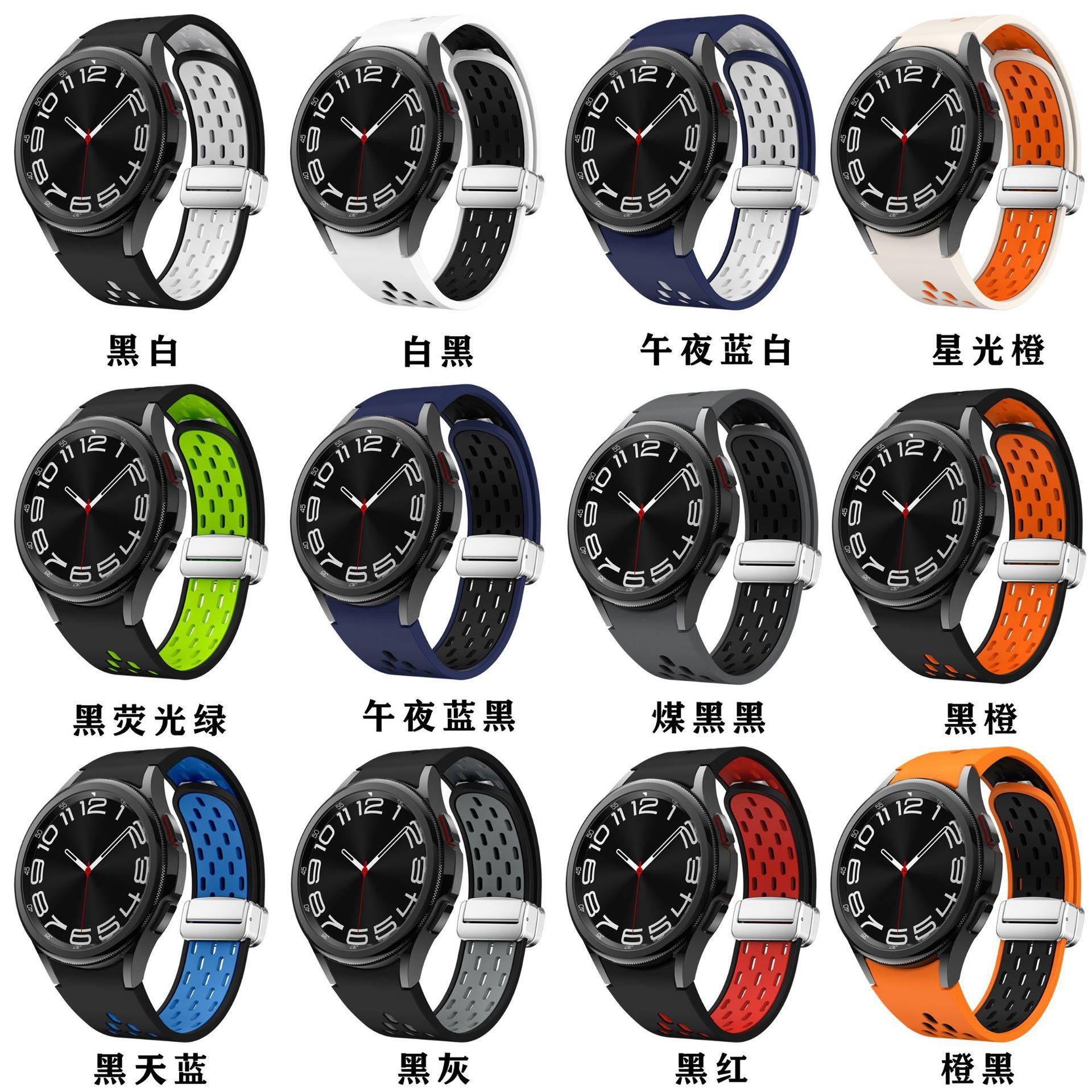 Nombre del producto: Adecuado para Samsung watch6 hebilla plegable magnética correa bicolor watch4/5Pro silicona transpirable pulsera deportiva
