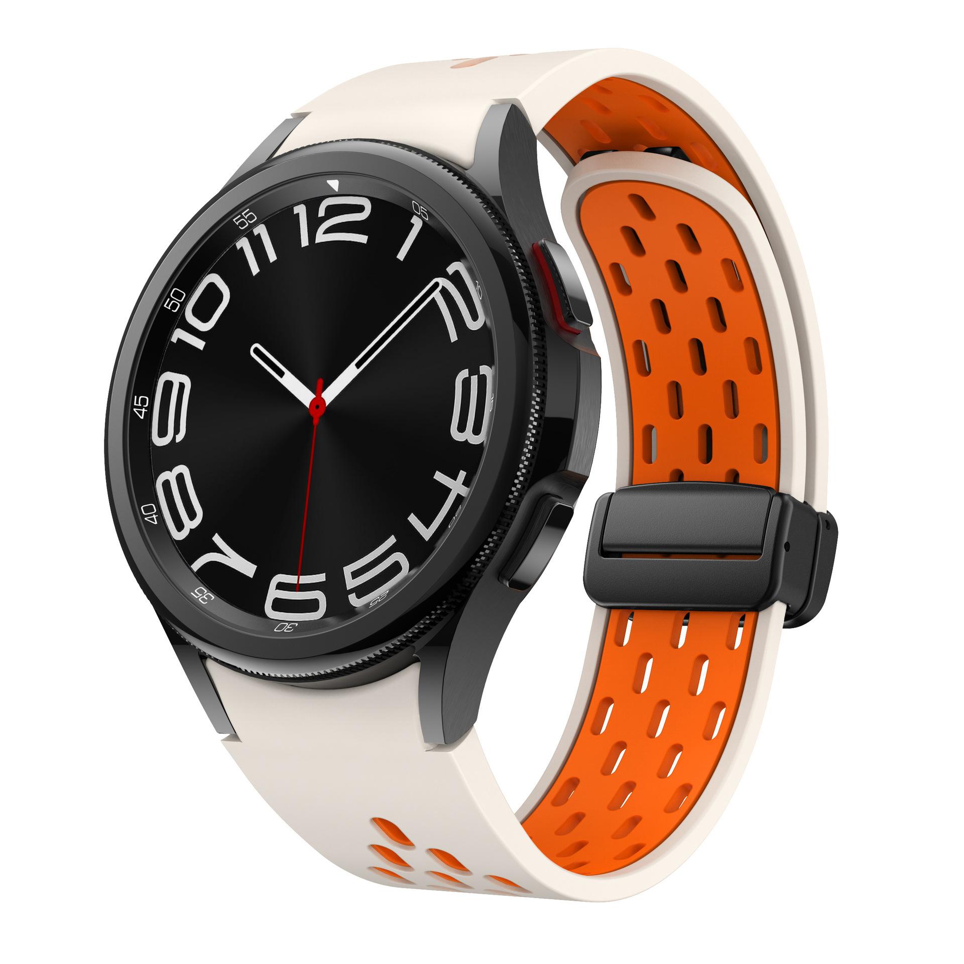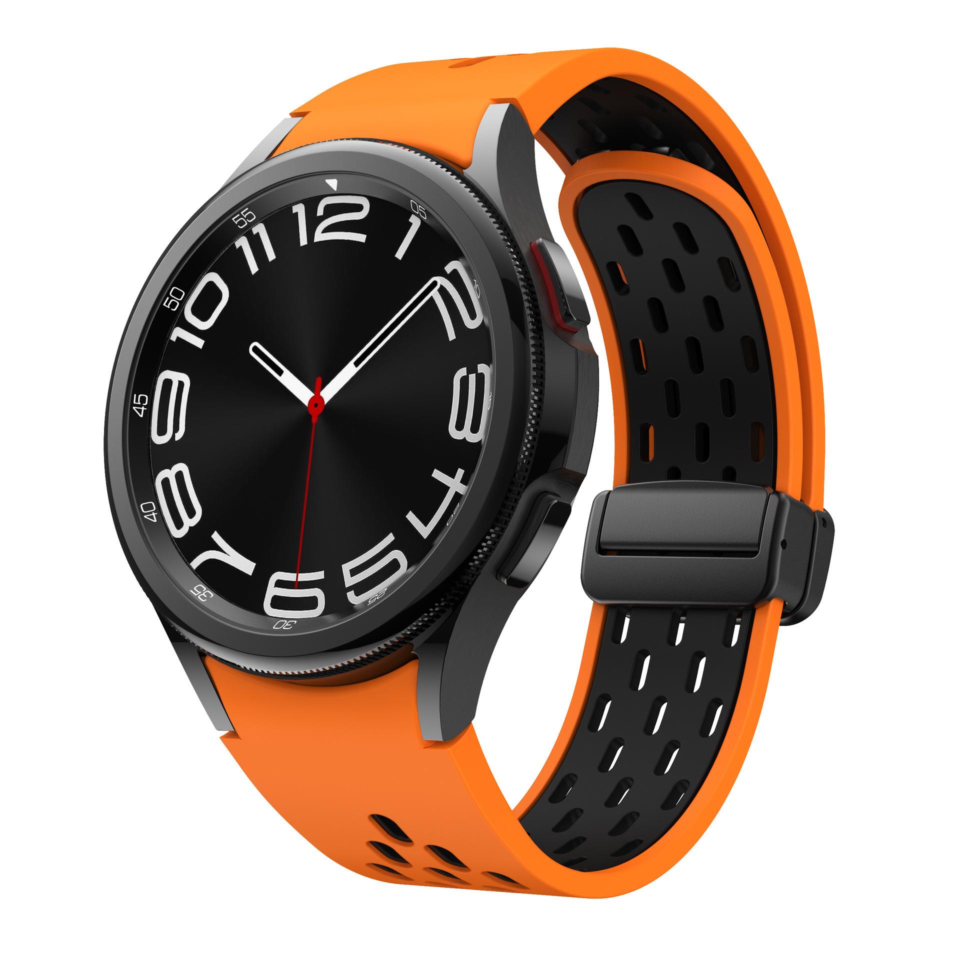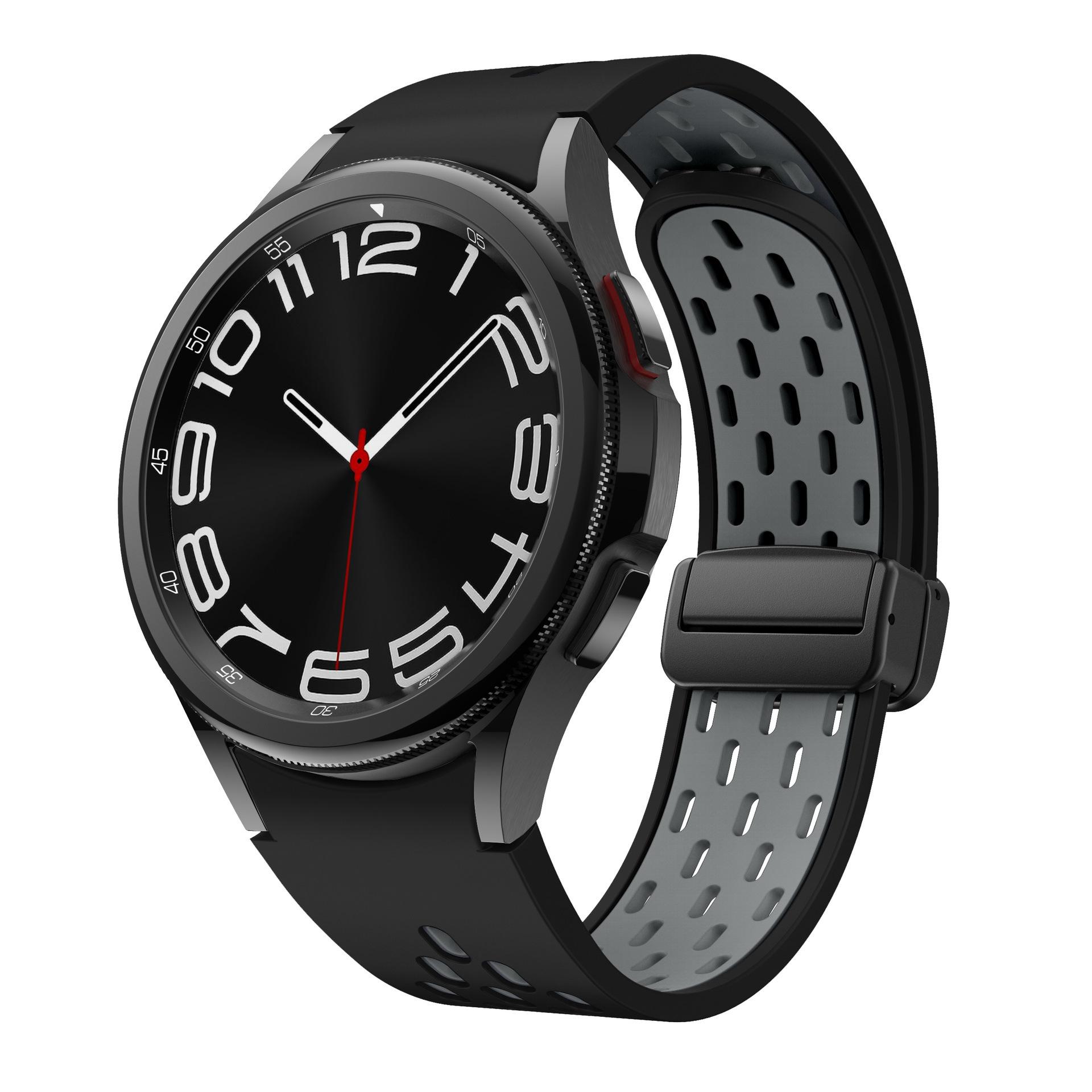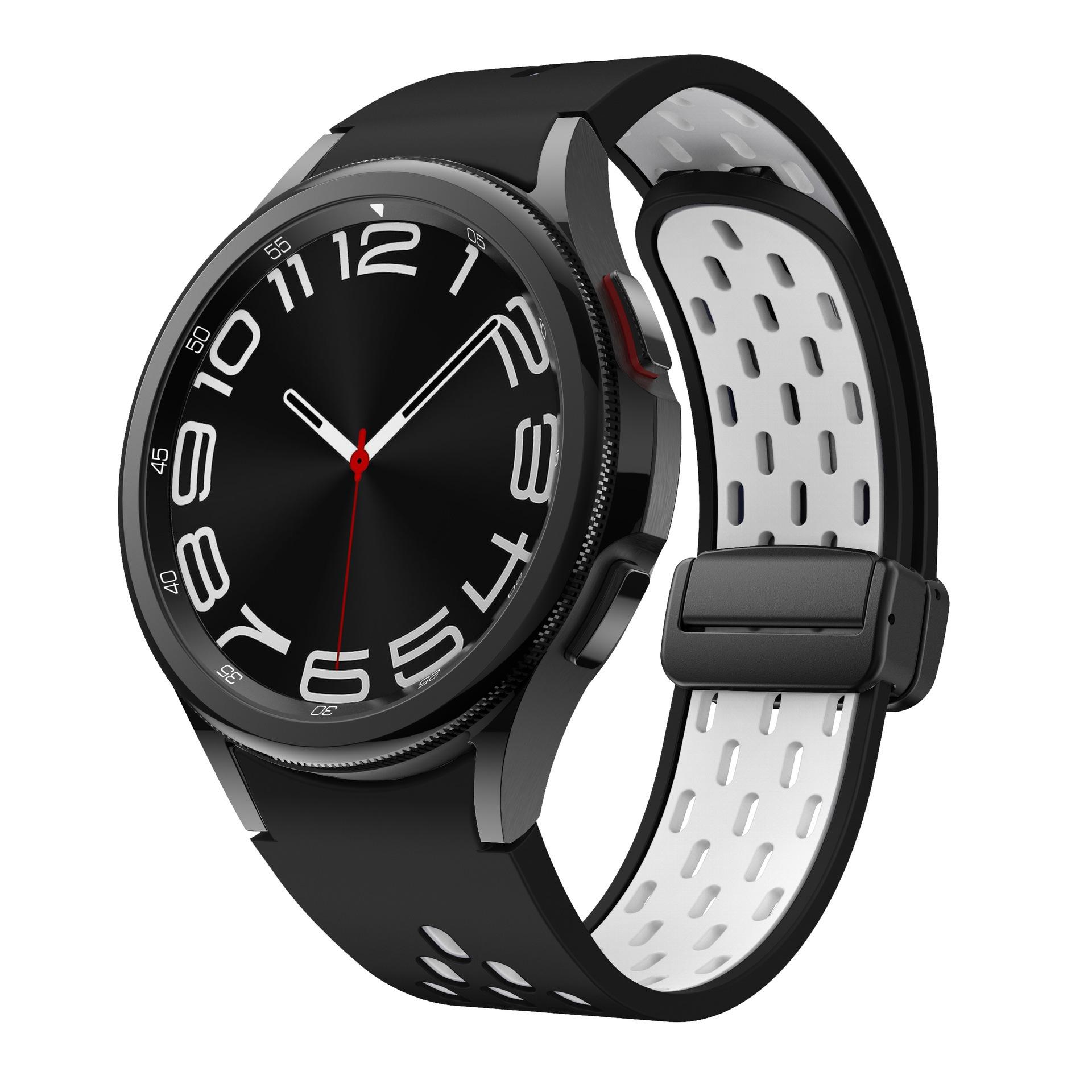Nombre del producto: Adecuado para Samsung watch6 hebilla plegable magnética correa bicolor watch4/5Pro silicona transpirable pulsera deportiva