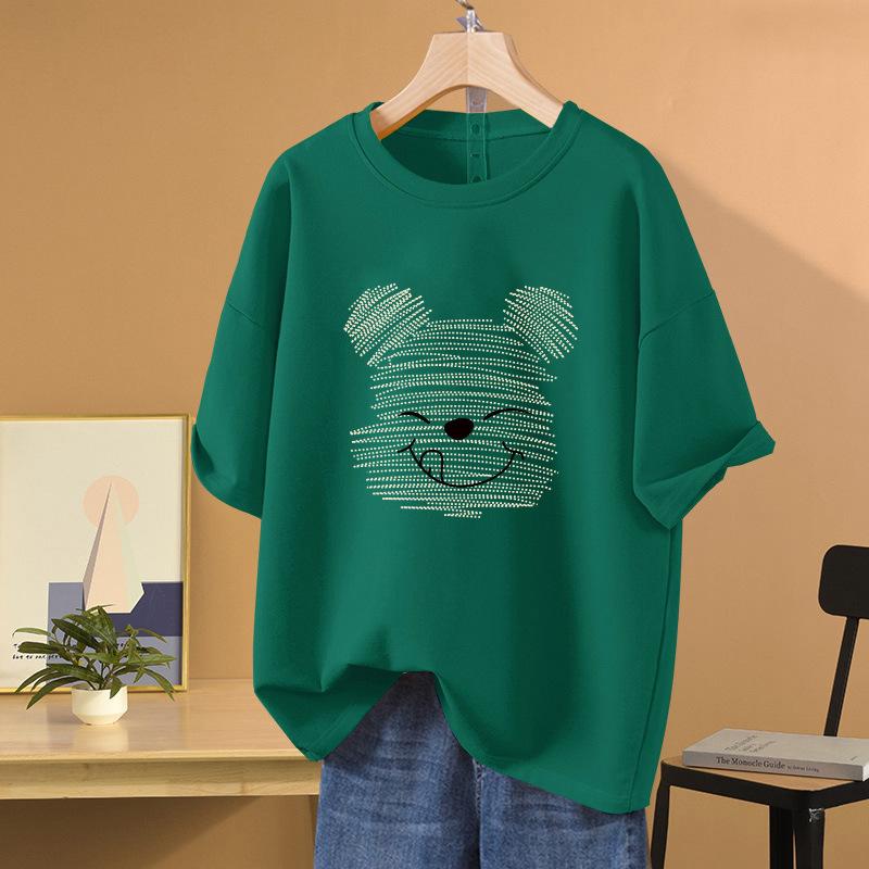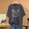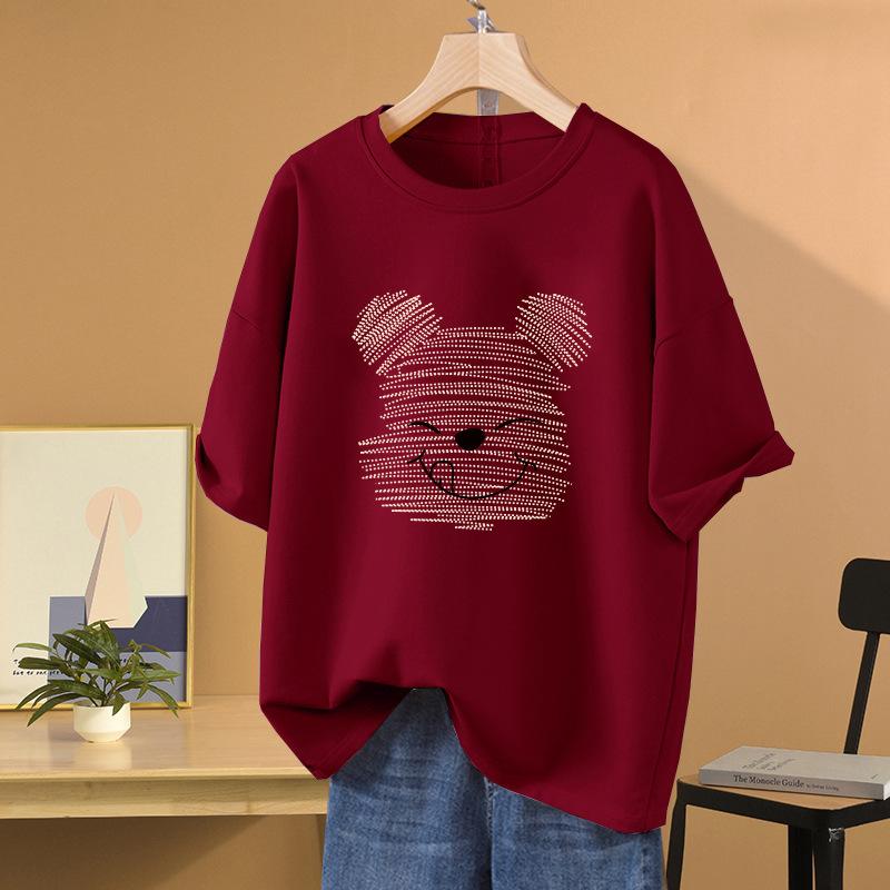 Camiseta de manga corta con diseño de algodón para mujer, novedad de verano 2024, top holgado de media manga con estampado de oso retro americano de talla grande