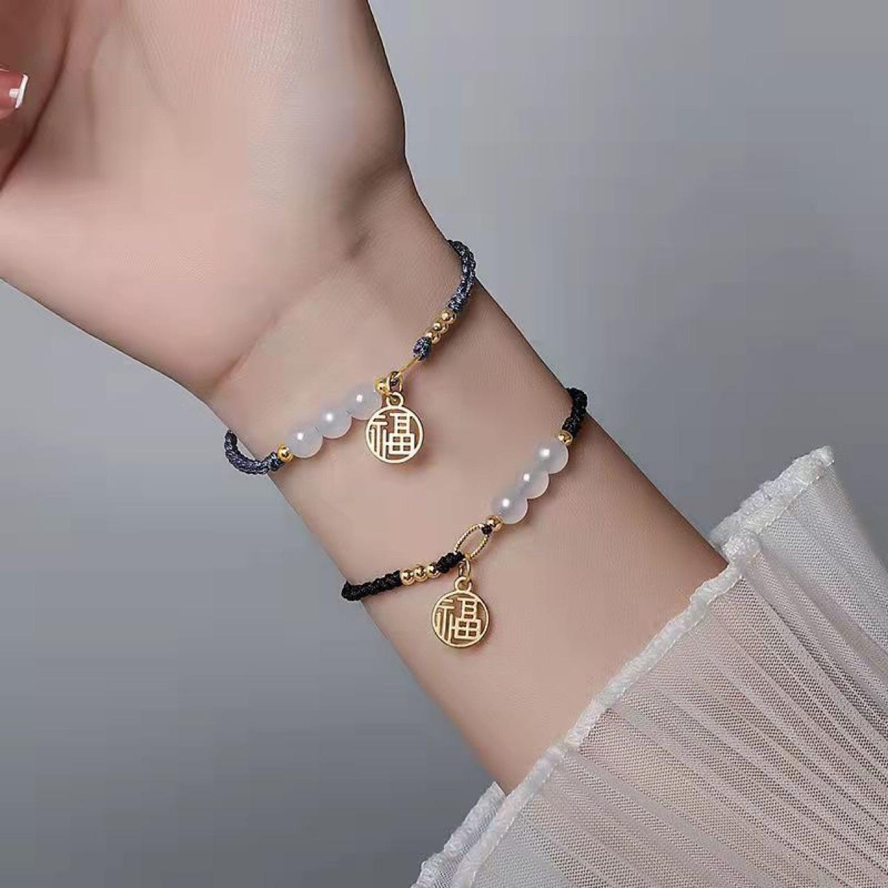 Pulsera Diseño Nicho Ins Marca Fu Cuerda de Mano Tejida Cuerda Novia Pareja Hombres y Mujeres Adornos de Mano Pequeños Regalos