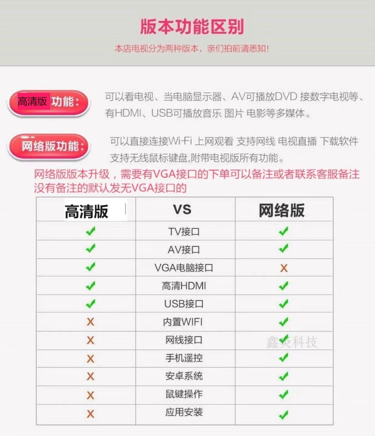 24inch hd tv version (length 54x width 35) cm, 24inch hd smart network version (length 54x width 35) cm, 32inc...
