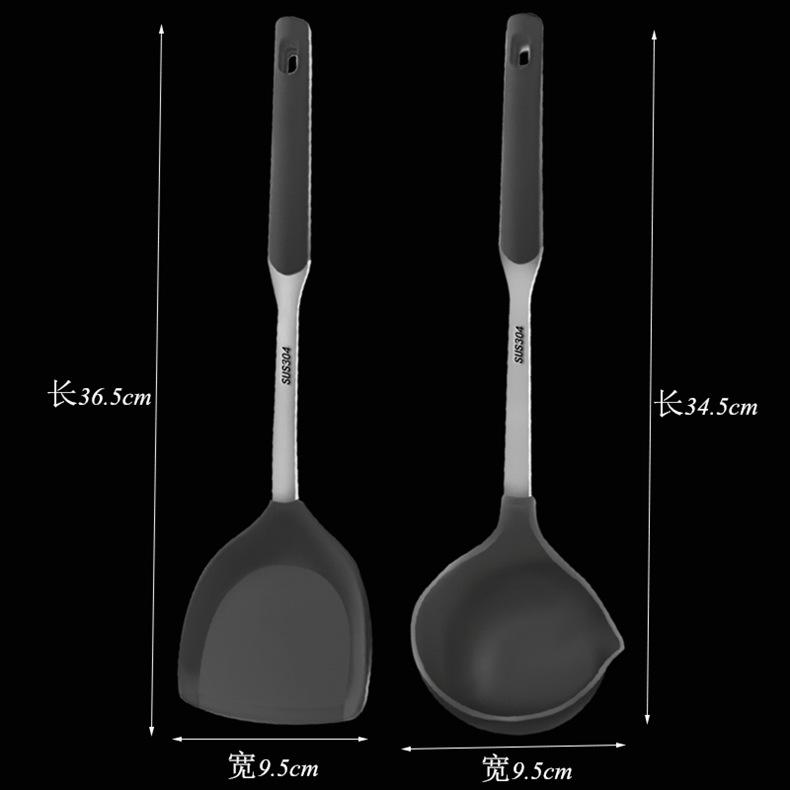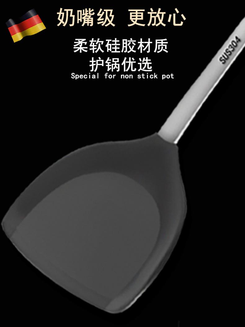 Espátula de silicona de acero inoxidable al por mayor, sartén antiadherente, espátula de cocina especial, cuchara de sopa resistente a altas temperaturas, juego de utensilios de cocina de acero inoxidable
