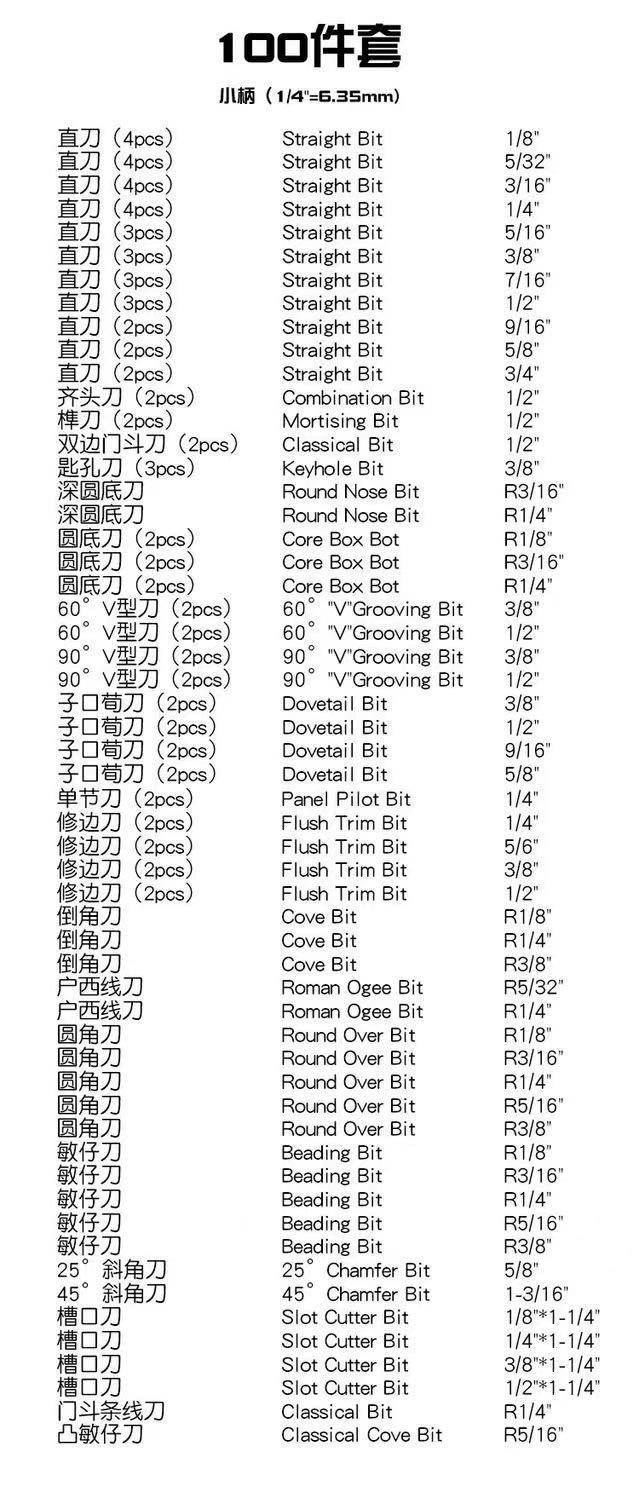 Juego de 100 piezas de fresadora para carpintería, máquina de recorte, máquina de grabado con esquinas redondeadas, cortador de encaje en forma de V, cortador de ranurado biselado, biselado