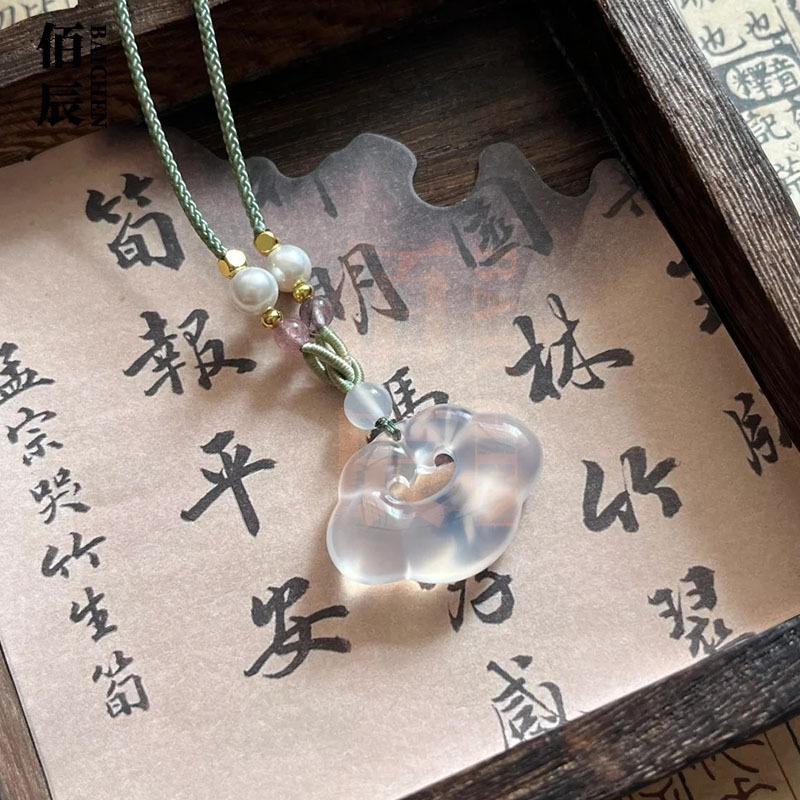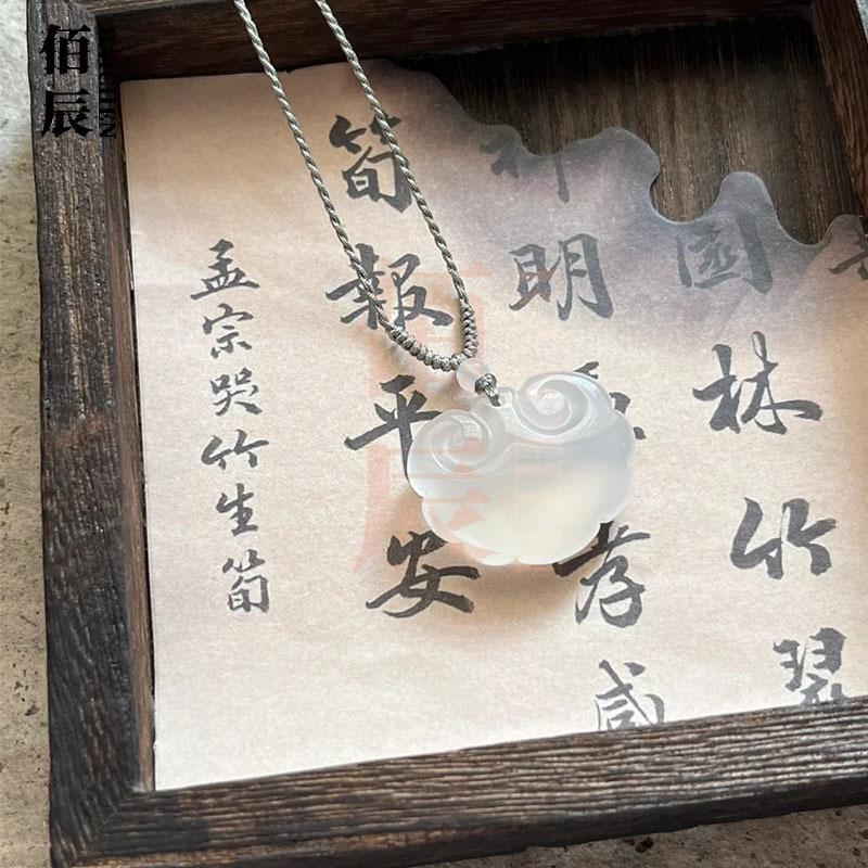 Colgante de ágata natural con candado Xiangyun Ruyi para hombre y mujer, colgante de calcedonia con candado Xiangyun Changmingling para pareja, colgante de clavícula de estilo chino