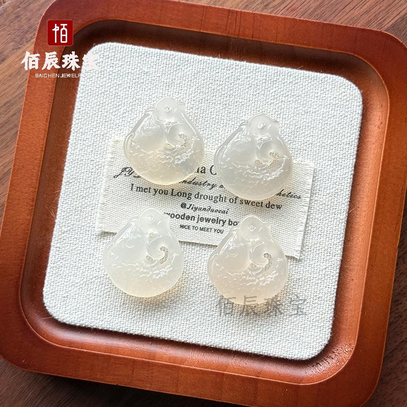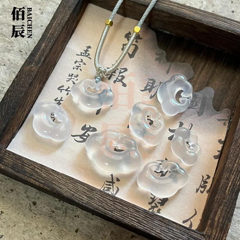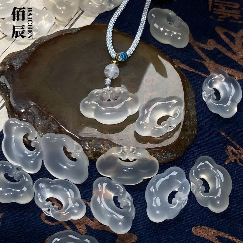 Small ruyi baby lock, approximately 15*17mm, Large ruyi baby lock is about 24*30mm, White chalcedony auspiciou...
