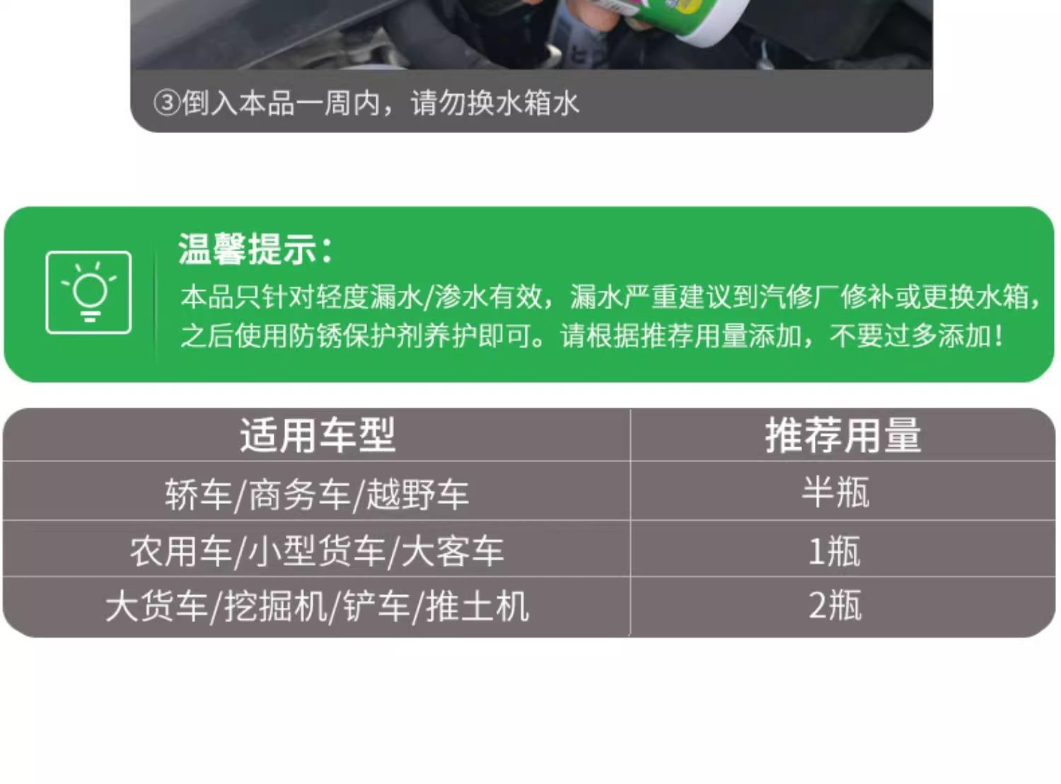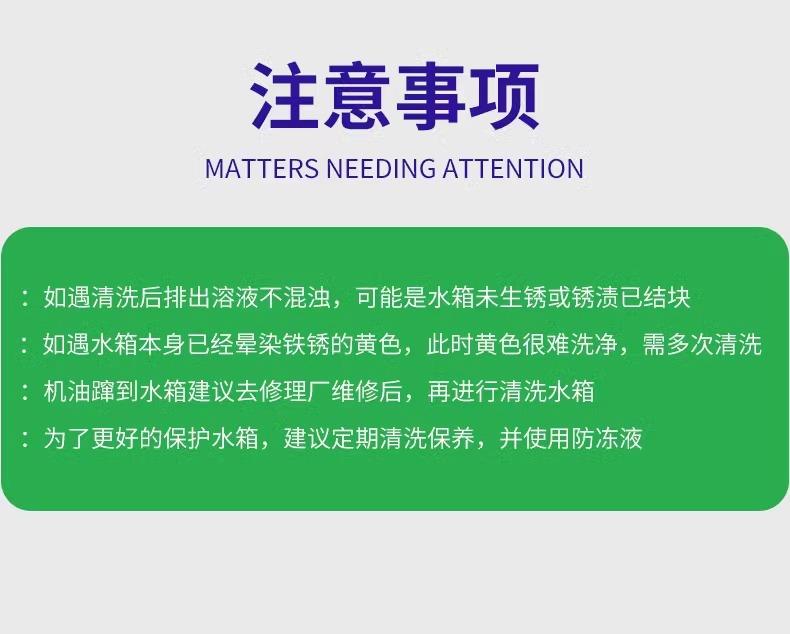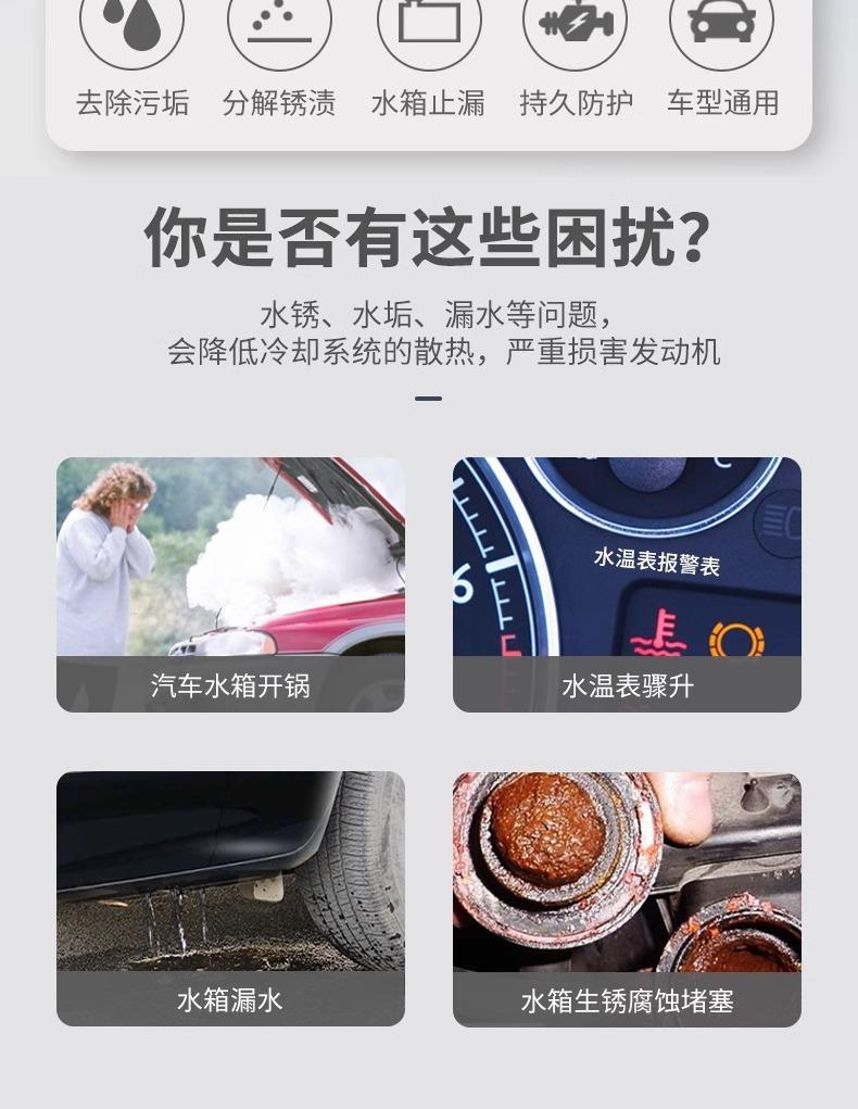 Limpiador de tanque de agua de automóvil agente removedor de óxido y sarro interno agente reparador de fugas de motor de excavadora carretilla elevadora artefacto interno